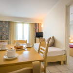 כל יחידה כוללת חדר שינה נפרד, אזור מגורים-פינת אוכל בחלל פתוח ואזור מטבחון מאובזר במלואו. כל הדירות הממוזגות כוללות טלוויזיית LCD, כספת ומקרר.