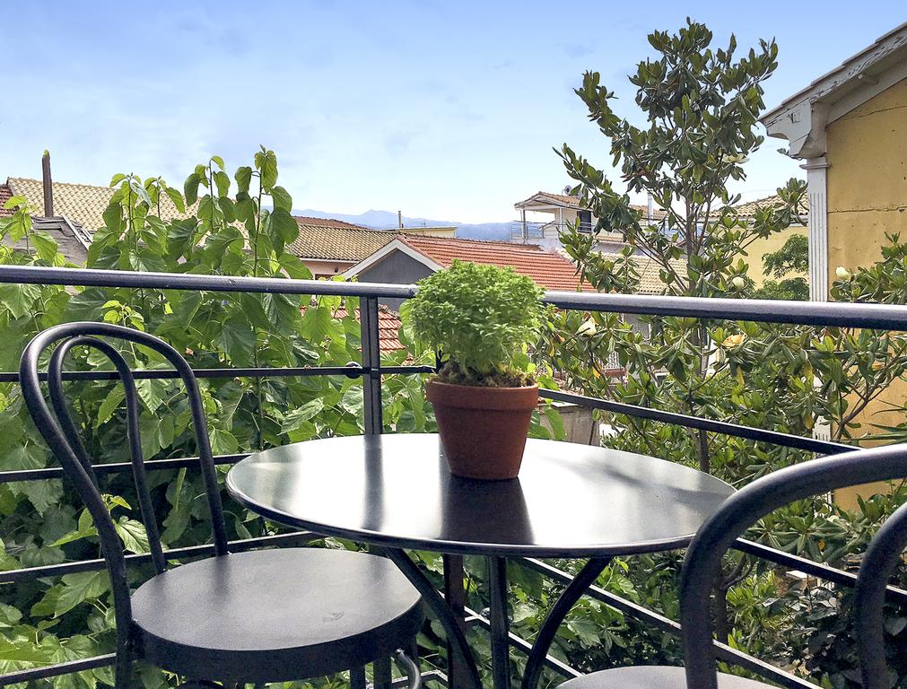 מרפסת עם נוף המסורתי הישן של העיר לפקדה (Lekkada).