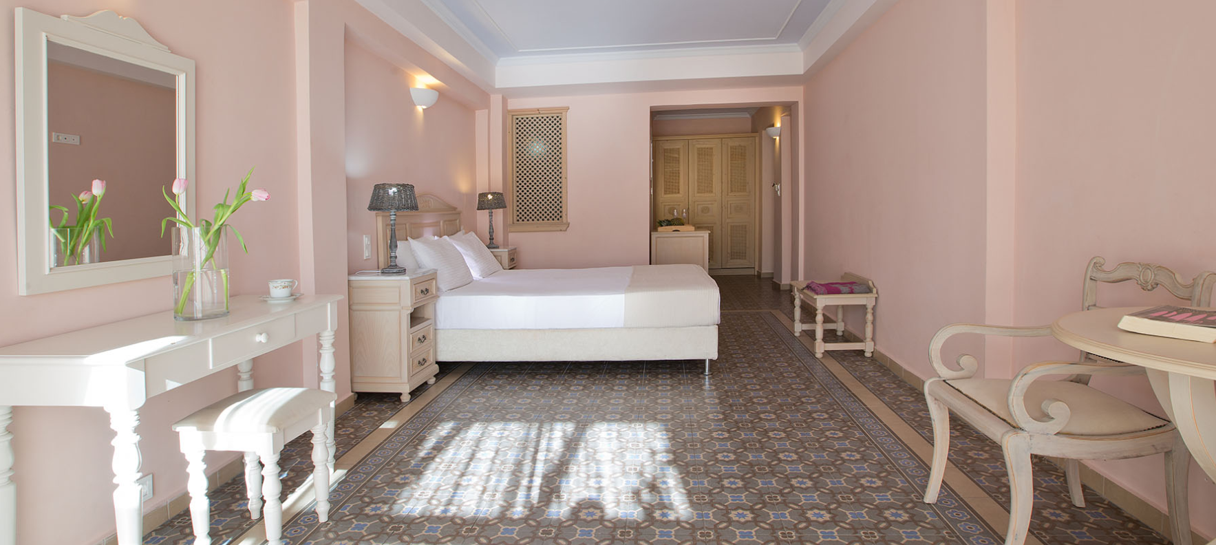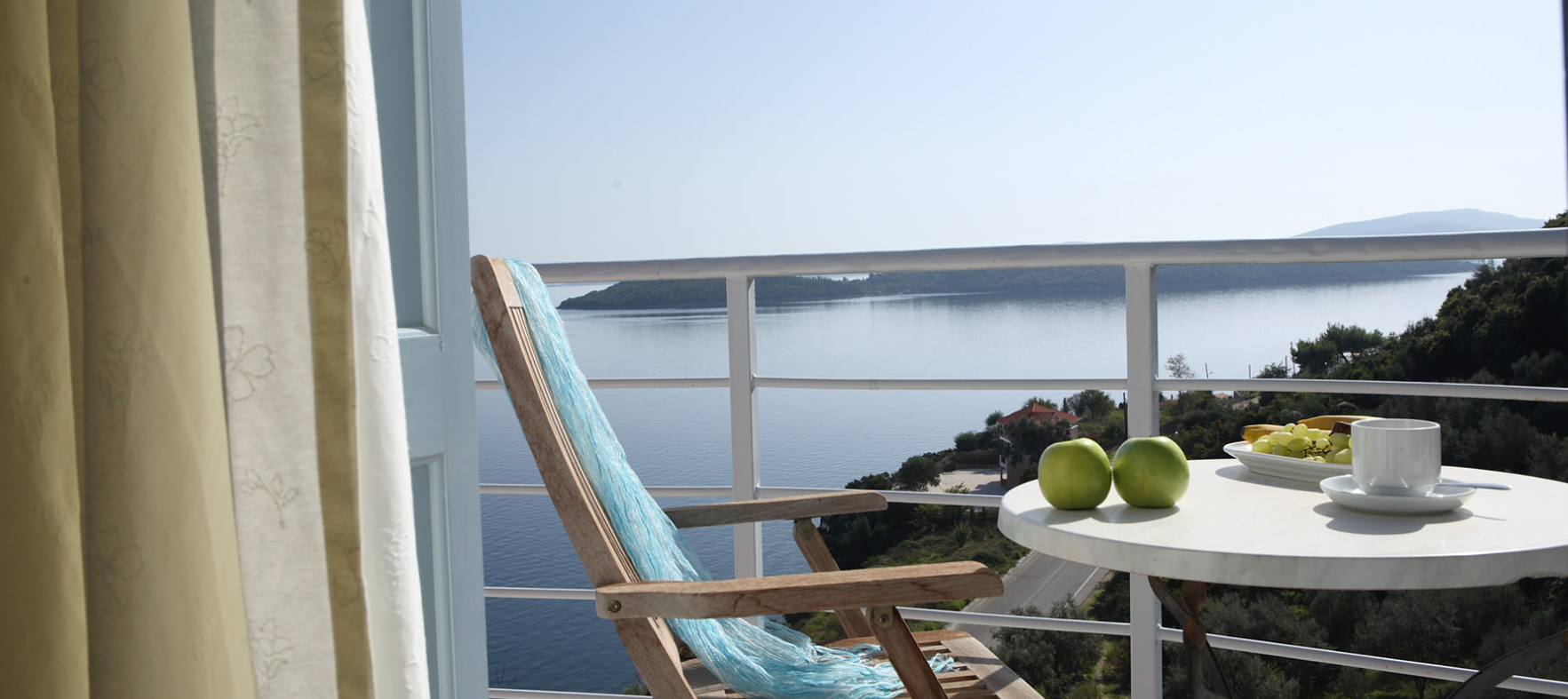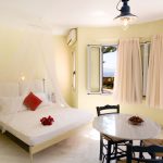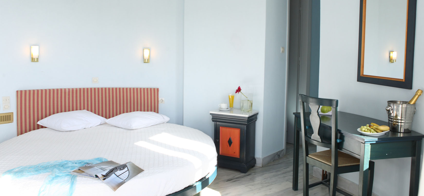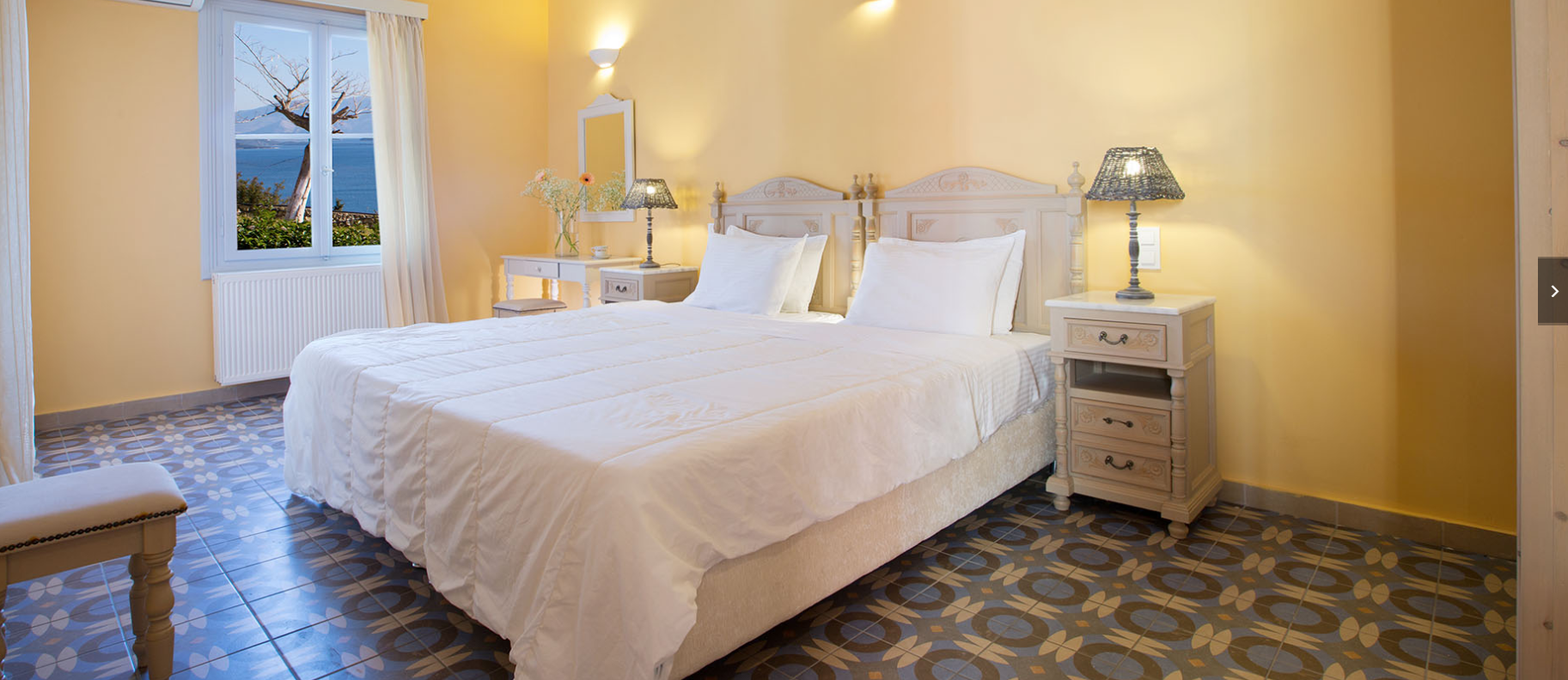 החדרים כוללים מיזוג אוויר, טלוויזיה בלוויין, כספת ומייבש שיער, ומרפסת המשקיפה לים היוני (Ionian Sea). חלק מיחידות האירוח כוללות גם אזור מגורים מרווח.