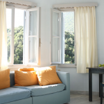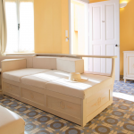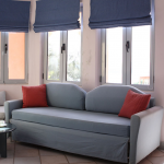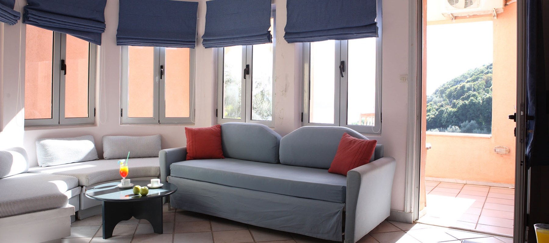 סוויטה עם נוף לים – 2 מיטות יחיד + מיטת ספה או מיטת ספה +מיטה זוגית גדולה , מרפסת, פינת אוכל ומיזוג אוויר.