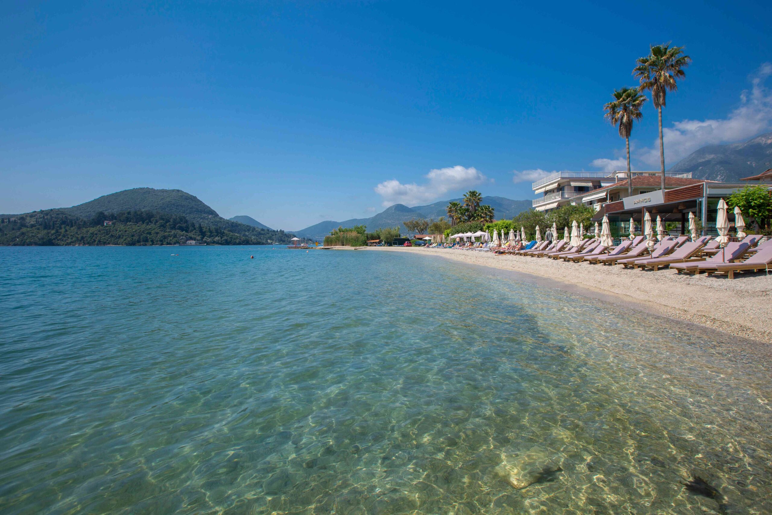 מלון דירות בוטיק מעודן השוכן על קו החוף עוצר הנשימה של עיירת החוף נידרי Nidri באי לפקדה Lefkada,