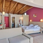 1. דירה-זוג+2 ילדים:  הדירות מתאימות למשפחות (44 מ"ר), מורכבות מסלון וחדר שינה עם כניסות מופרדות. בסלון יש ספה וכורסא אשר הופכות למיטות נוחות, ואילו בחדר השינה יש מיטה זוגית קינג גדולה. לדירות יש מטבח מאובזר, חדר רחצה מרווח עם עיסוי הידרו ומרפסת עם נוף לגינה ולמזרקה. אידאלי למשפחות עם ילדים קטנים, או אפילו ל-3 מבוגרים.