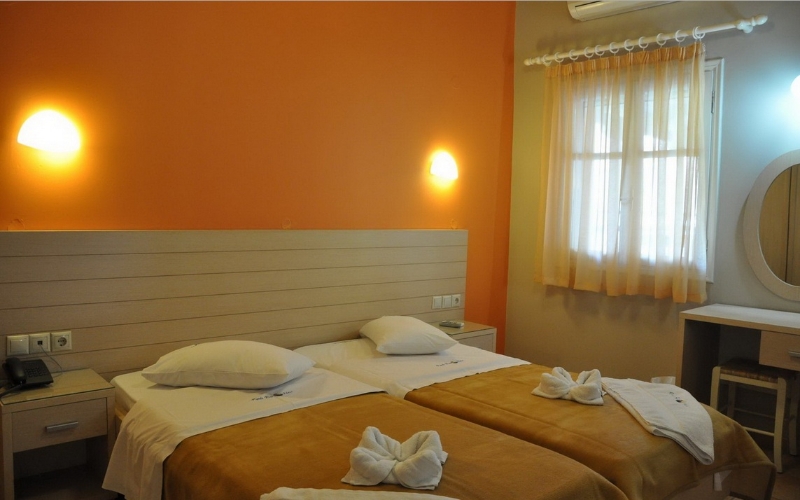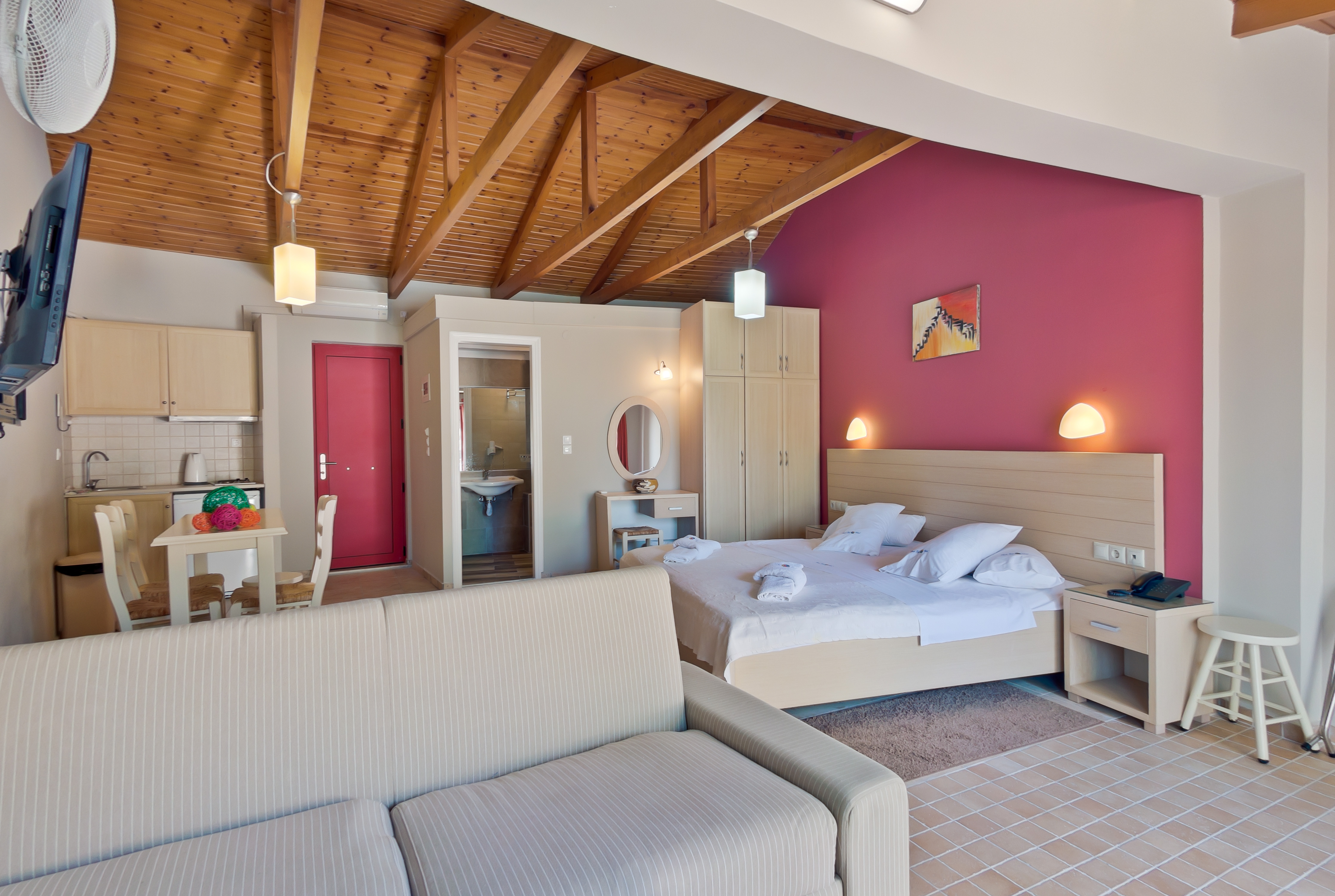 המלון מציע 28 חדרים מסוג חדרי סטודיו ממוזגים,  סוויטות ודירות עם מרפסת גדולה שמשקיפה אל נוף ים מדהים ביופיו או אל גן מטופח וירוק.