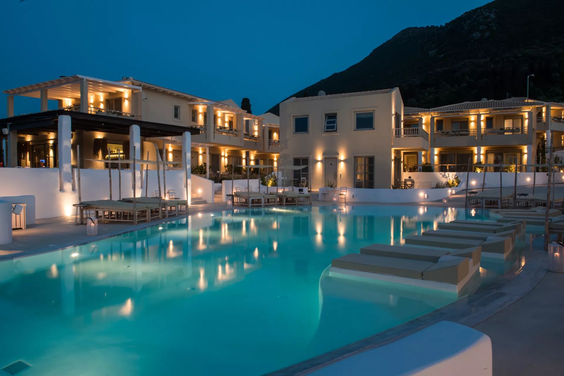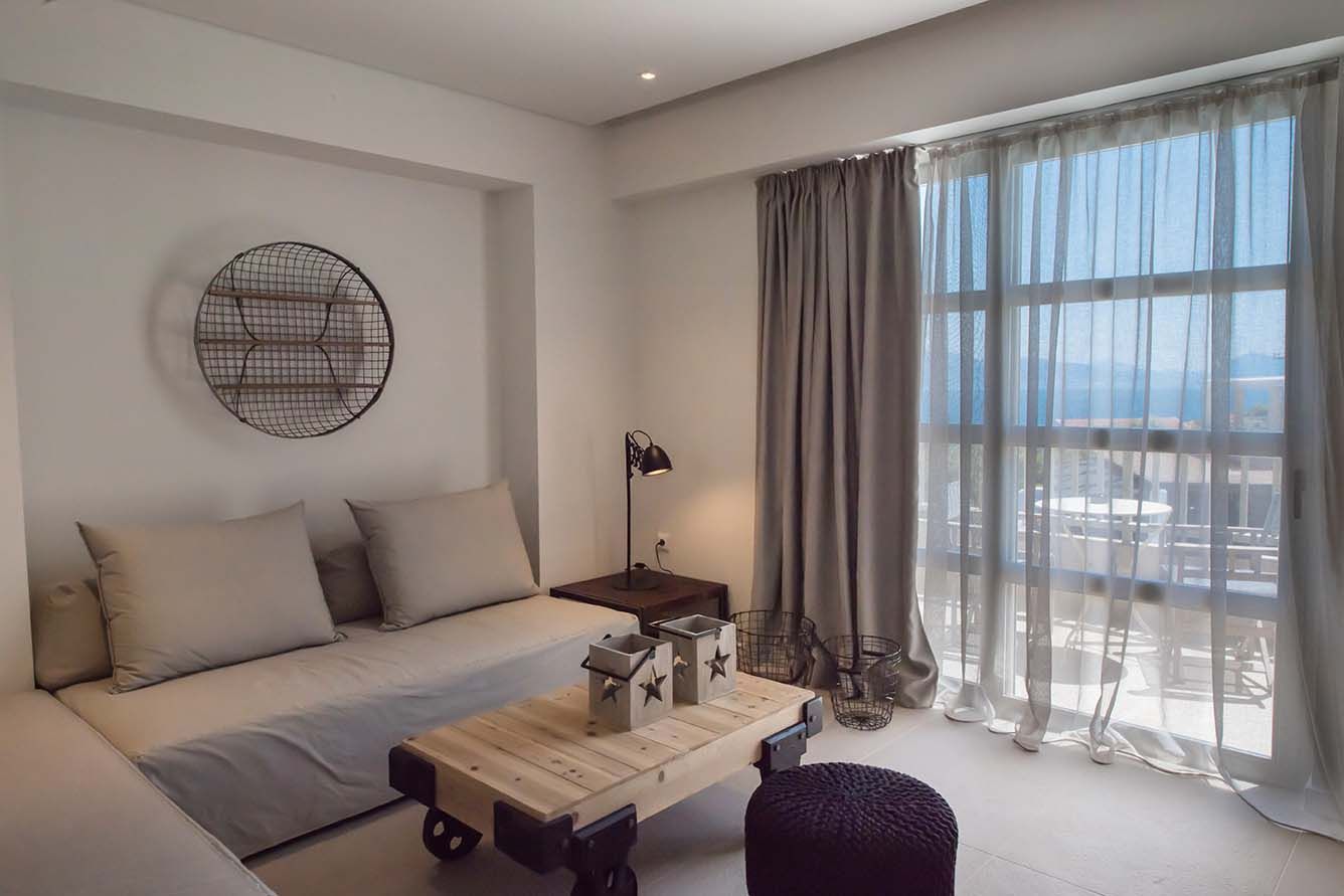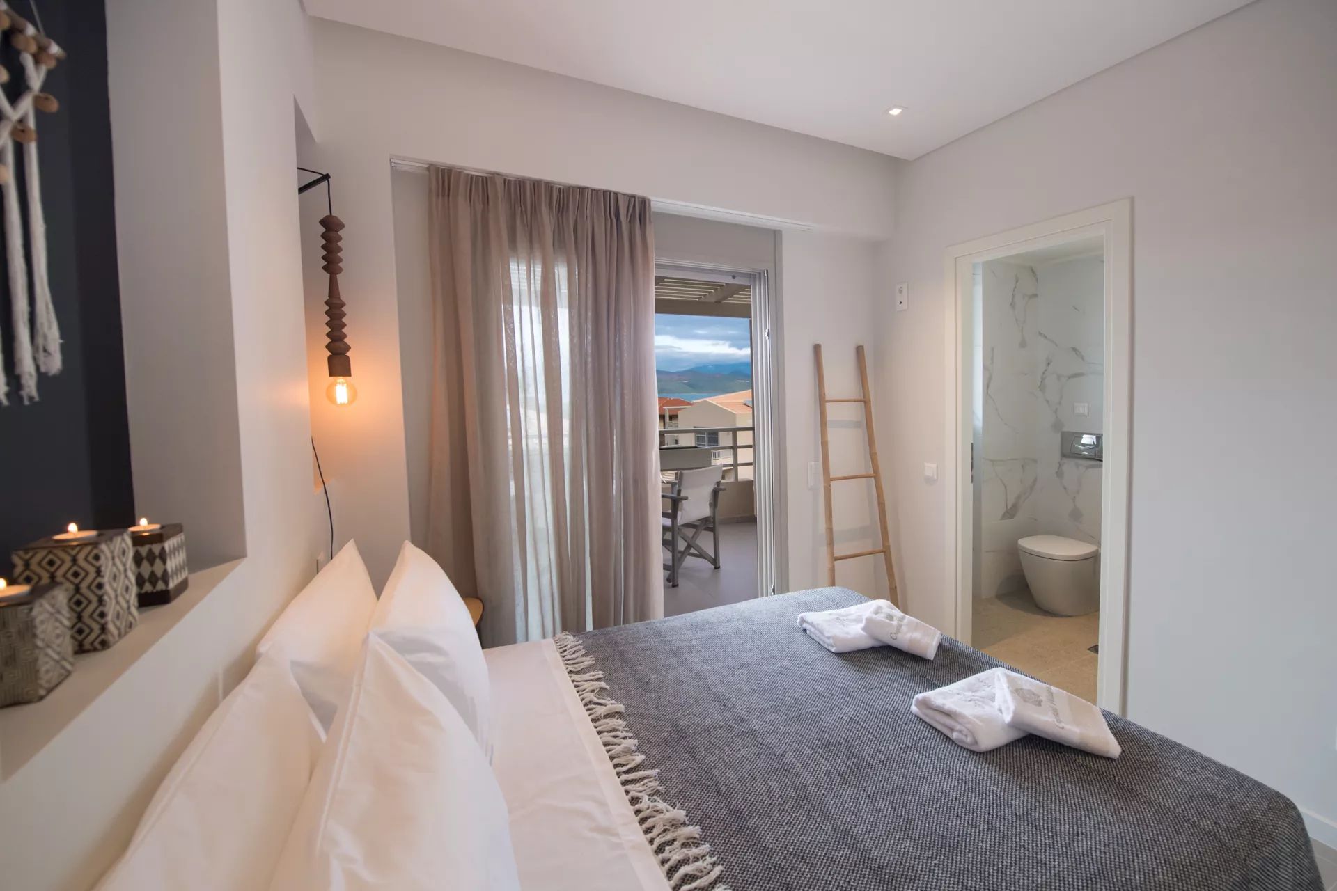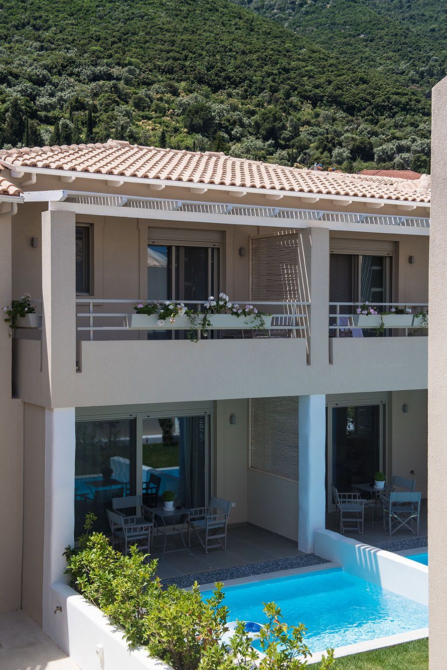 The elegantly decorated suites feature modern soft-colored furniture with pool, garden and Ionian Sea views.