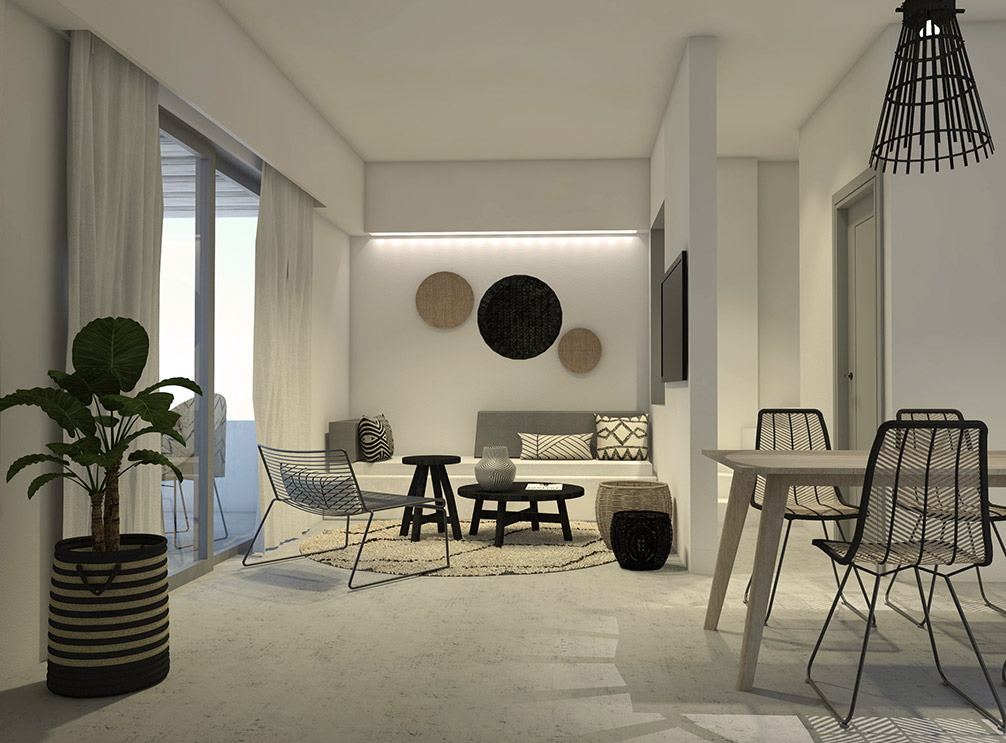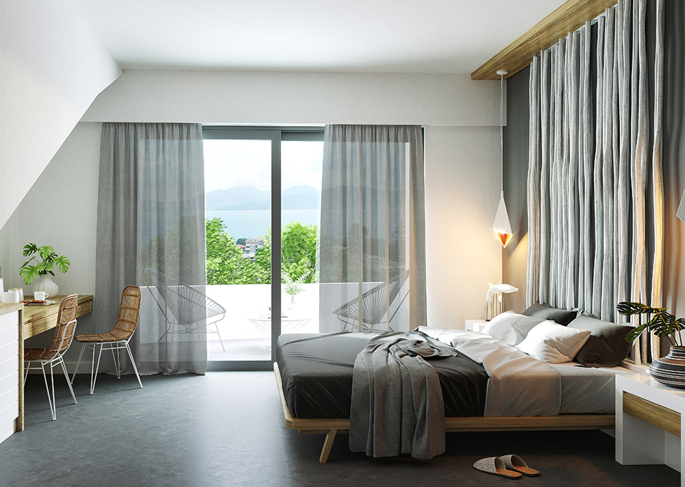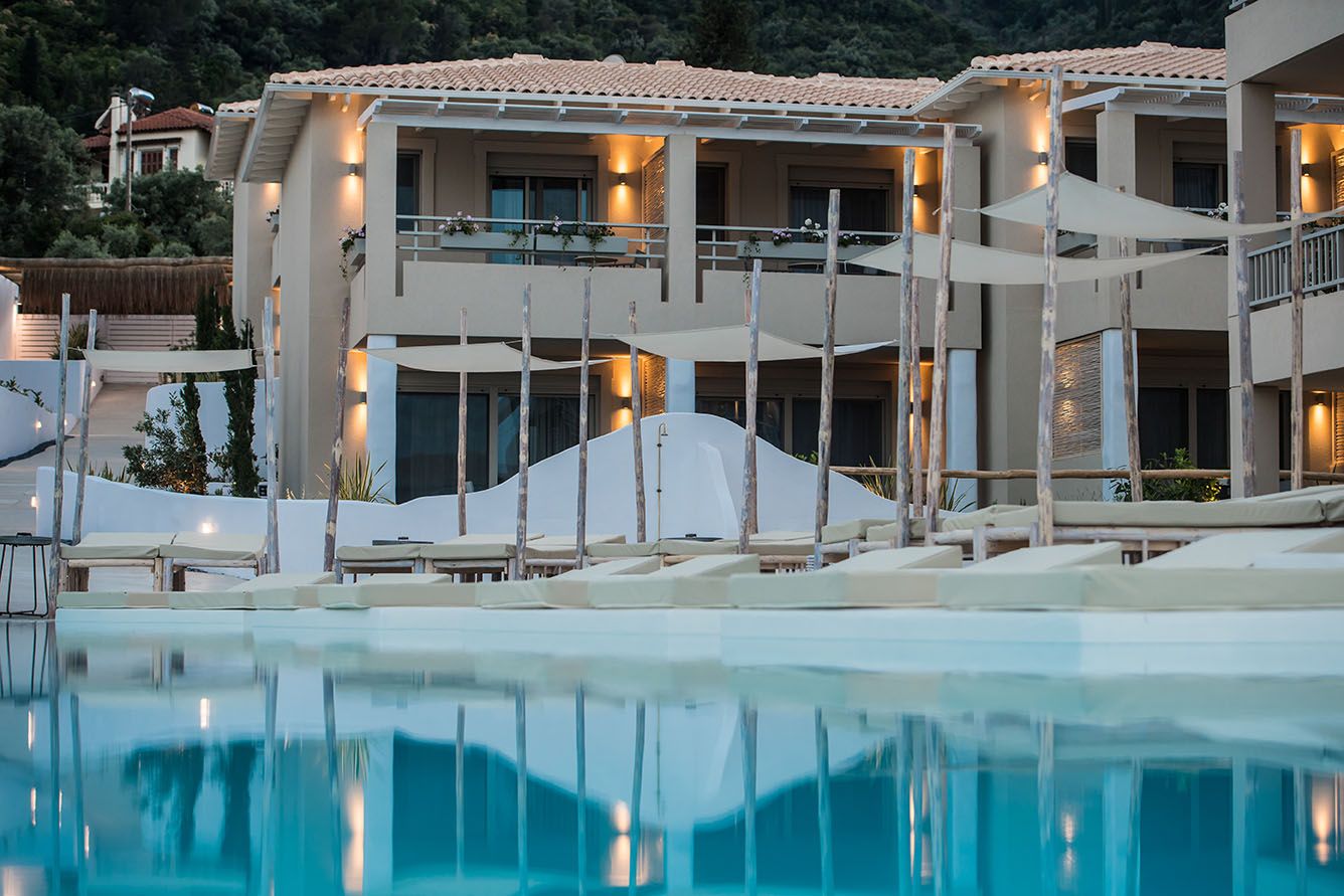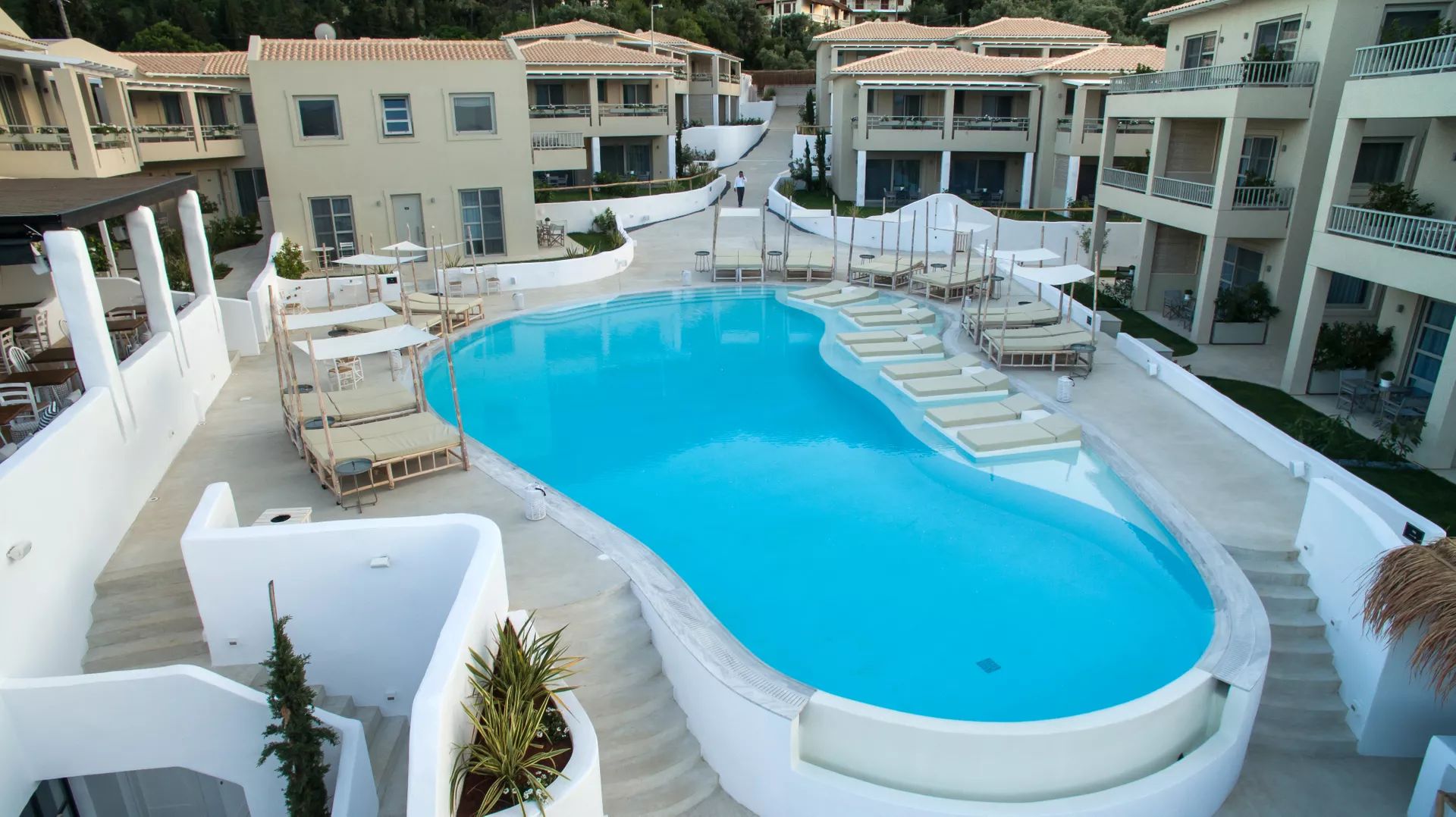 The elegantly decorated suites feature modern soft-colored furniture with pool, garden and Ionian Sea views.