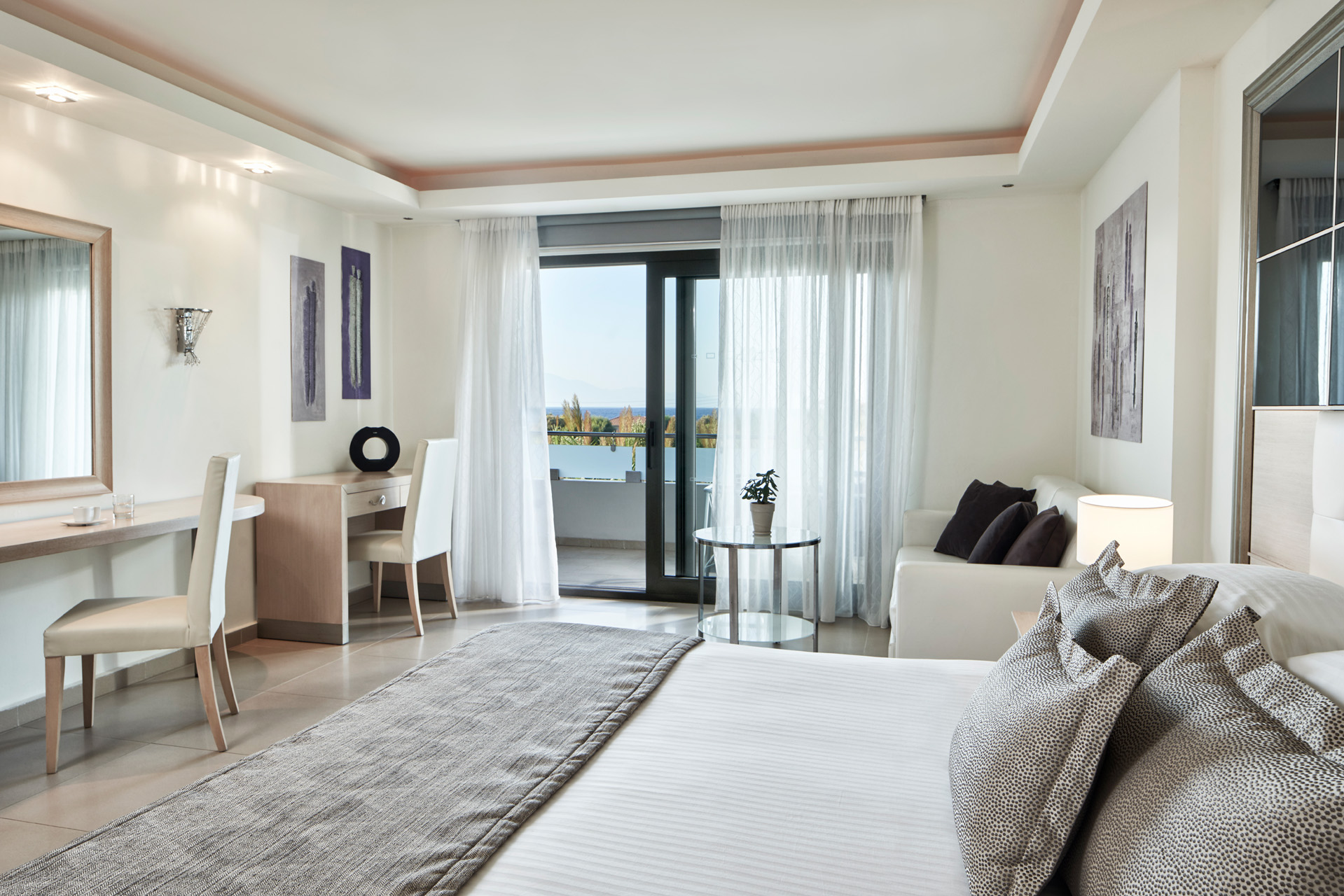 במלון 119 חדרים מרווחים ומודרניים המעניקים לאורחים סיגנון אירוח אלגנטי במגוון גדלים לזוגות ומשפחות .החדרים כוללים :    חדר רחצה עם אמבטיה או מקלחת סילוני עיסוי, טלוויזיה בלוויין מסך שטוח, נגן DVD, אמצעים להכנת קפה ומרפסת מרווחת ומרוהטת בחלק מיחידות האירוח יש אמבט עיסוי פרטי .