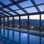 הספא בריכה מחוממת ומקורה מדהימה עם גג זכוכית .