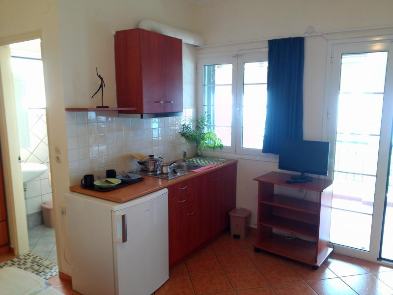 Studio Rooms – Each studio has a balcony with fantastic sea and sunset views, a private bathroom with hot water throughout the day.