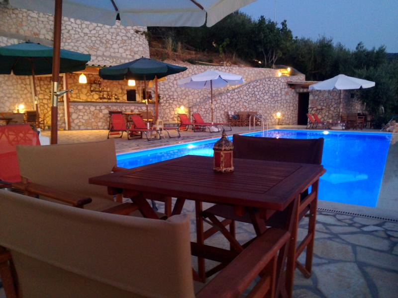 located in a picturesque village on Lefkada Island, in the West Coast area. They are built in a village near a small forest.