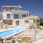 שתי וילות אבן מסורתיות עם נוף מדהים של הים היוני Ionian Sea .