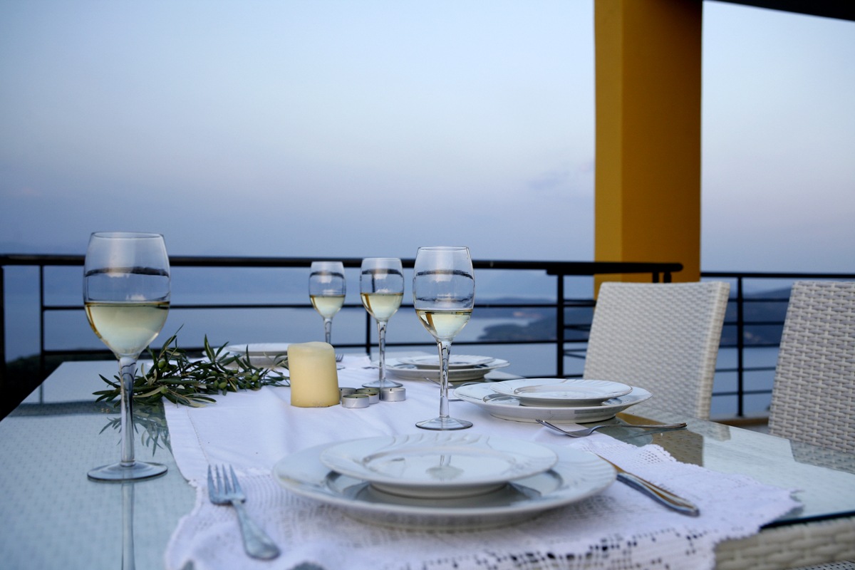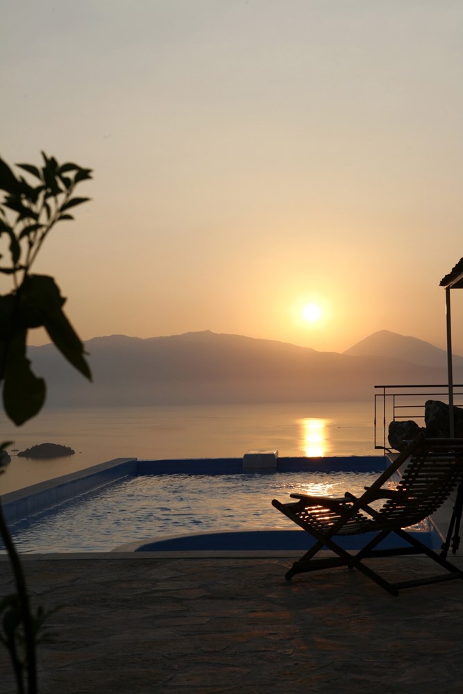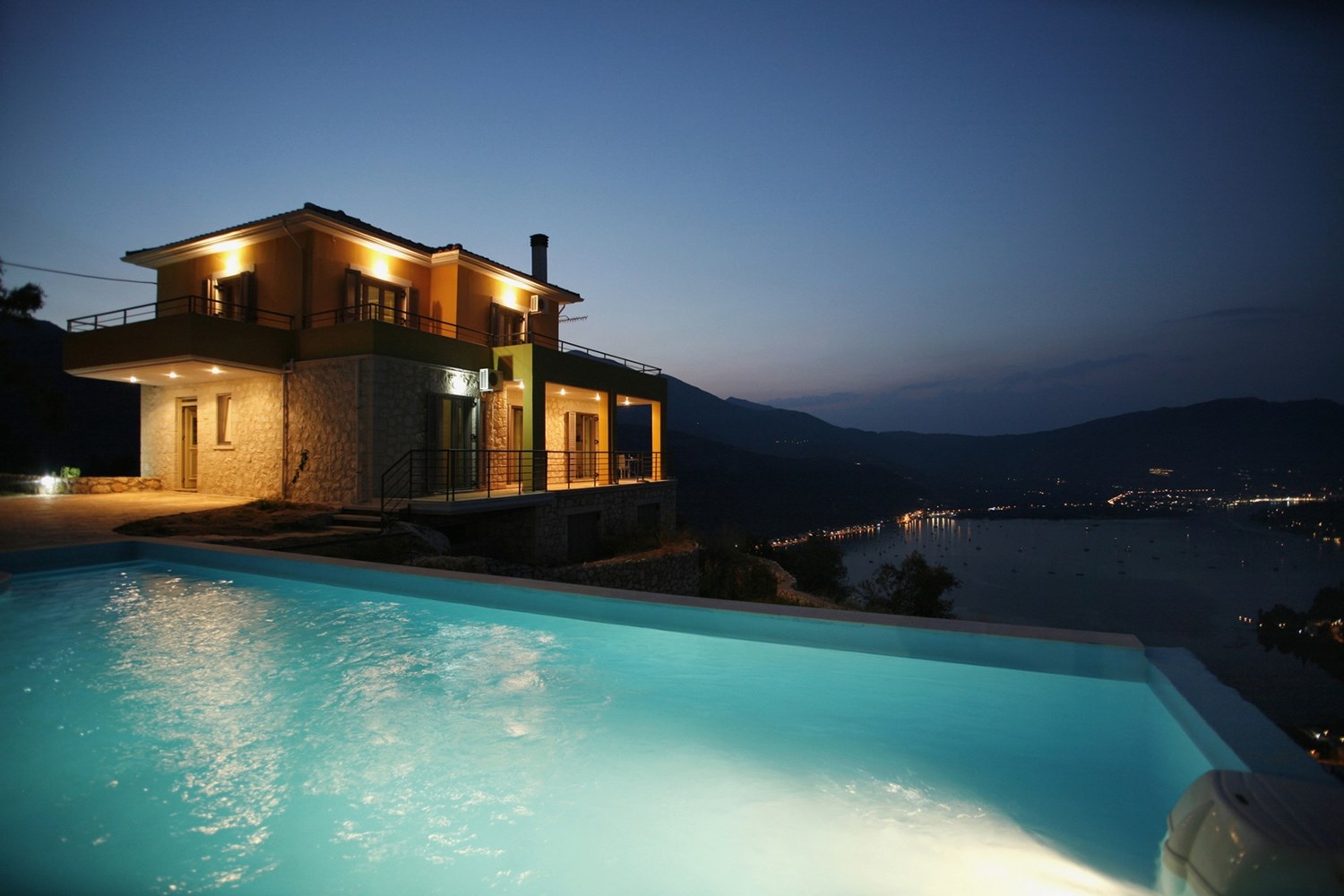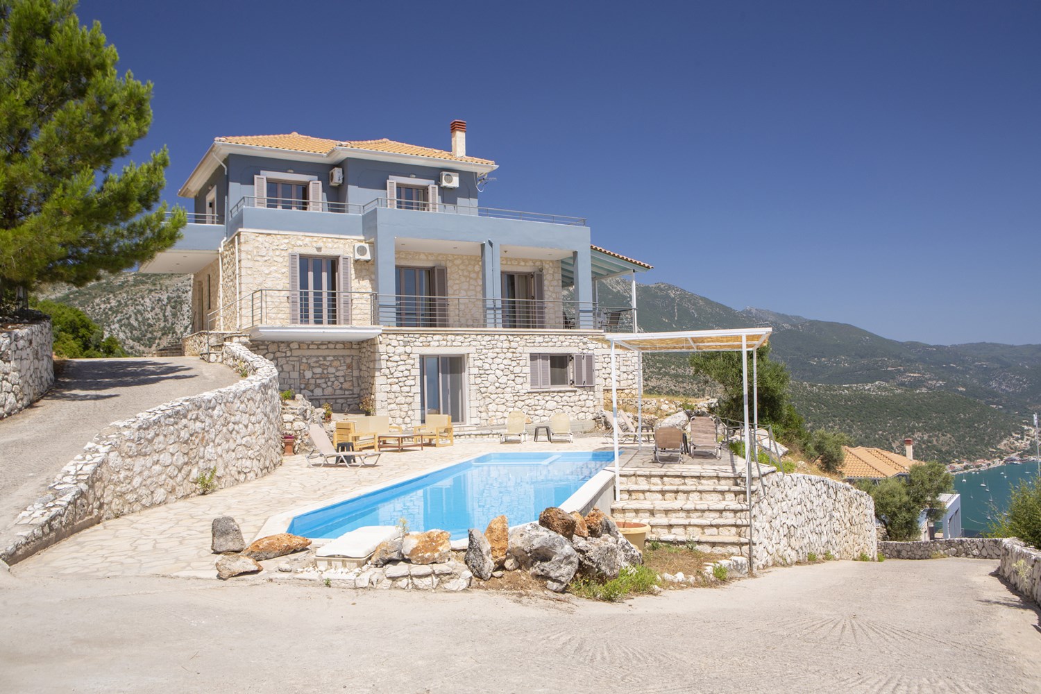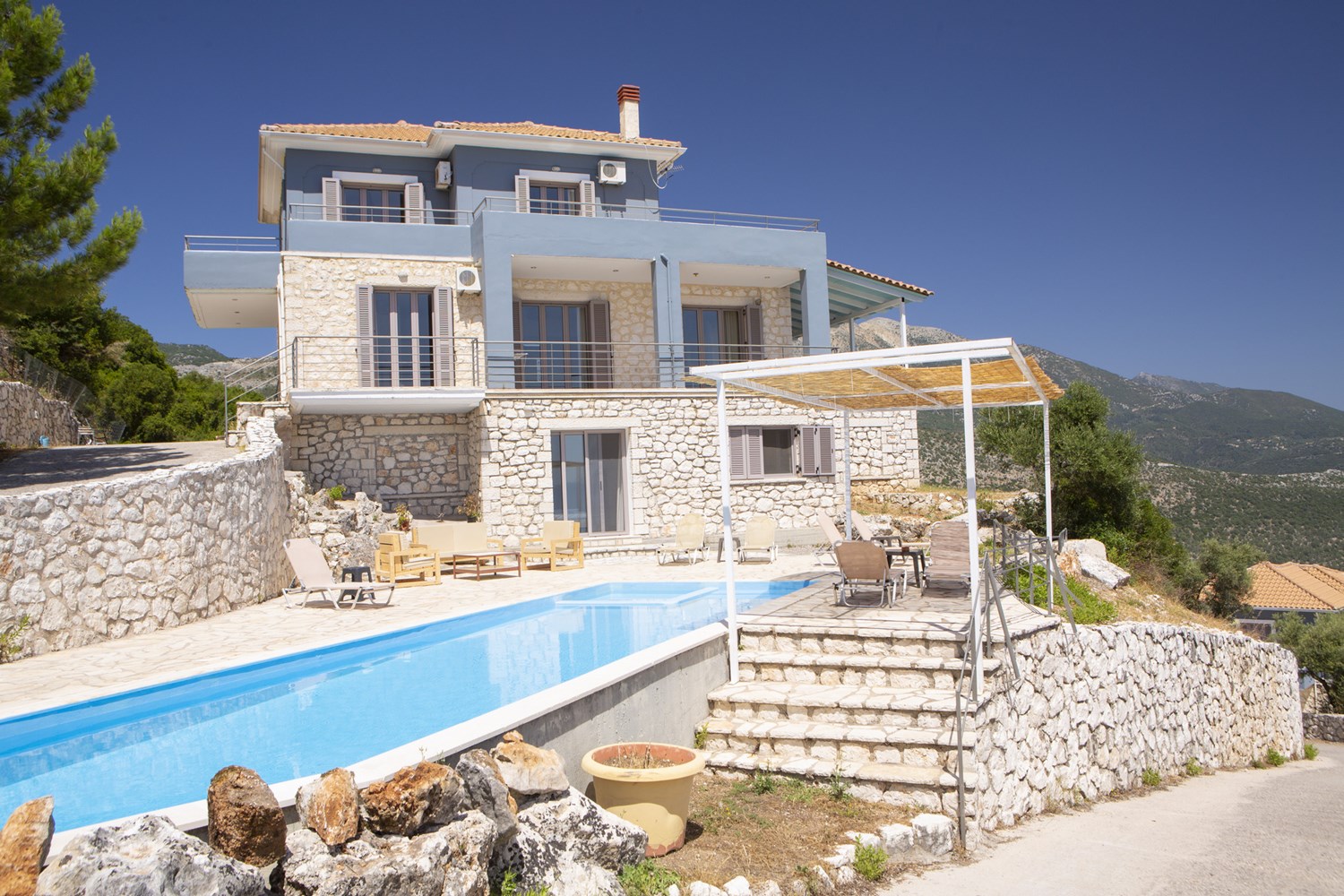 שתי וילות אבן מסורתיות עם נוף מדהים של הים היוני Ionian Sea .