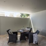 מרפסת מרווחת המשקיפה לבריכה