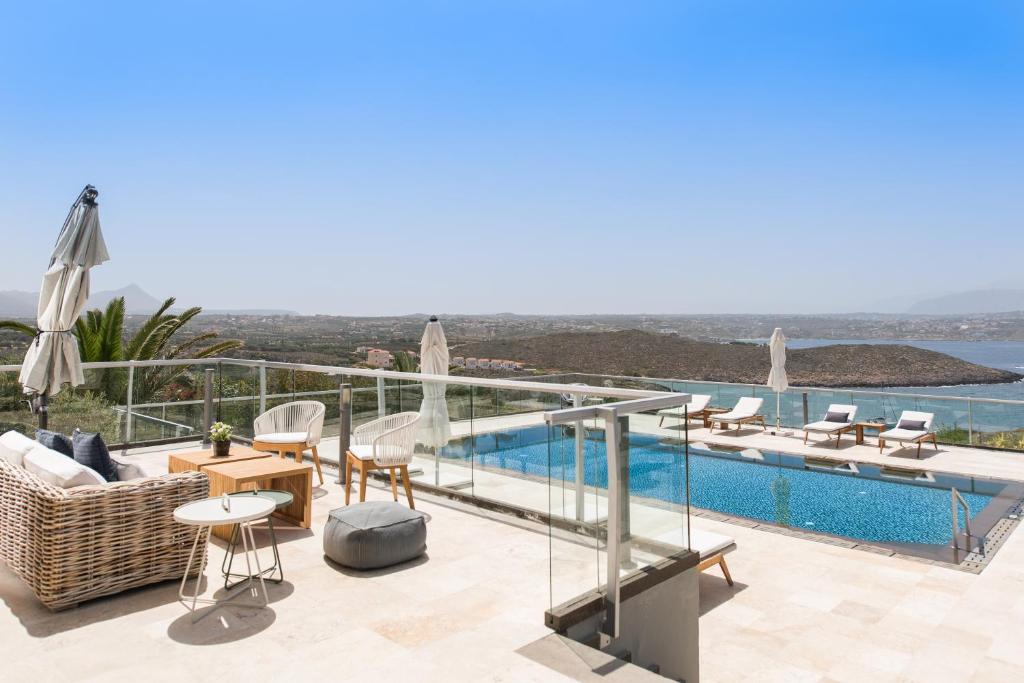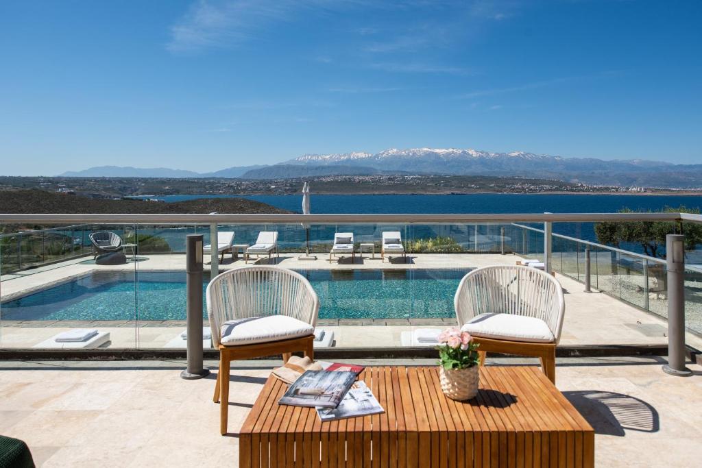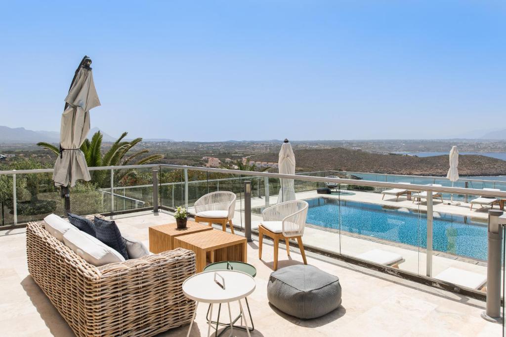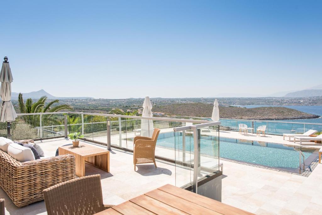 מתחם מגורים יוקרתי יפהפה במיוחד בנוי על גבעה המשקיפה על הים הכחול וההרים היפהפיים של כרתים, מרווח ומרוהט בנוחות בסגנון מסורתי עם מגע יוקרתי.