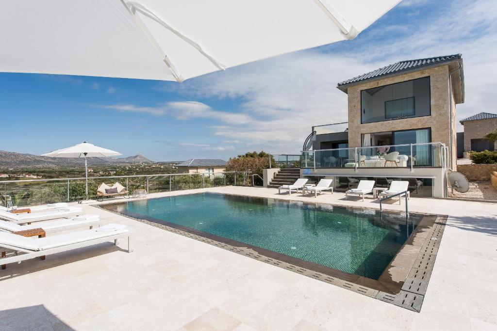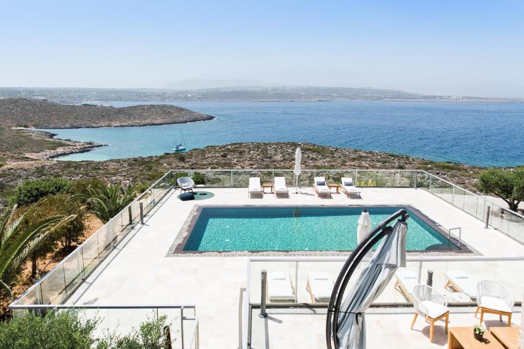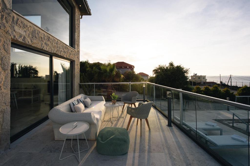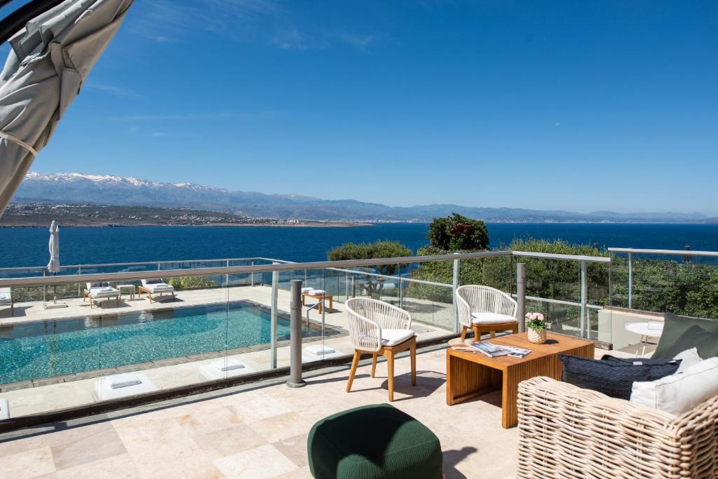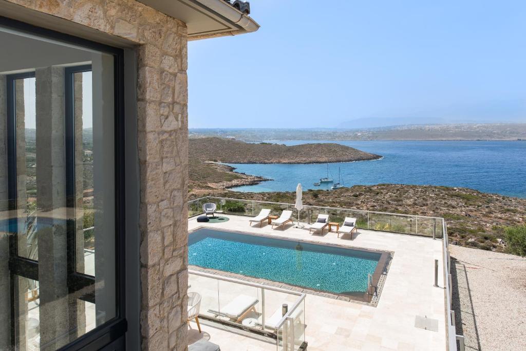 מתחם מגורים יוקרתי יפהפה במיוחד בנוי על גבעה המשקיפה על הים הכחול וההרים היפהפיים של כרתים, מרווח ומרוהט בנוחות בסגנון מסורתי עם מגע יוקרתי.