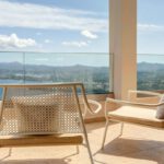 חדר שינה קינג סייז עם חדר רחצה צמוד ומרפסת גדולה עם כסאות נוח.