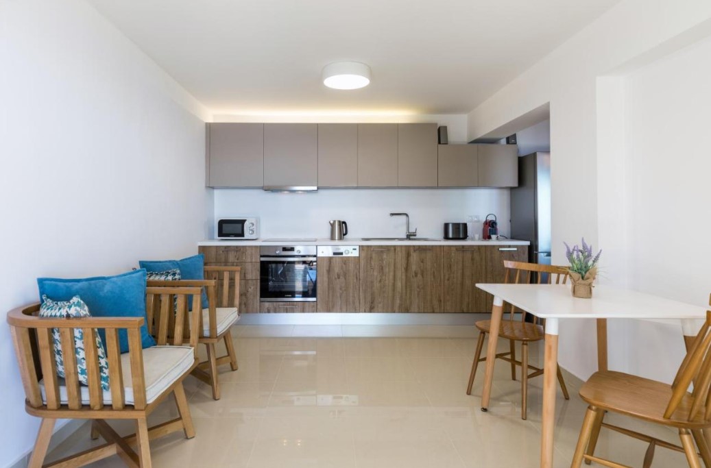 חדר שינה אחד (קיבולת ל-2 אורחים) עם מיטה זוגית, מטבח מאובזר, שולחן אוכל לשניים וחדר רחצה. ישנה בריכה פרטית עם מי מלח עם ג'קוזי פנימי ואזור טרקלין חיצוני.