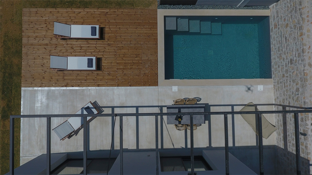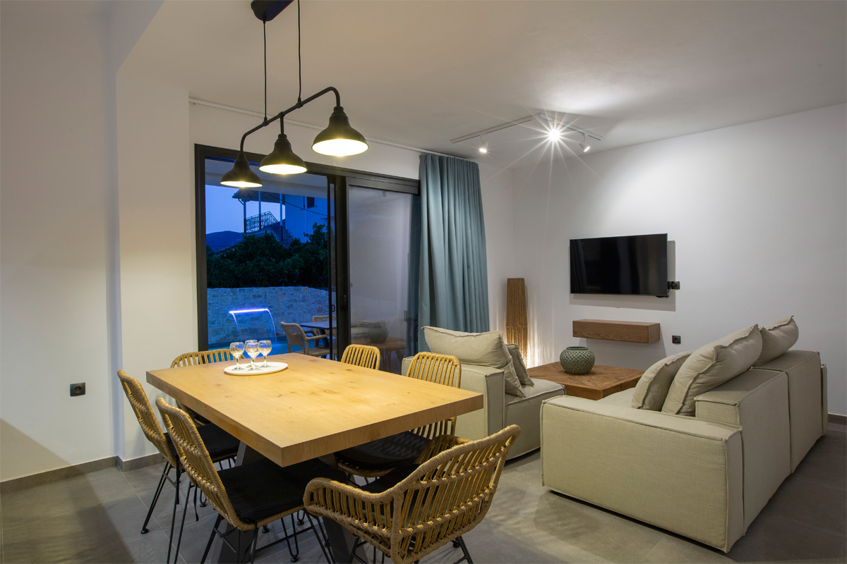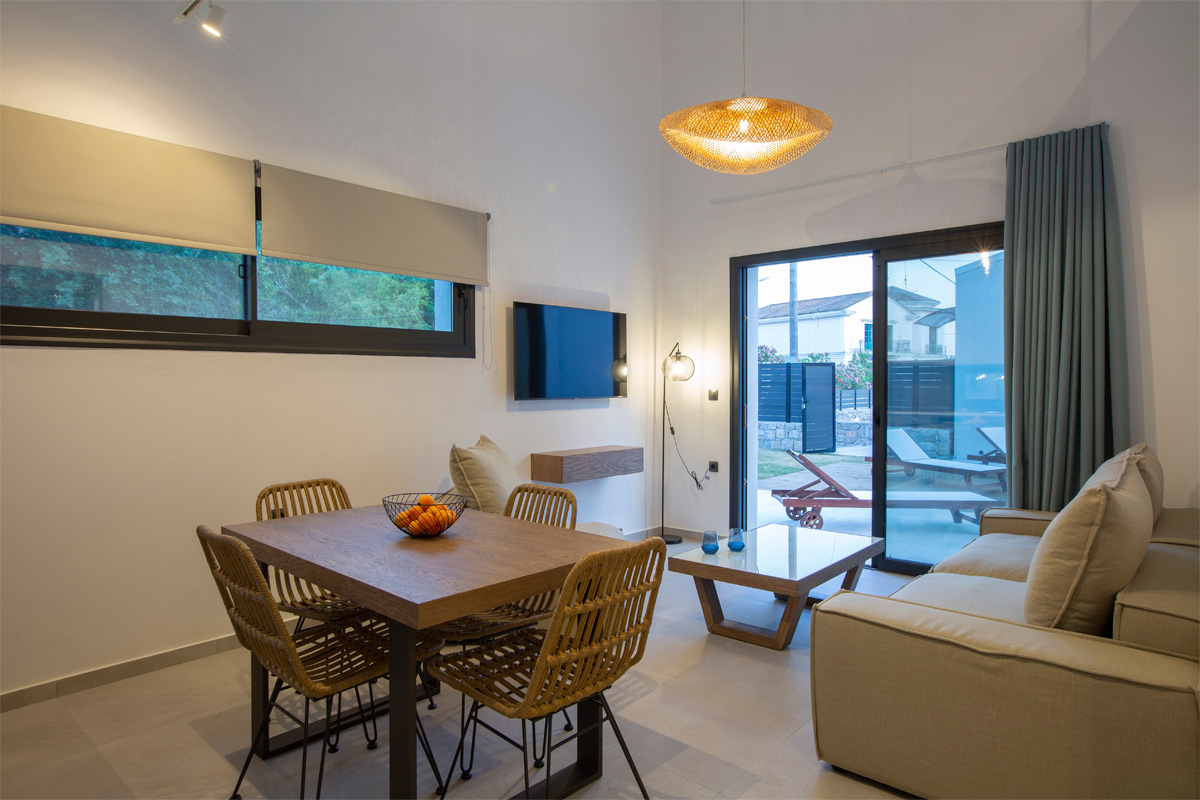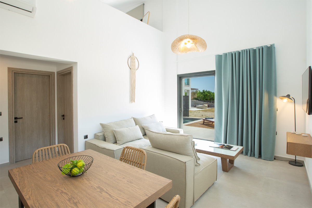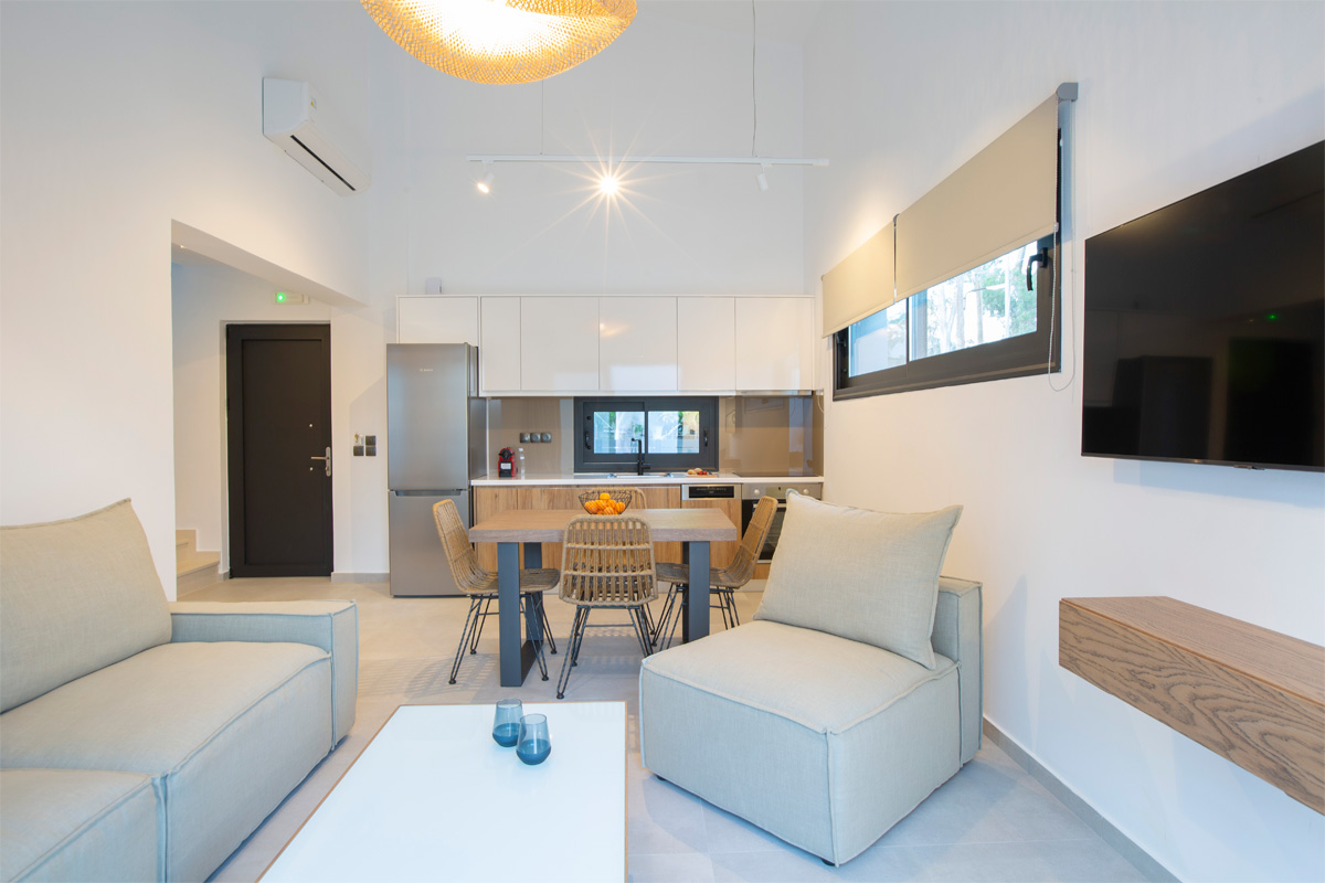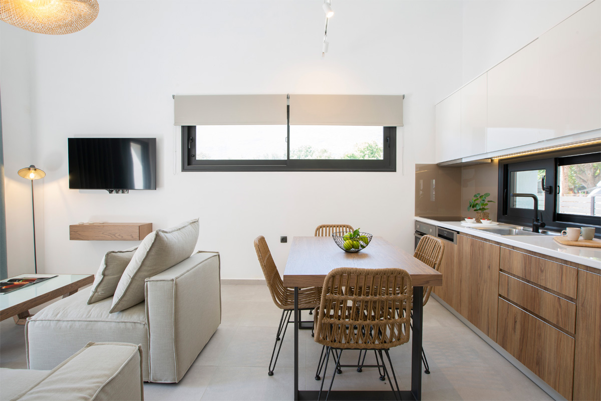 חלל המגורים מלא באור טבעי , הכולל ממטבח מאובזר במלואו עם פינת אוכל ואזור טרקלין מרווח ובריכת מים עמוקים פרטית.