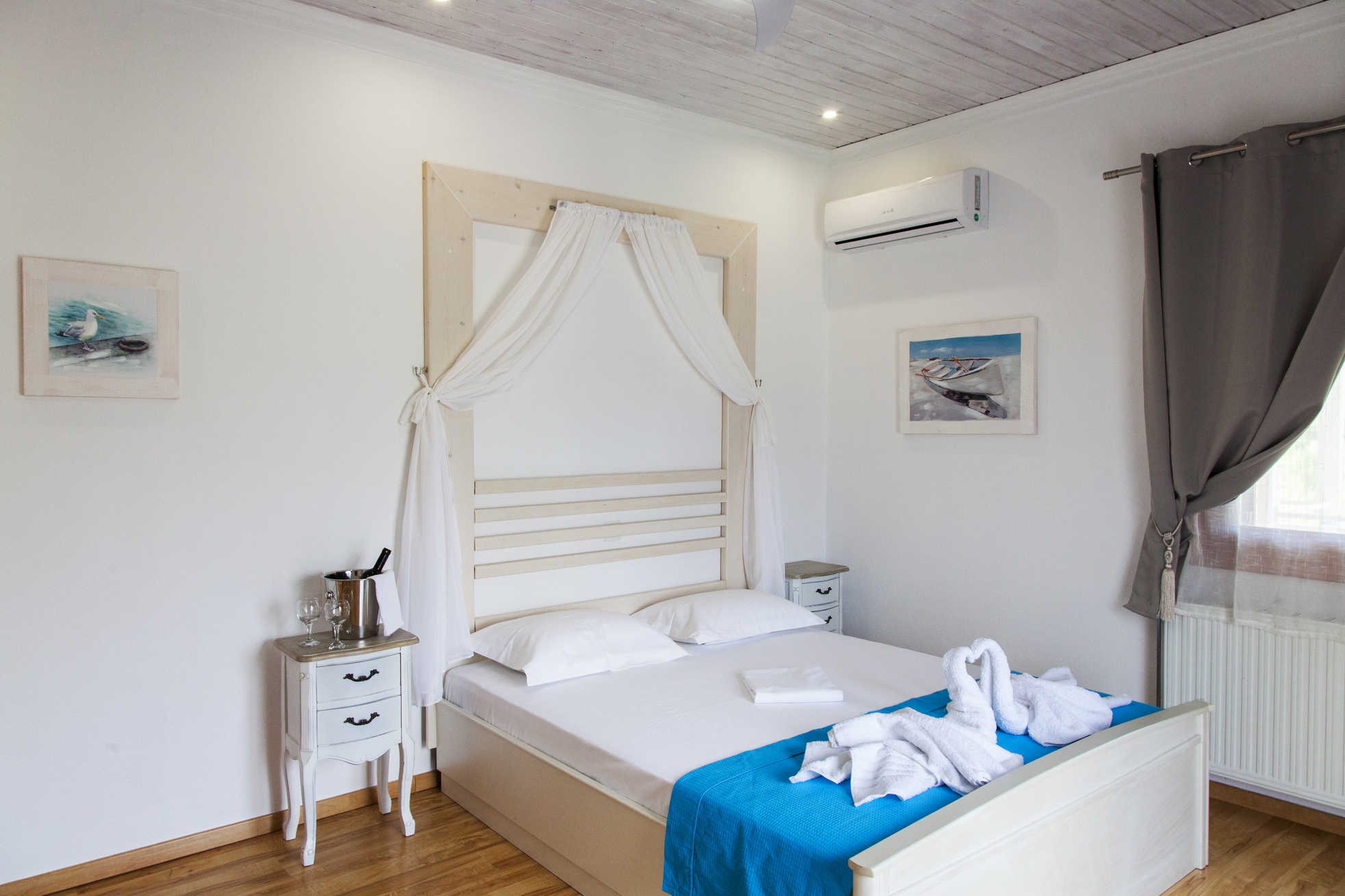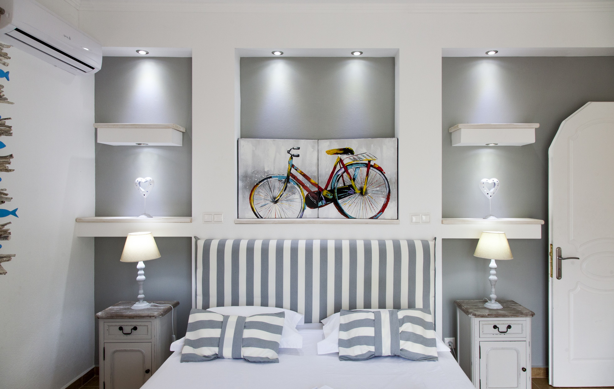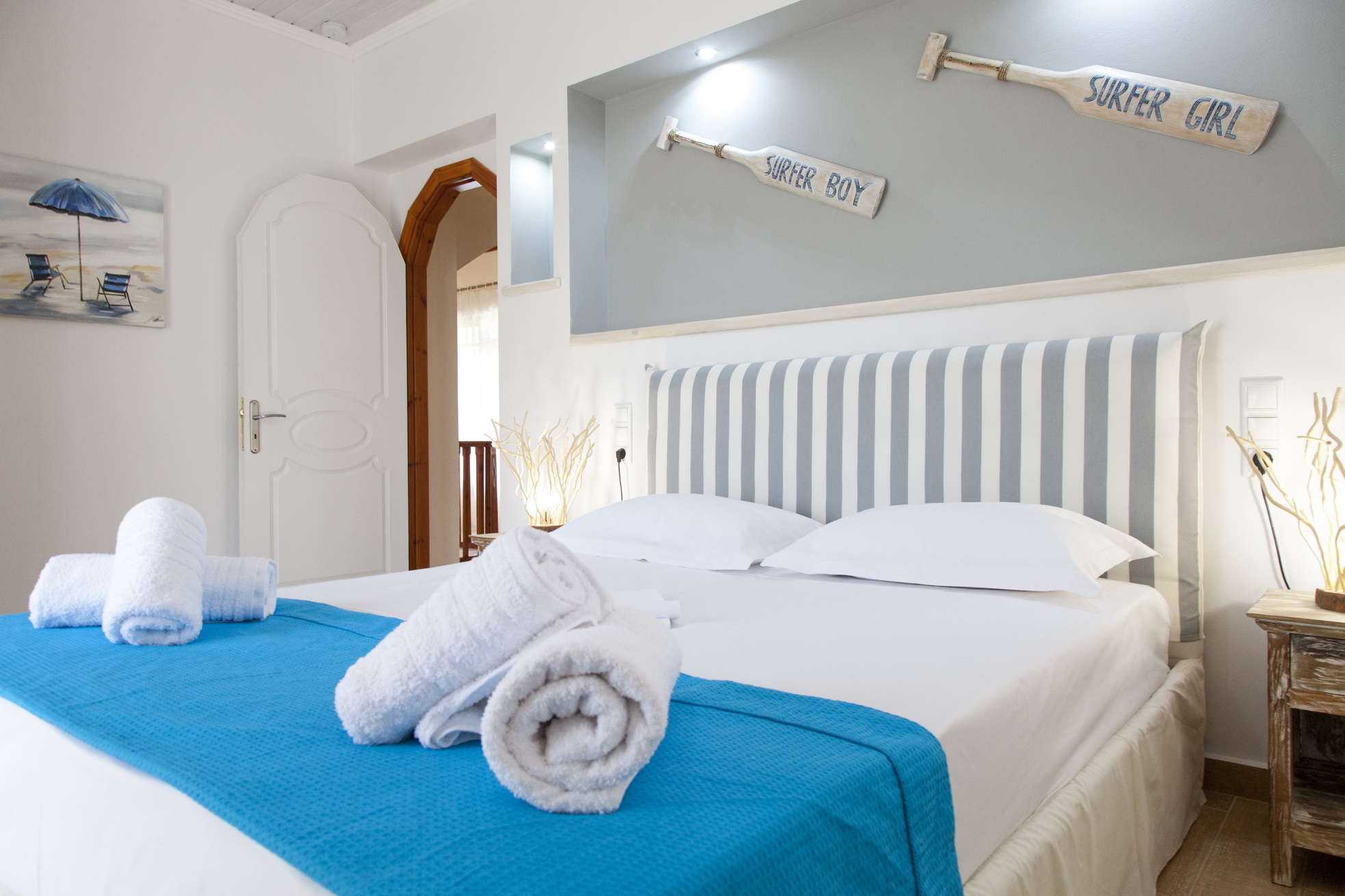 3 חדרי השינה עם מיטה זוגית, טלוויזיה, מיזוג אוויר ומאוורר תקרה.