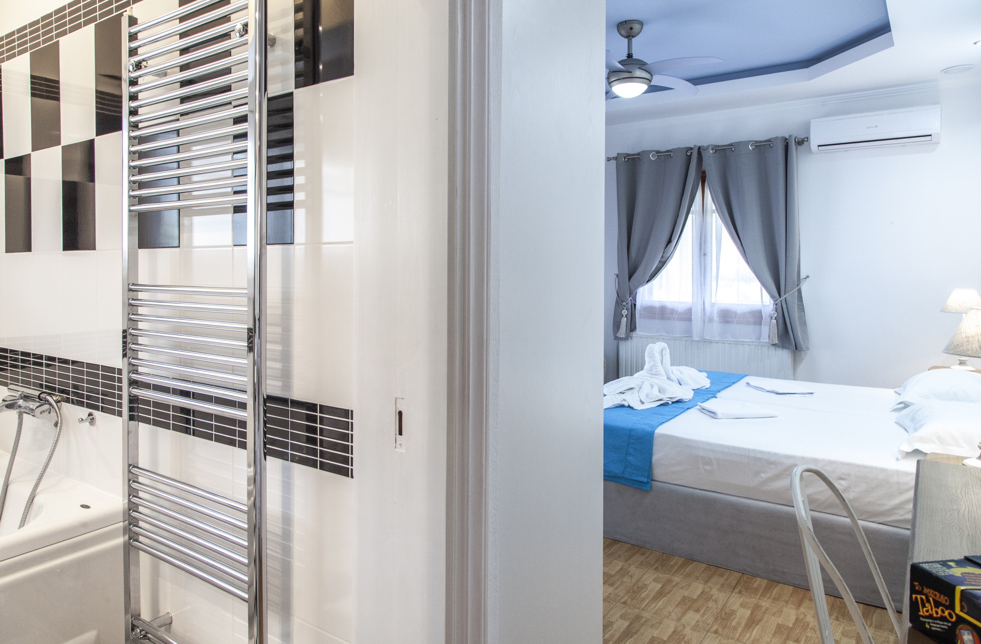 1 חדר השינה , שתי מיטות יחיד, טלוויזיה, מיזוג אויר ומאוורר תקרה.