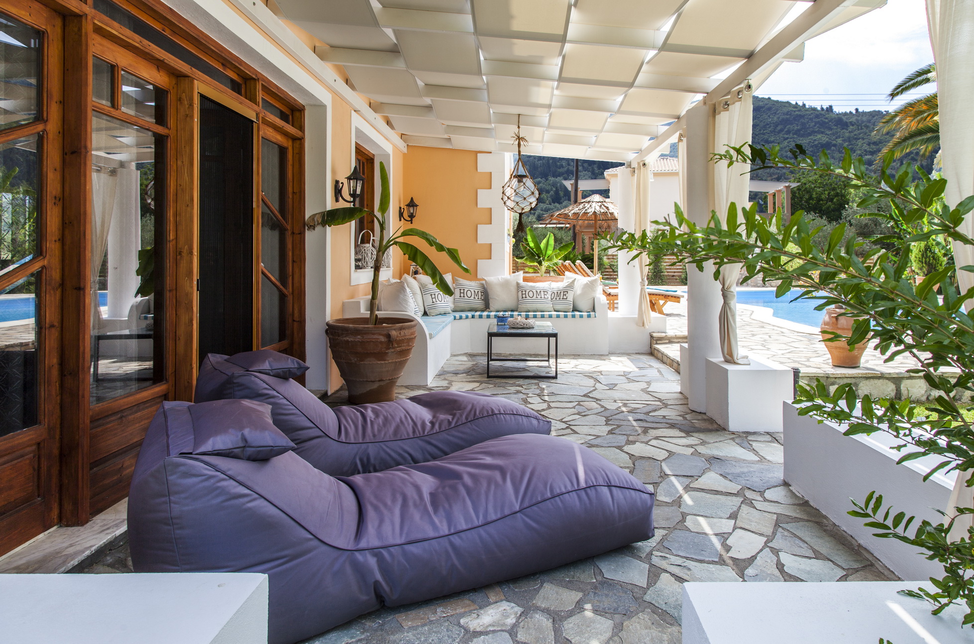 שניים מחדרי השינה האלה פונים לבריכה והשניים האחרים פונים לגינה.