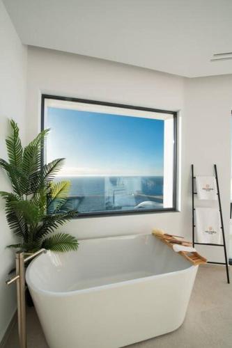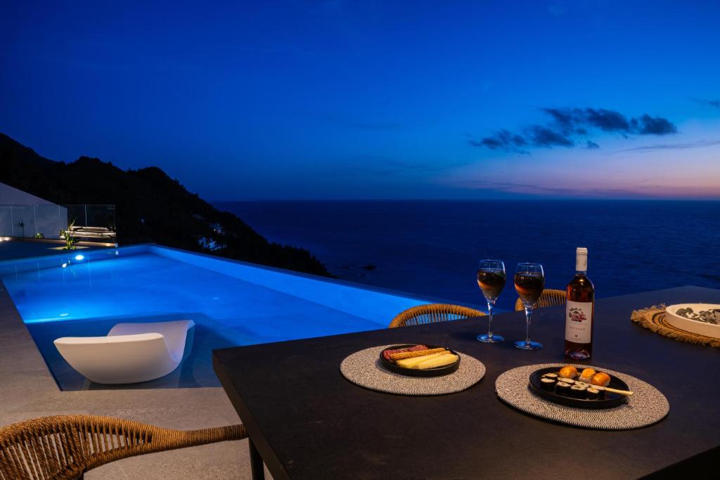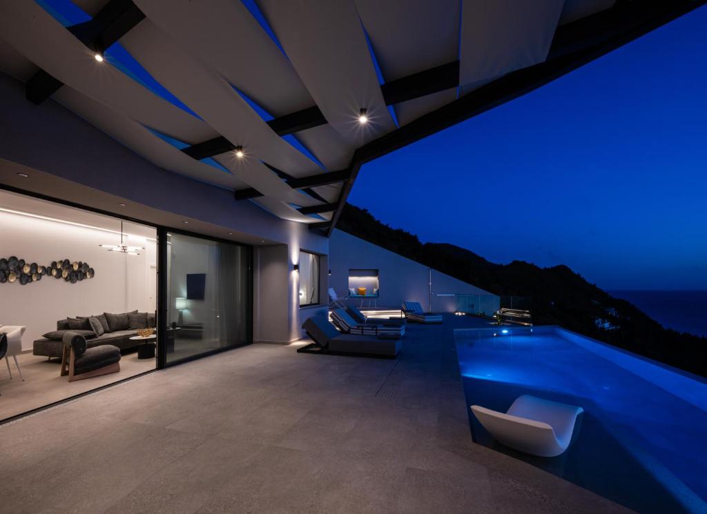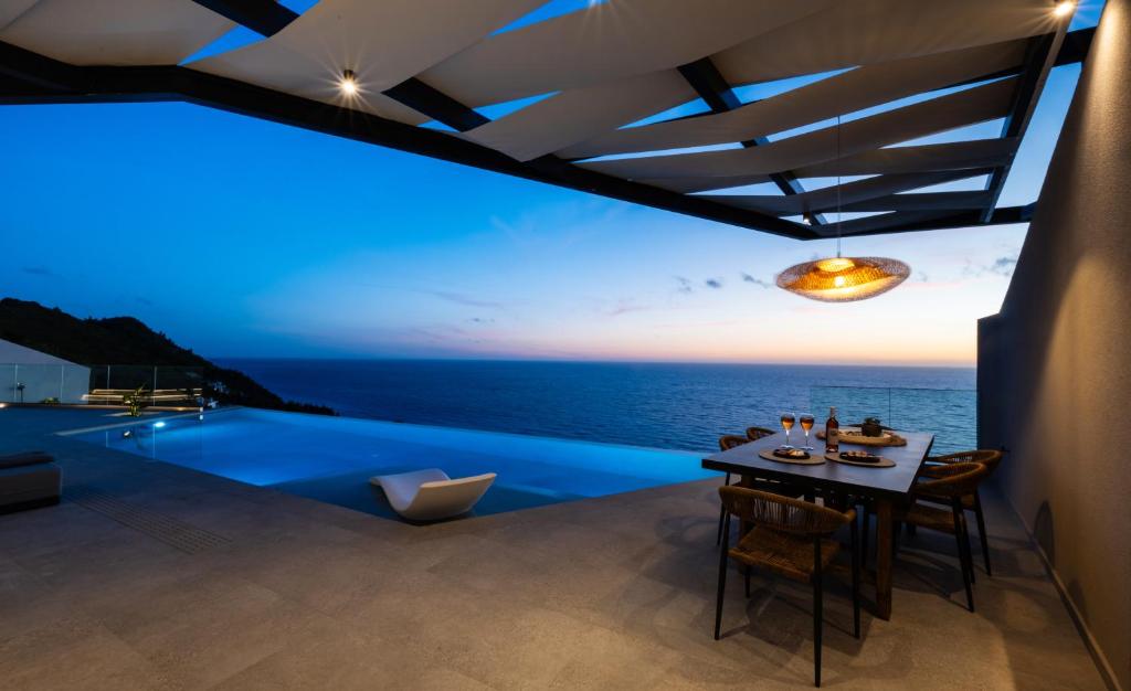 וילה מודרנית מעוצבת הבנויה עם חומרי גלם טבעיים תוך כיבוד אדריכלות מקומית, בריכה פרטית נוף פנורמי מדהים לים.