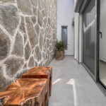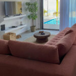 הכניסה לוילה בקומת הקרקע : חלל פתוח עם חדר טרקלין עם דלתות זכוכית מהרצפה עד התקרה הממלאות את החלל באור טבעי. חלל הטרקלין עם גישה ישירה לאזור הבריכה החיצונית. כמו כן בחלל זה מטבח מאובזר משקיף לנוף לים.