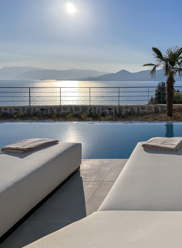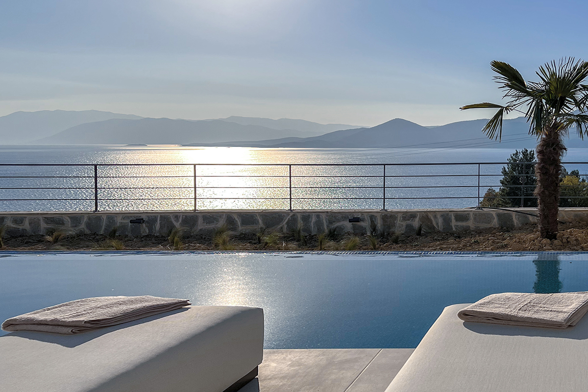 הוילות שוכנות בכפר דייגים ציורי הממוקם על החוף המערבי של יוון היבשתית, ממוקם ברקע עוצר נשימה של נופים יפים ושלווים ומימיו הצלולים של הים היוני Ionian Sea עצי זית, כרמים ועצי אורן משתרעים עד לחופים מבודדים.