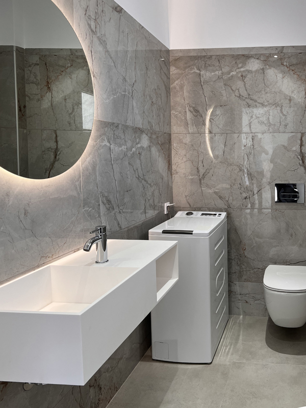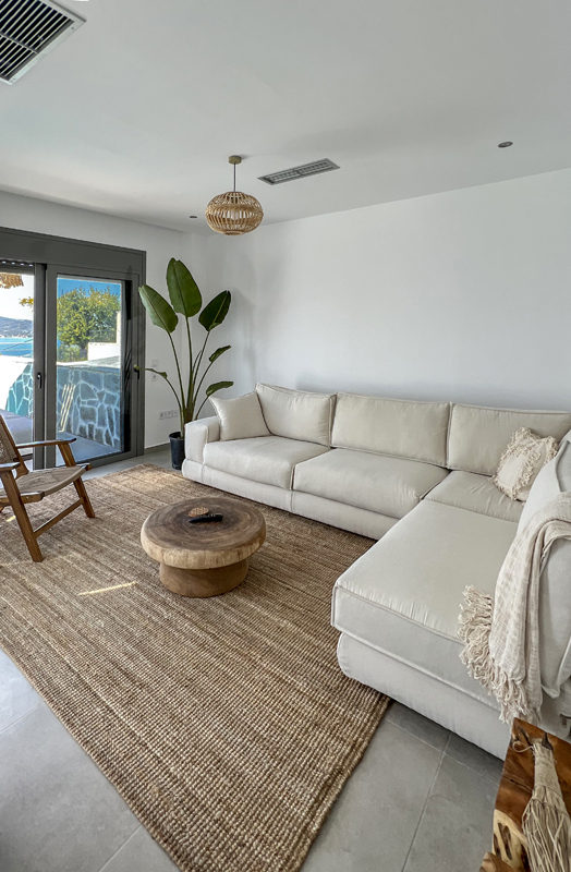 הכניסה לוילה בקומת הקרקע : חלל פתוח עם חדר טרקלין עם דלתות זכוכית מהרצפה עד התקרה הממלאות את החלל באור טבעי. חלל הטרקלין עם גישה ישירה לאזור הבריכה החיצונית. כמו כן בחלל זה מטבח מאובזר משקיף לנוף לים.