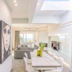 בכניסה לוילה אזור פתוח מרווח המורכב מסלון עם נוף פנורמי לים, אח, ספה גדולה, הניתנת להפיכה לשתי מיטות יחיד שבהן ניתן לאכלס שני אנשים נוספים, 55 אינץ' 4K טלוויזיית HD חכמה, פינת אוכל מקורה ומטבח מאובזר עם : כיריים, תנור, מקרר, מקפיא, מכונת קפה, קומקום, מגוון מלא של כלי בישול, כלי אוכל וסכו"ם מספיק לעשרה אנשים.