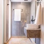 שלושה חדרי רחצה כל אחד מהם עם מקלחת, מרסס בידה למים חמים וקרים ומתקנים כגון מייבש שיער, אחד מחדרי הרחצה מצויד במכונת כביסה.