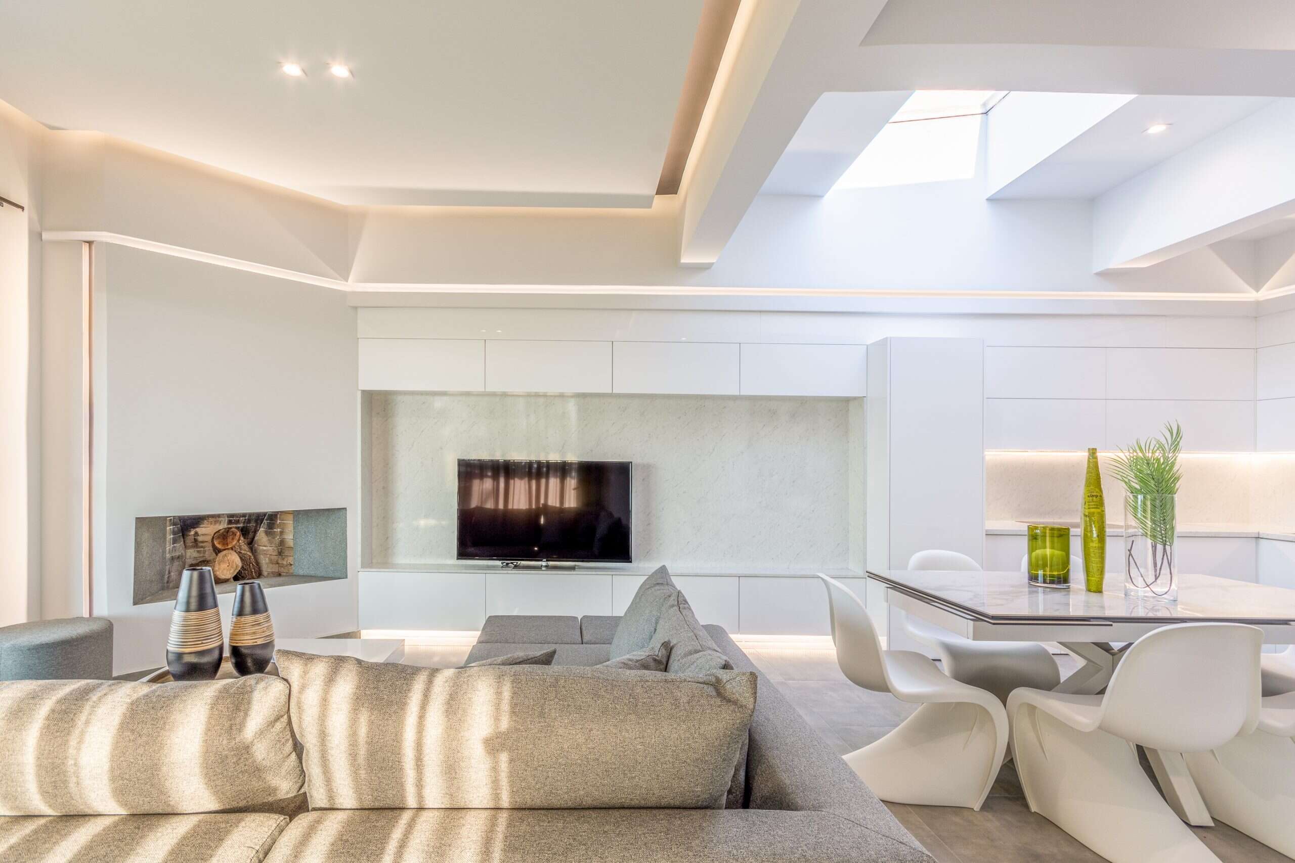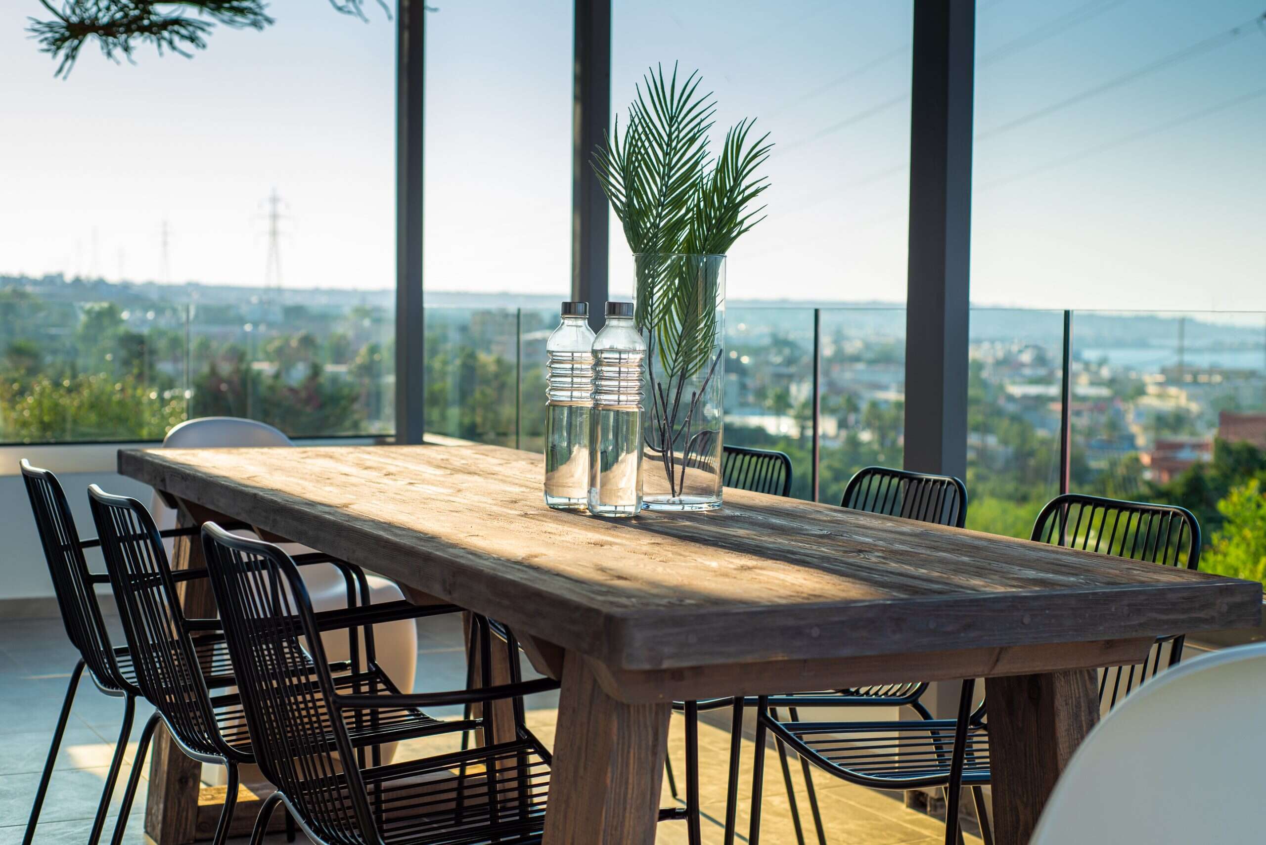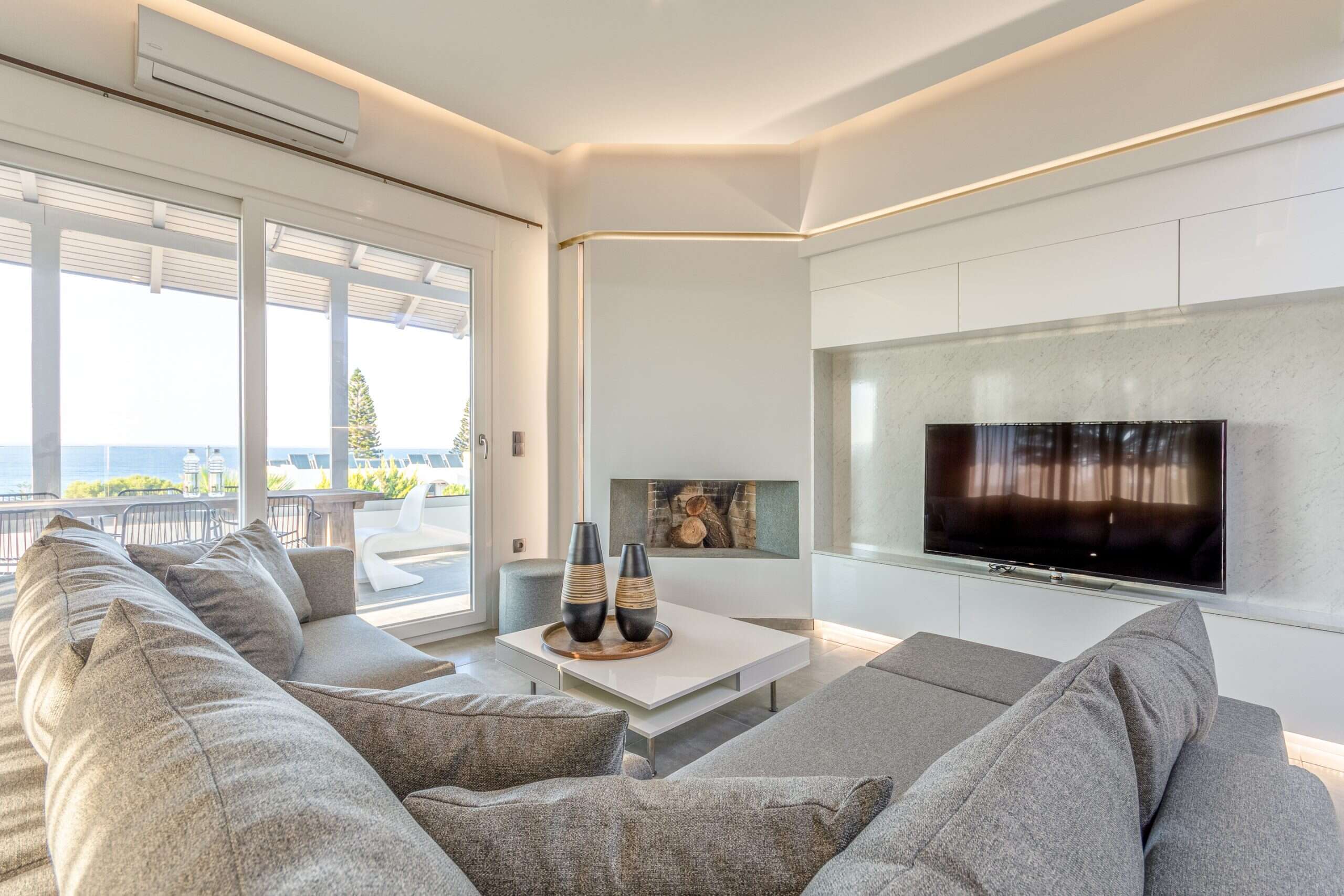 בכניסה לוילה אזור פתוח מרווח המורכב מסלון עם נוף פנורמי לים, אח, ספה גדולה, הניתנת להפיכה לשתי מיטות יחיד שבהן ניתן לאכלס שני אנשים נוספים, 55 אינץ' 4K טלוויזיית HD חכמה, פינת אוכל מקורה ומטבח מאובזר עם : כיריים, תנור, מקרר, מקפיא, מכונת קפה, קומקום, מגוון מלא של כלי בישול, כלי אוכל וסכו"ם מספיק לעשרה אנשים.
