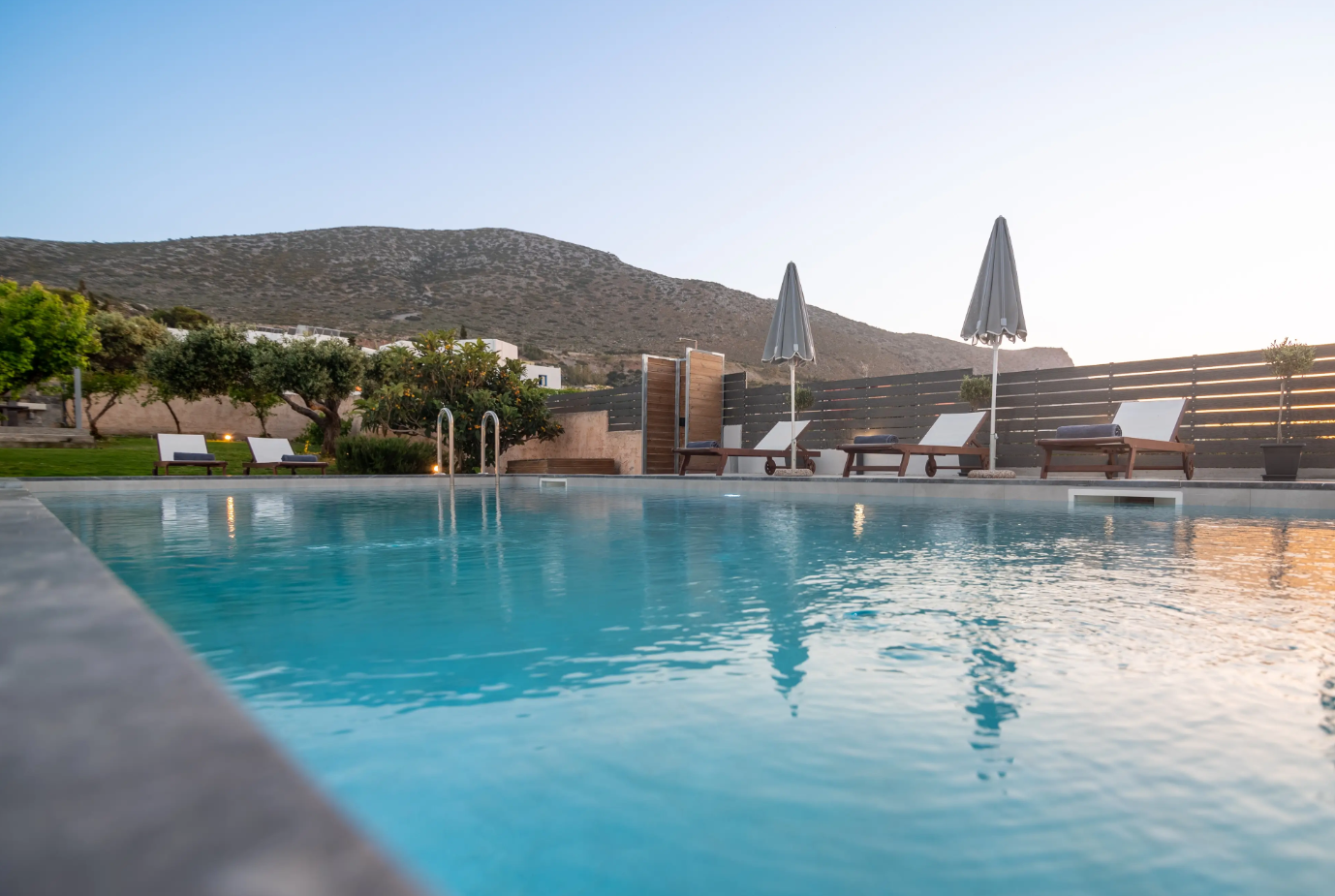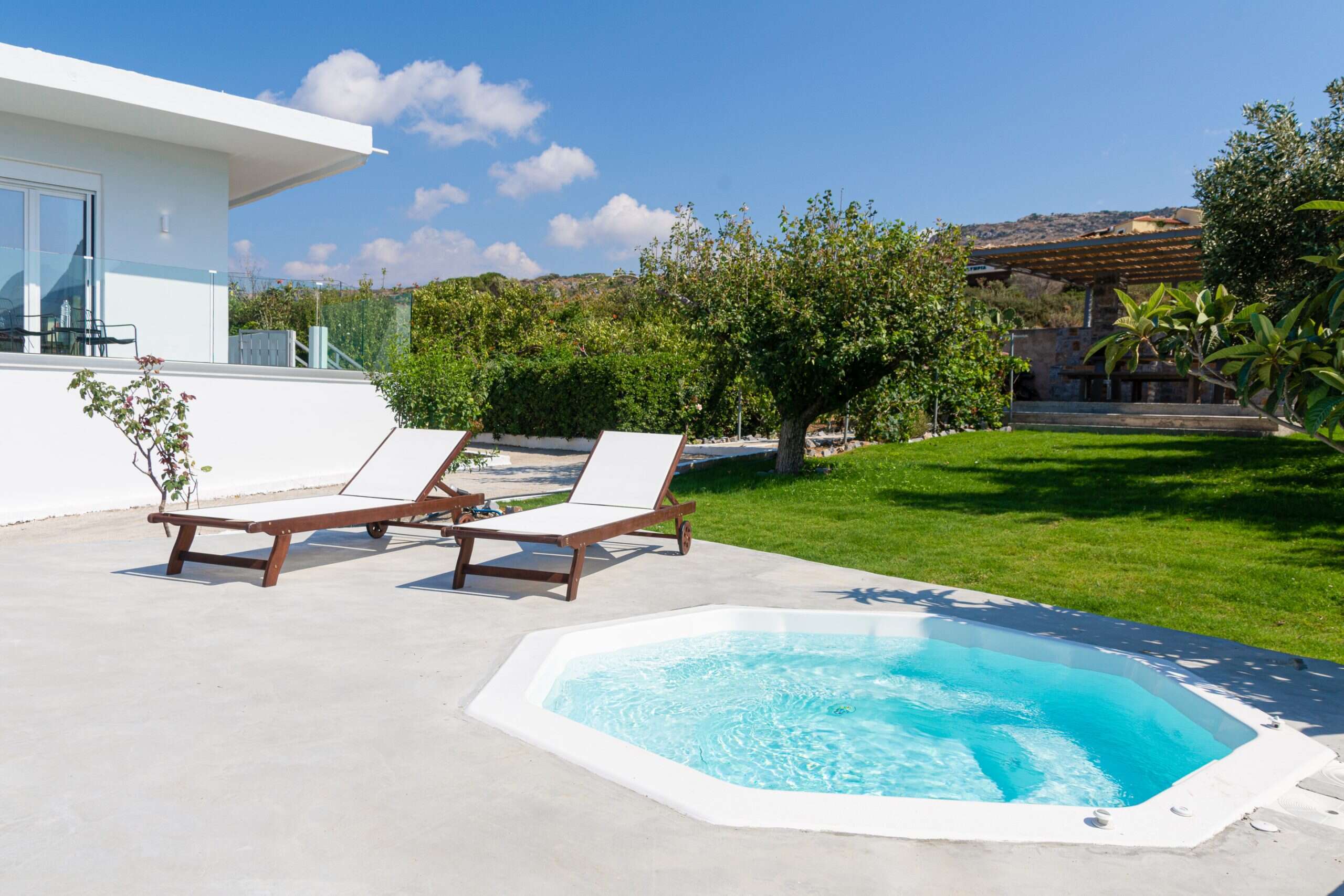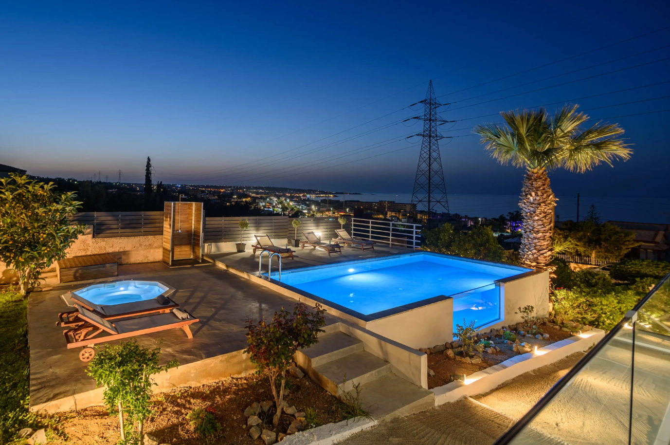 הווילה מעוצבת באלגנטיות עם הריהוט האסתטי והמתקנים האיכותיים המציעים אווירה ייחודית יחד עם הג'קוזי מיני ספא, הבריכה הפרטית והחצר המגודרת בגודל 1.5 דונם מציעים תחושת ביטחון ושלווה תוך מרחק הליכה מחוף חרסוניסוס, פארק הבילויים השופע סטאר ביץ' ורוב האטרקציות והיופי הטבעי של כרתים.