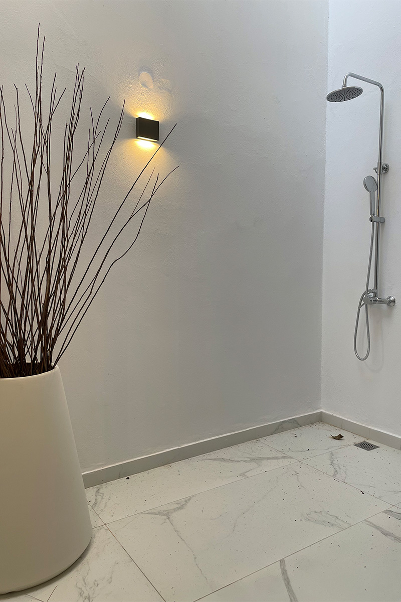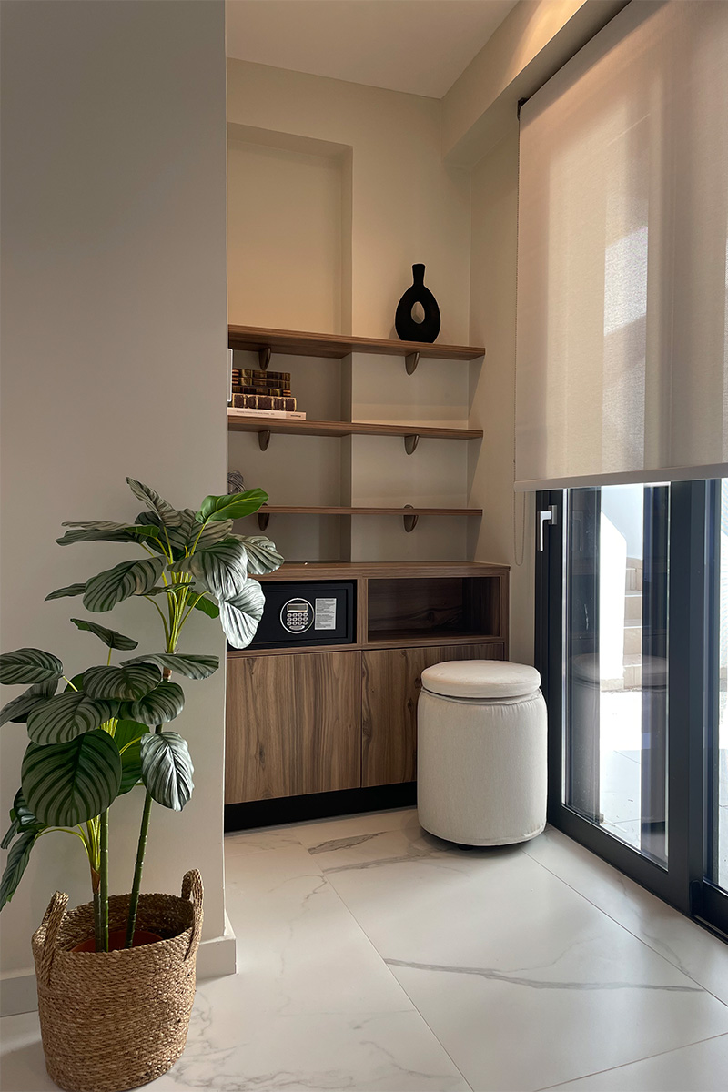 כל בית מגורים של 120 מ"ר : מורכב משלושה חדרי שינה זוגיים מודרניים ומסוגננים, 3 חדרי רחצה צמודים, אזור מגורים פתוח ומאוורר, מטבח מאובזר, אזור חיצוני נוח עם בריכת שחייה פרטית ונוף לים.