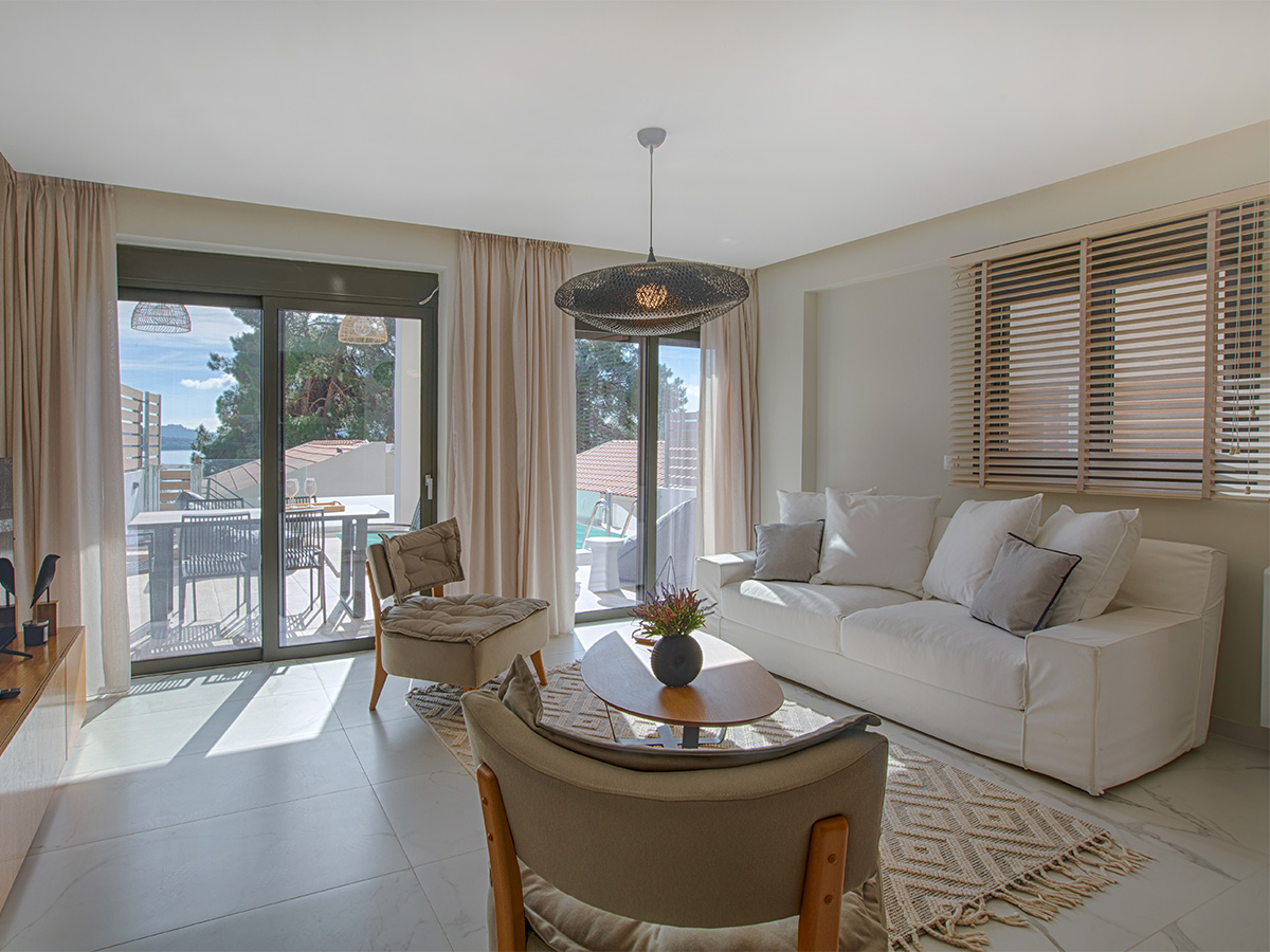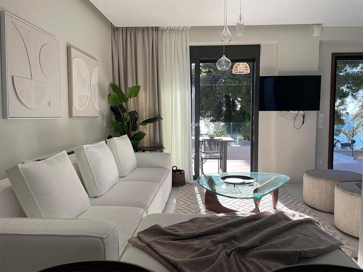 ממוקם על שלושה מפלסים, עם חללי מגורים פתוחים התופסים את קומת הקרקע, אזור טרקלין אוורירי עם ספה גדולה ונוחה המשקיף אל המרפסת והבריכה ובהמשך אל הים, בעוד שמטבח מודרני ומאובזר היטב ופינת אוכל נעימה תופסים את השני. סוֹף.