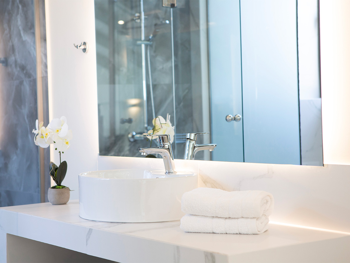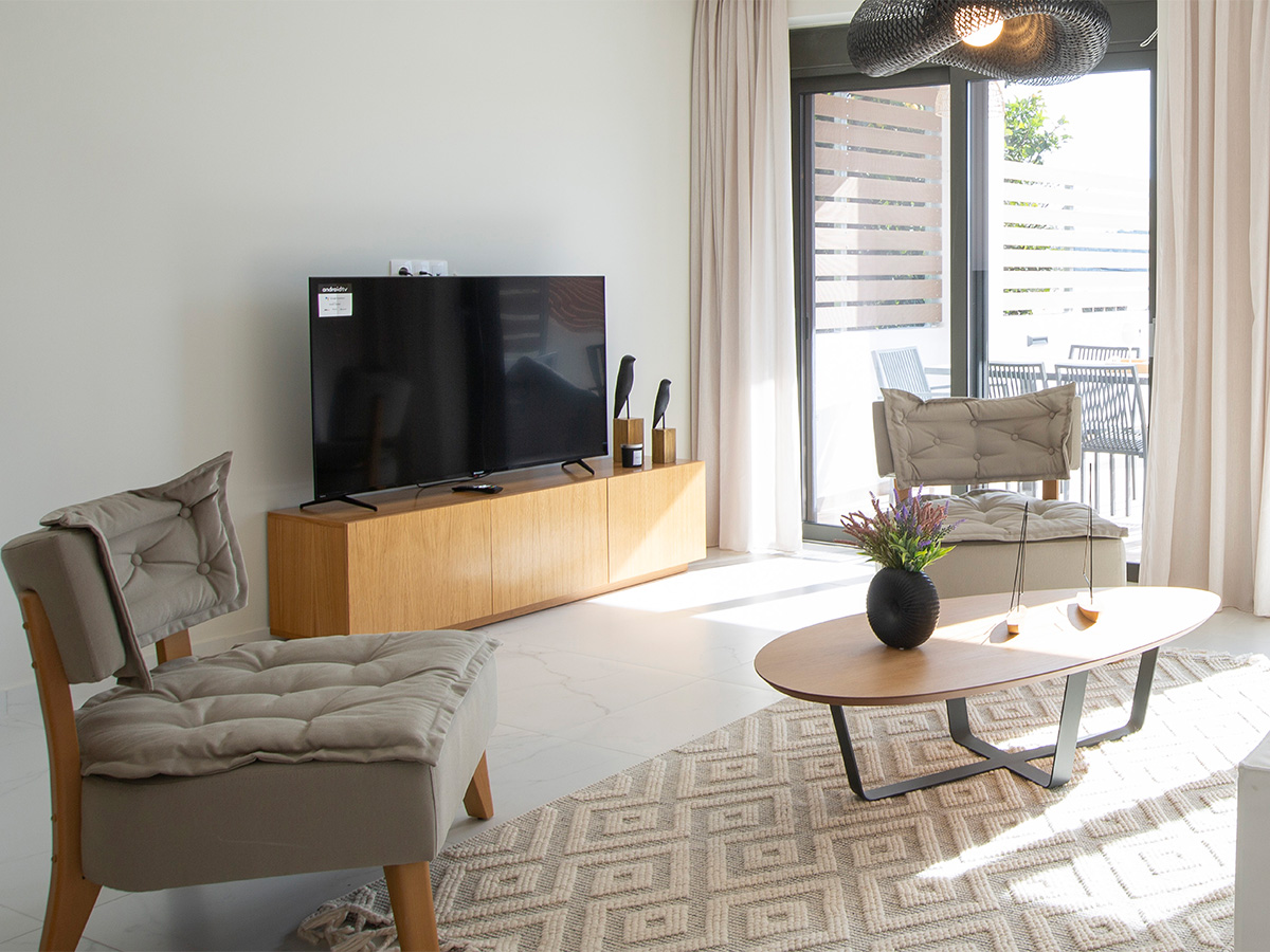 - חדר שינה 2: מיטת קינג סייז, חדר רחצה צמוד עם תא מקלחת, טלוויזיה, נוף למרפסת