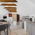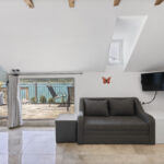 1 סוויטה גדולה בקומה עליונה עם חדר שינה אחד, סלון, 78 מ"ר עם מרפסת של 14 מ"ר הפונה למפרץ נידרי., מצוידת ב: