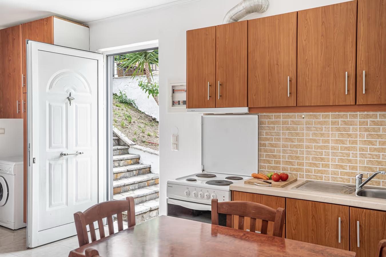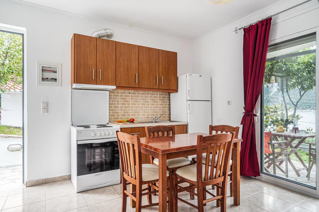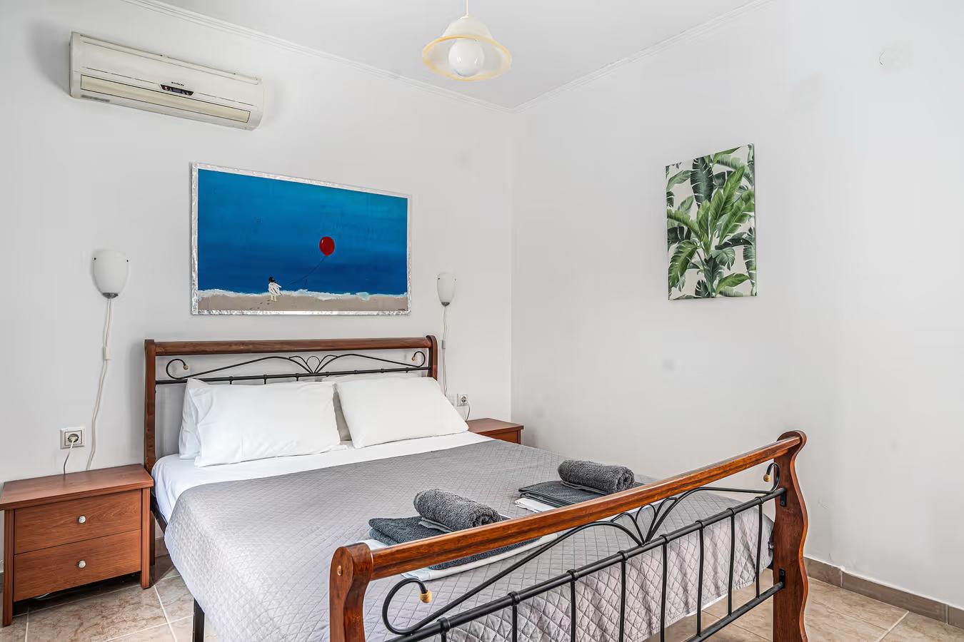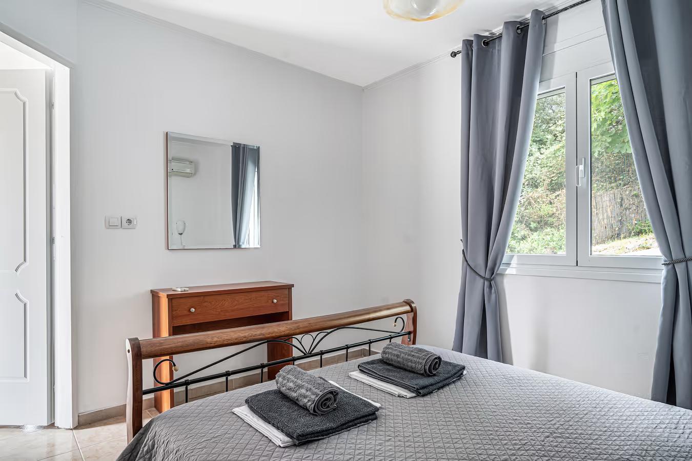 1 סוויטה גדולה בקומה עליונה עם חדר שינה אחד, סלון, 78 מ"ר עם מרפסת של 14 מ"ר הפונה למפרץ נידרי., מצוידת ב: