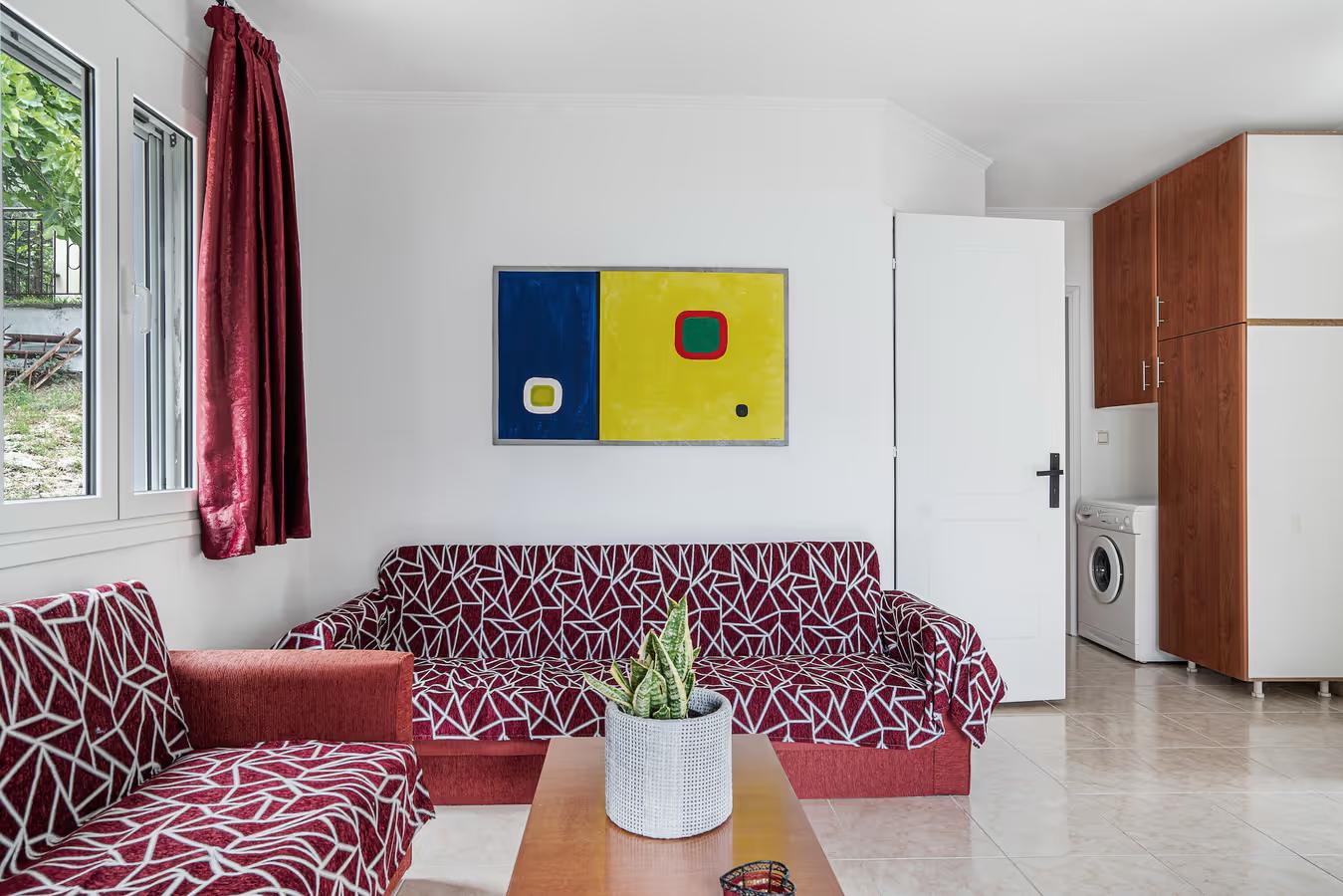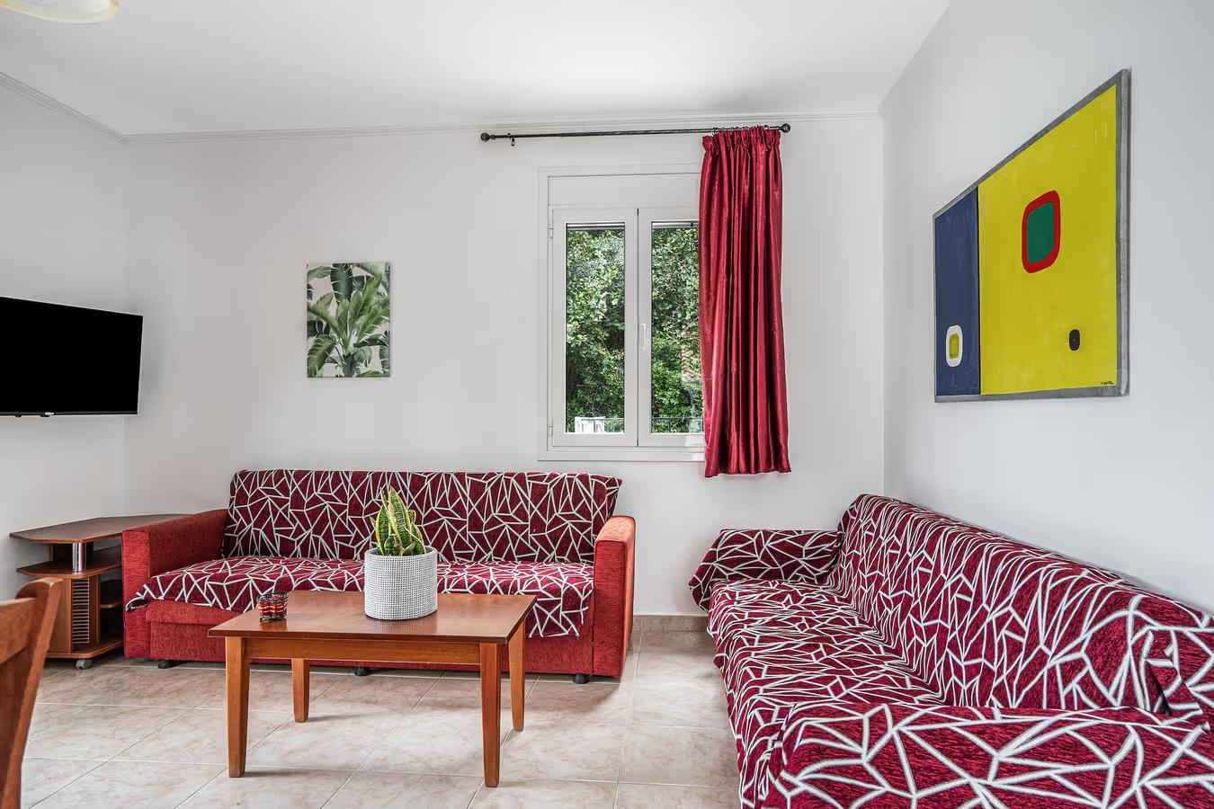 2 סוויטות משפחתיות בקומת קרקע עם חדר שינה אחד, סלון בגודל 50 מ"ר עם מרפסת הפונה למפרץ נידרי., מצויד ב: