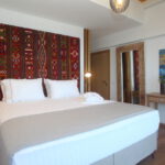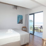 מיקומי המיטות ופריסה של החדר תוכננו כדי לצפות בנופים של הים התיכון והשקיעות היפות שלו מכל מקום בו אתם נמצאים. מרפסות גדולות פונות ל קו החוף המואר מהכפר אגיוס ניקיטאס .