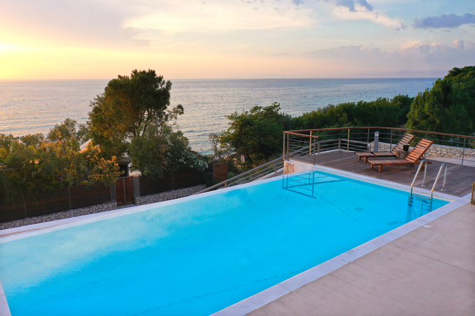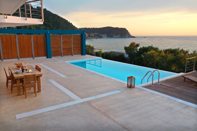 שתי וילות חדשות יוקרתיות עם נוף פנורמי לים, ממוקמות 50 מ' מהחוף עם גישה דרך כמה מדרגות ושביל פרטי.