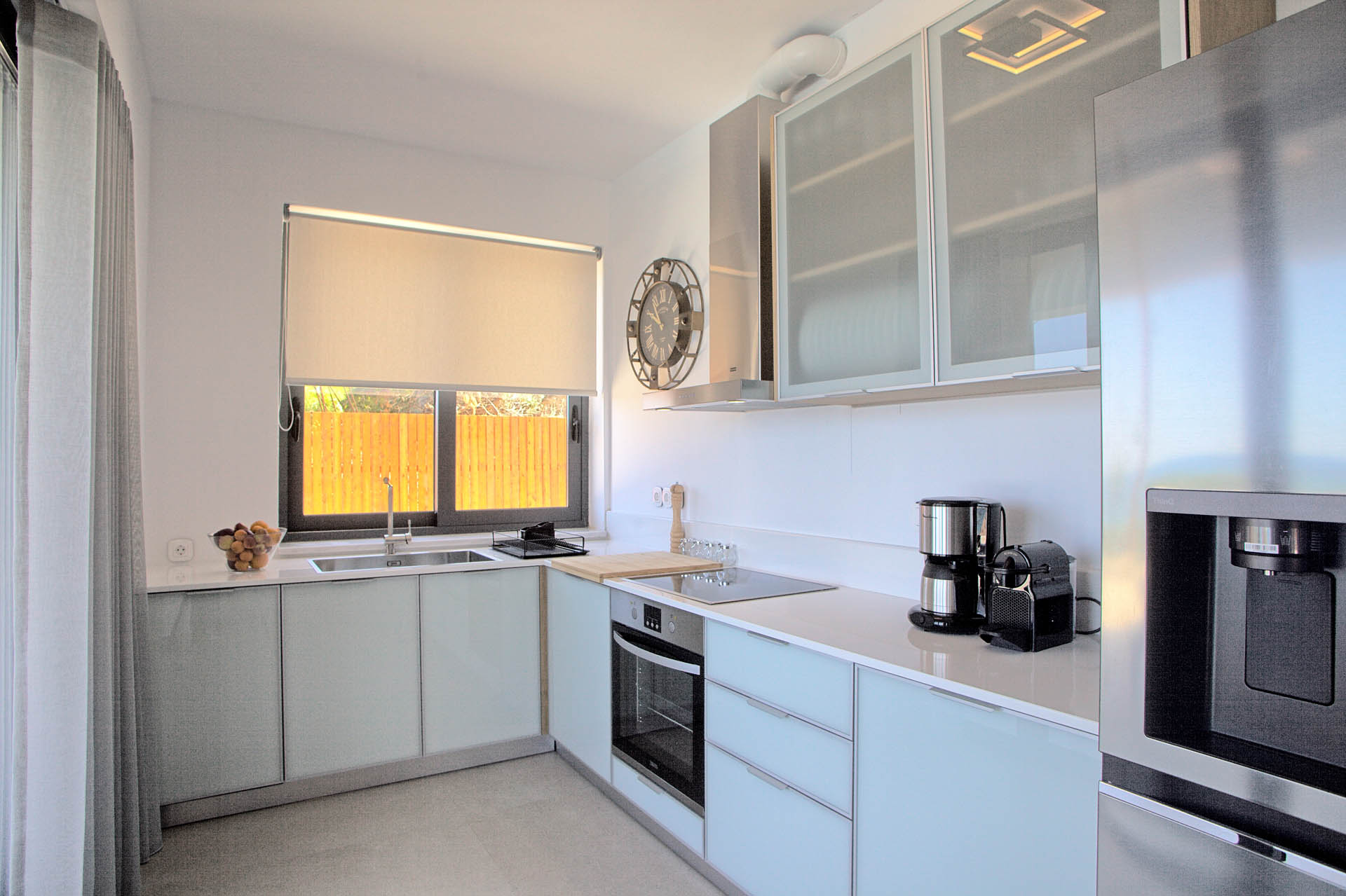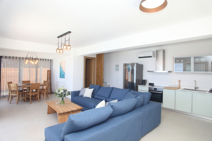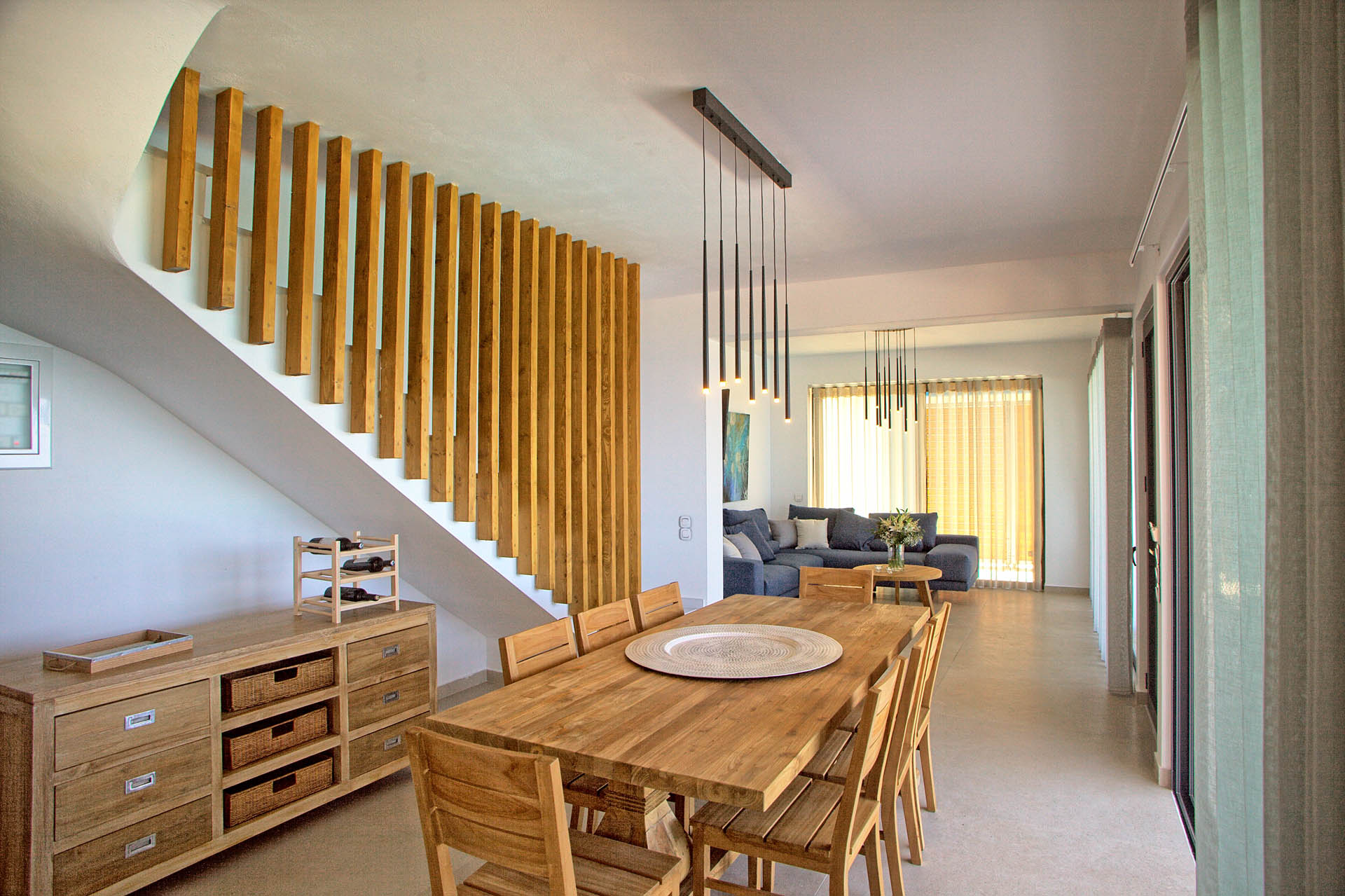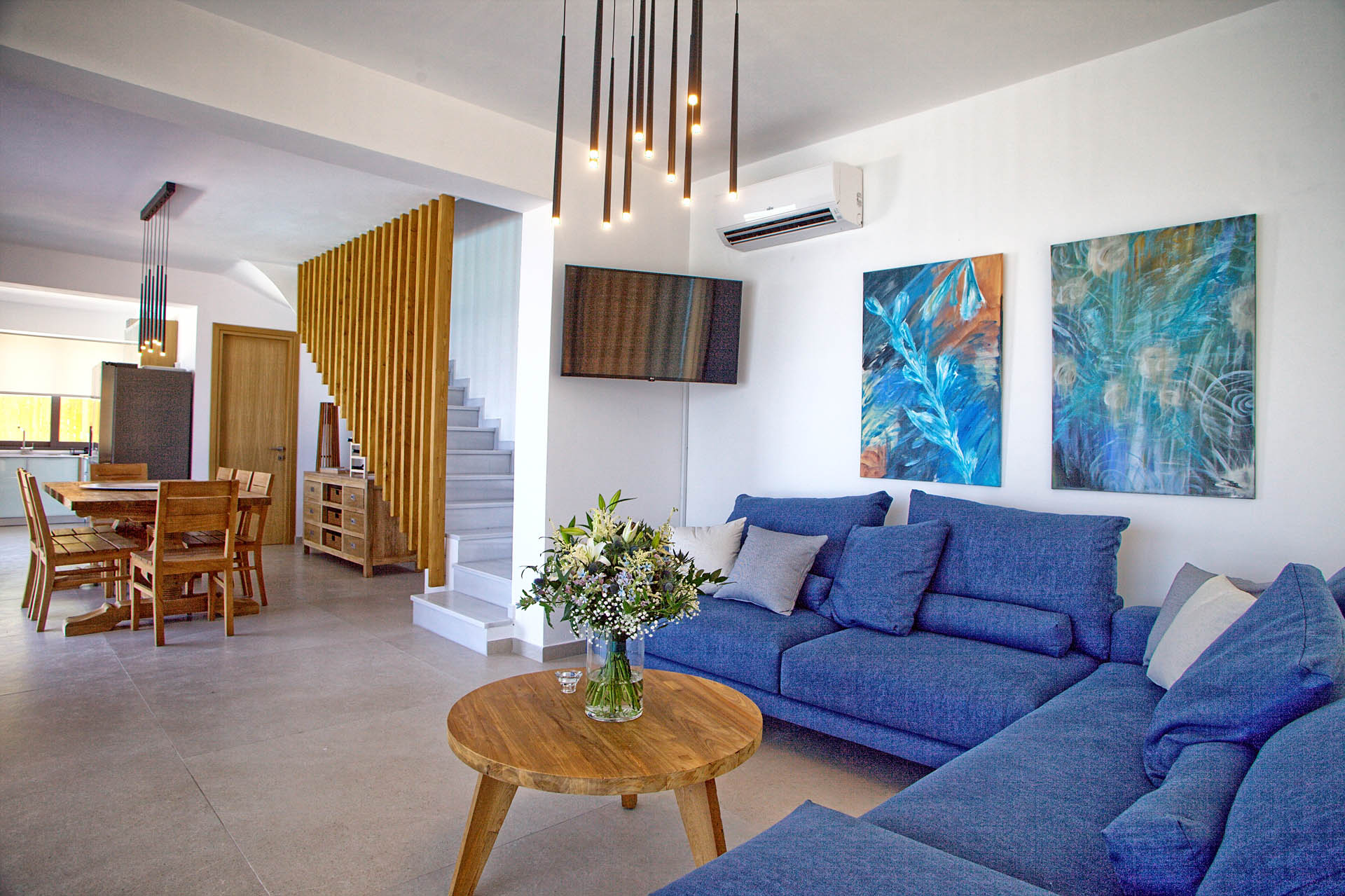 :קומת הקרקע כוללת :את הסלון והמטבח המרווחים המעוצבים בריהוט איכותי ודלתות הזזה מזכוכית מסביב המאפשרות ליהנות מהאינסופי של הים ומהיופי של השמים היווניים.