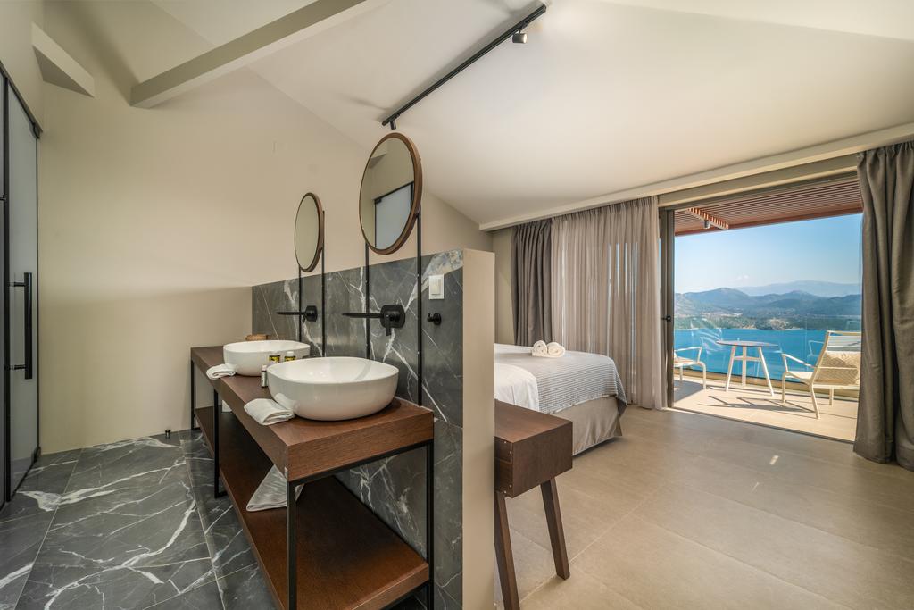 כל החדרים פונים לים וכוללים טרסות פרטיות עם פינות ישיבה.