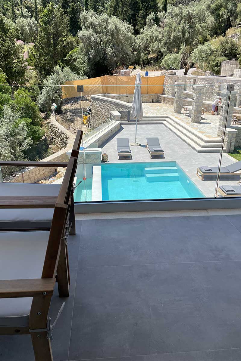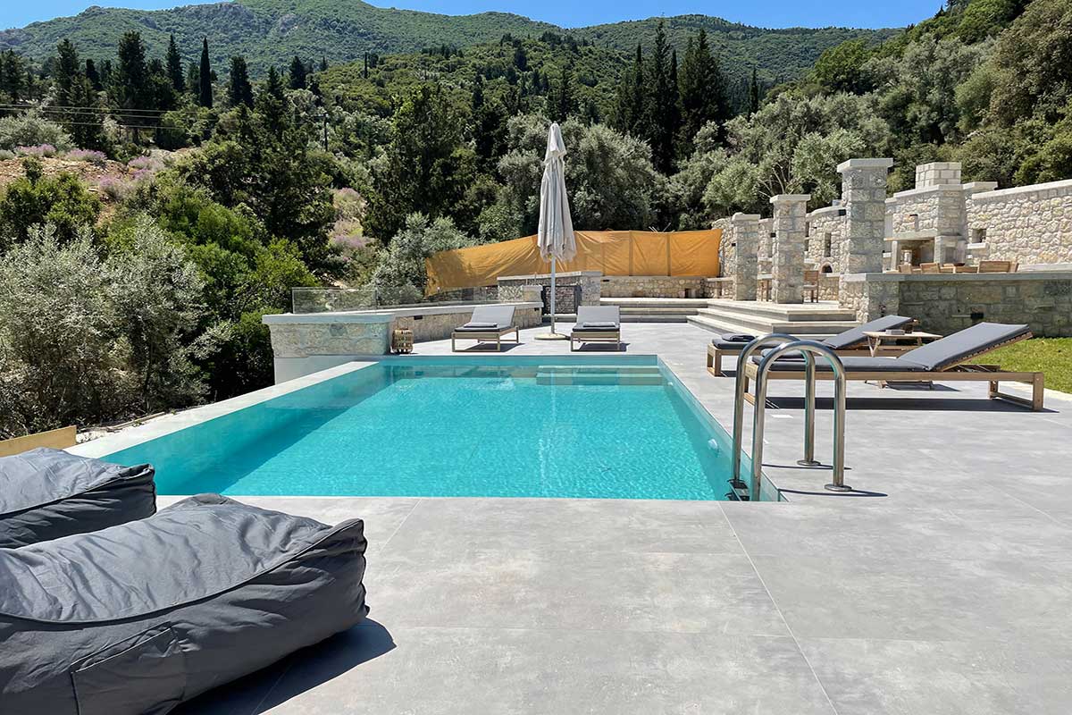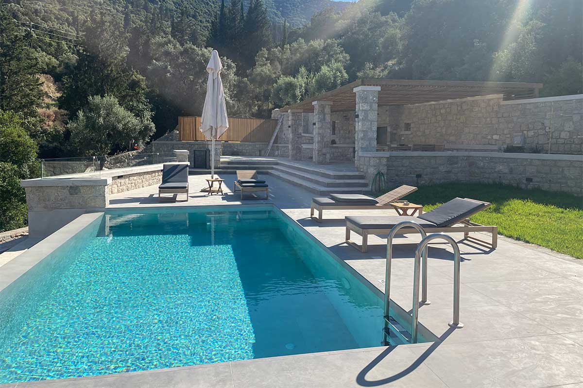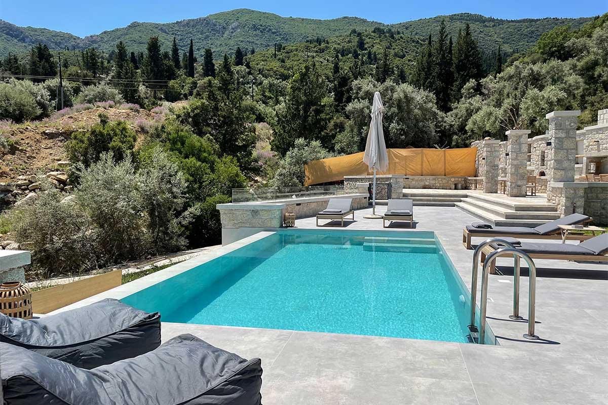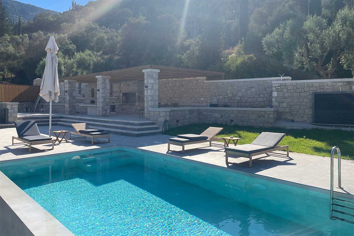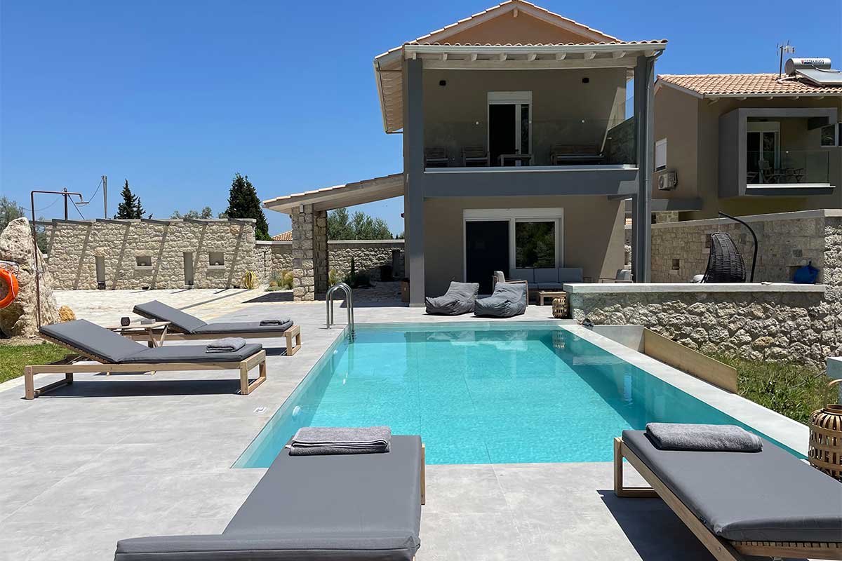 וילה דו קומתית יפיפיה בסגנון ספרדי, שוכנת בלב מטעי זיתים בכפר Athani הממוקם באזור המערבי של האי,  הוילה עם בריכה המשקיפה לחוף Egremni ובעלת נוף פנורמי מרהיב.