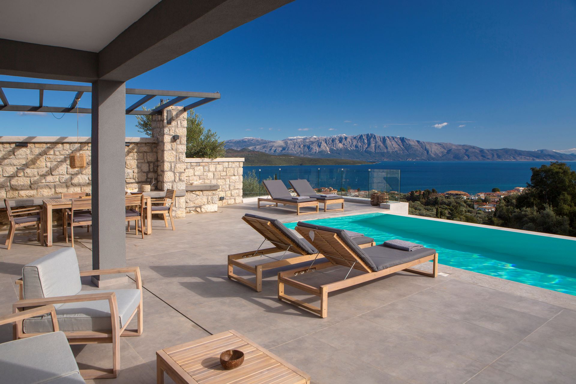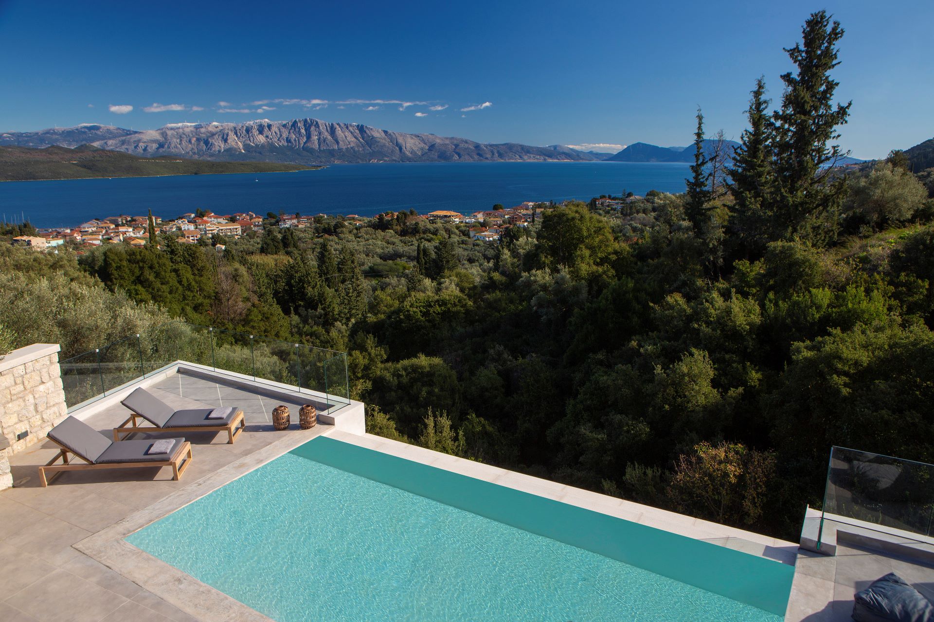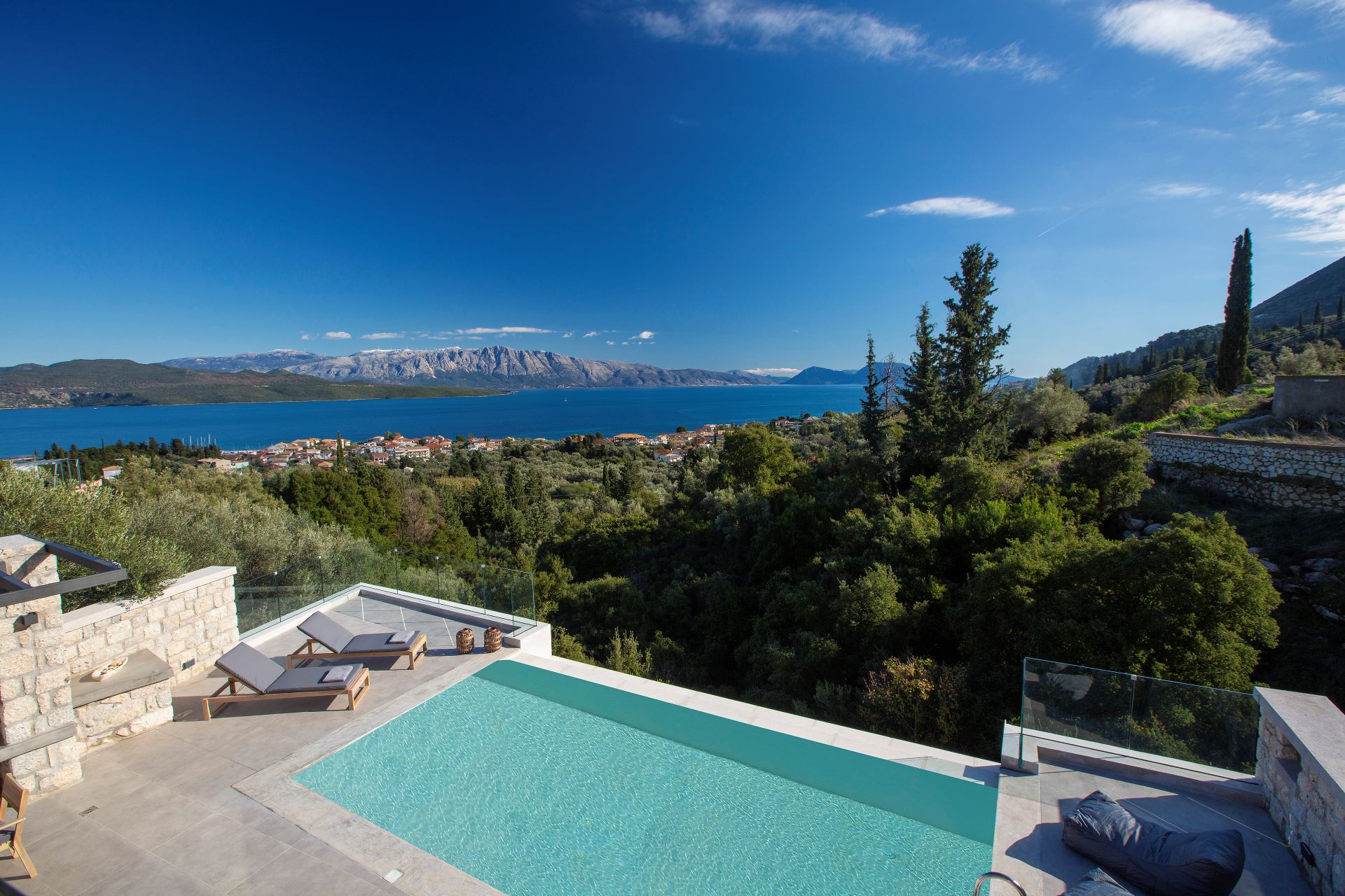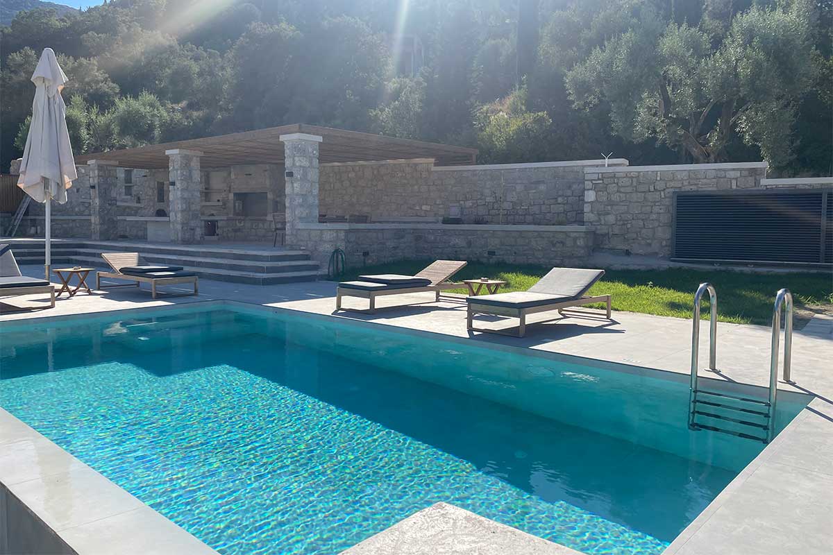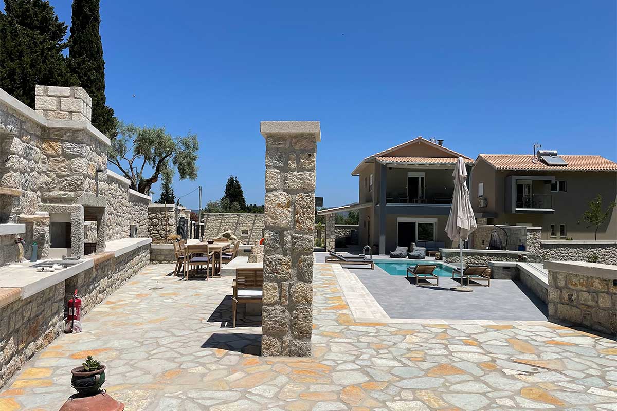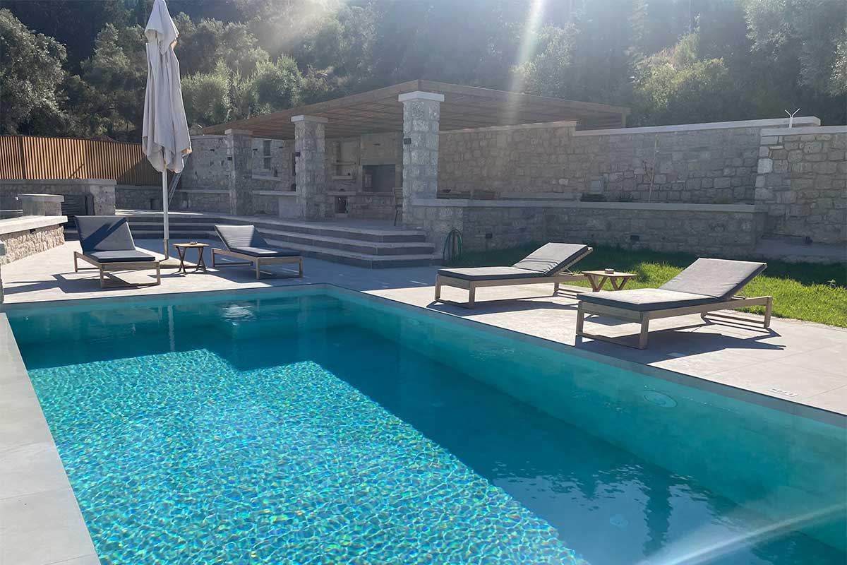 וילה דו קומתית יפיפיה בסגנון ספרדי, שוכנת בלב מטעי זיתים בכפר Athani הממוקם באזור המערבי של האי,  הוילה עם בריכה המשקיפה לחוף Egremni ובעלת נוף פנורמי מרהיב.