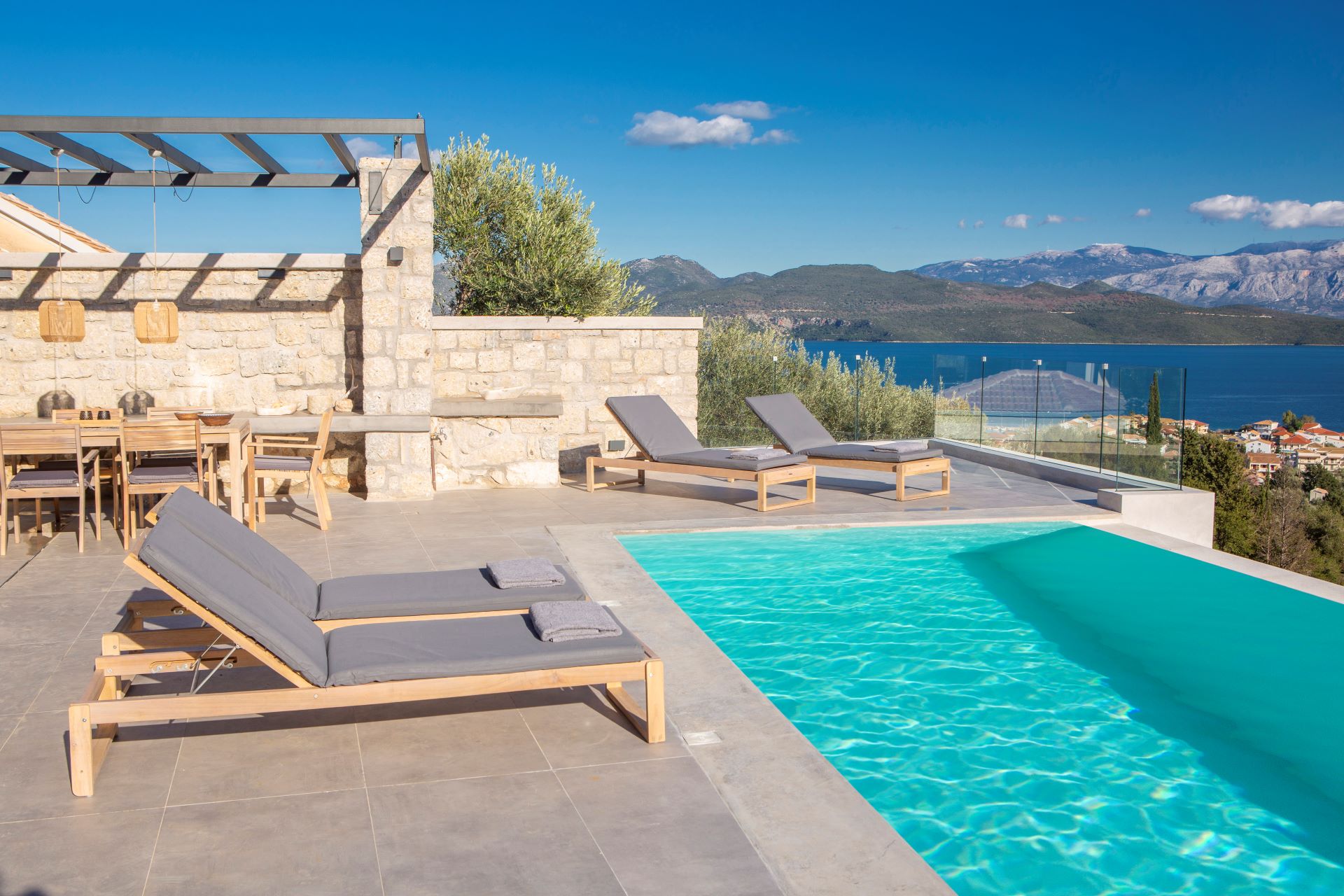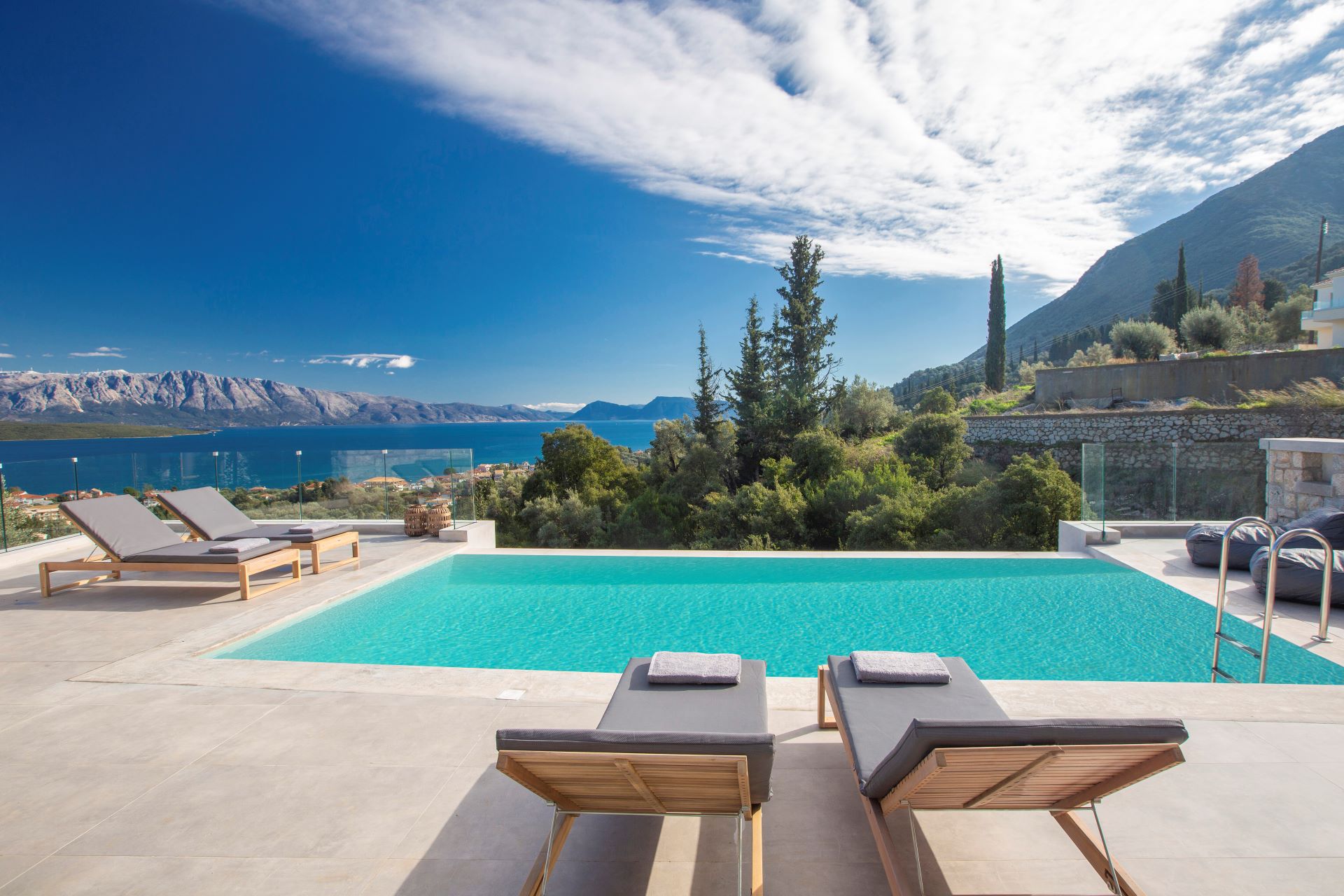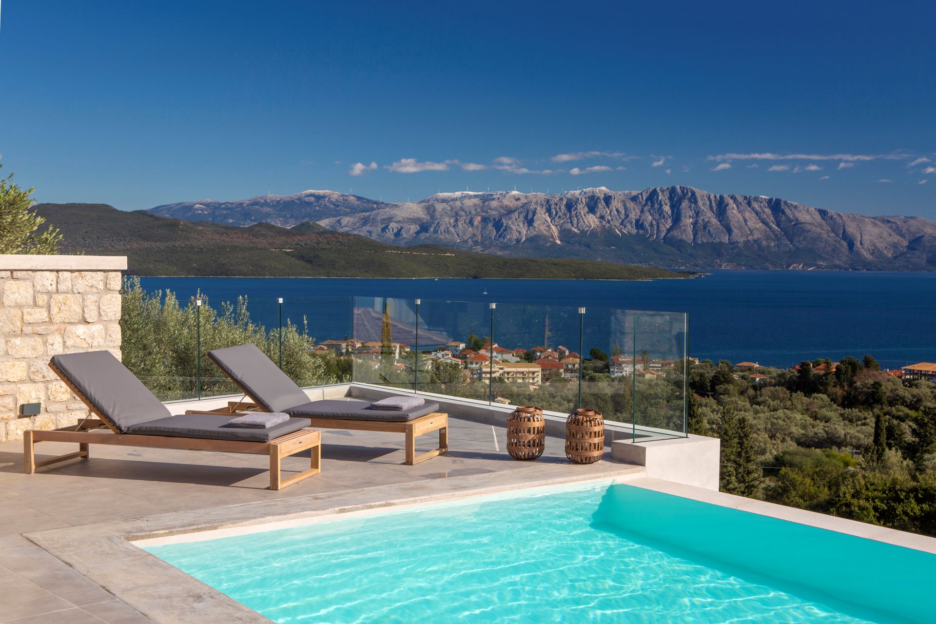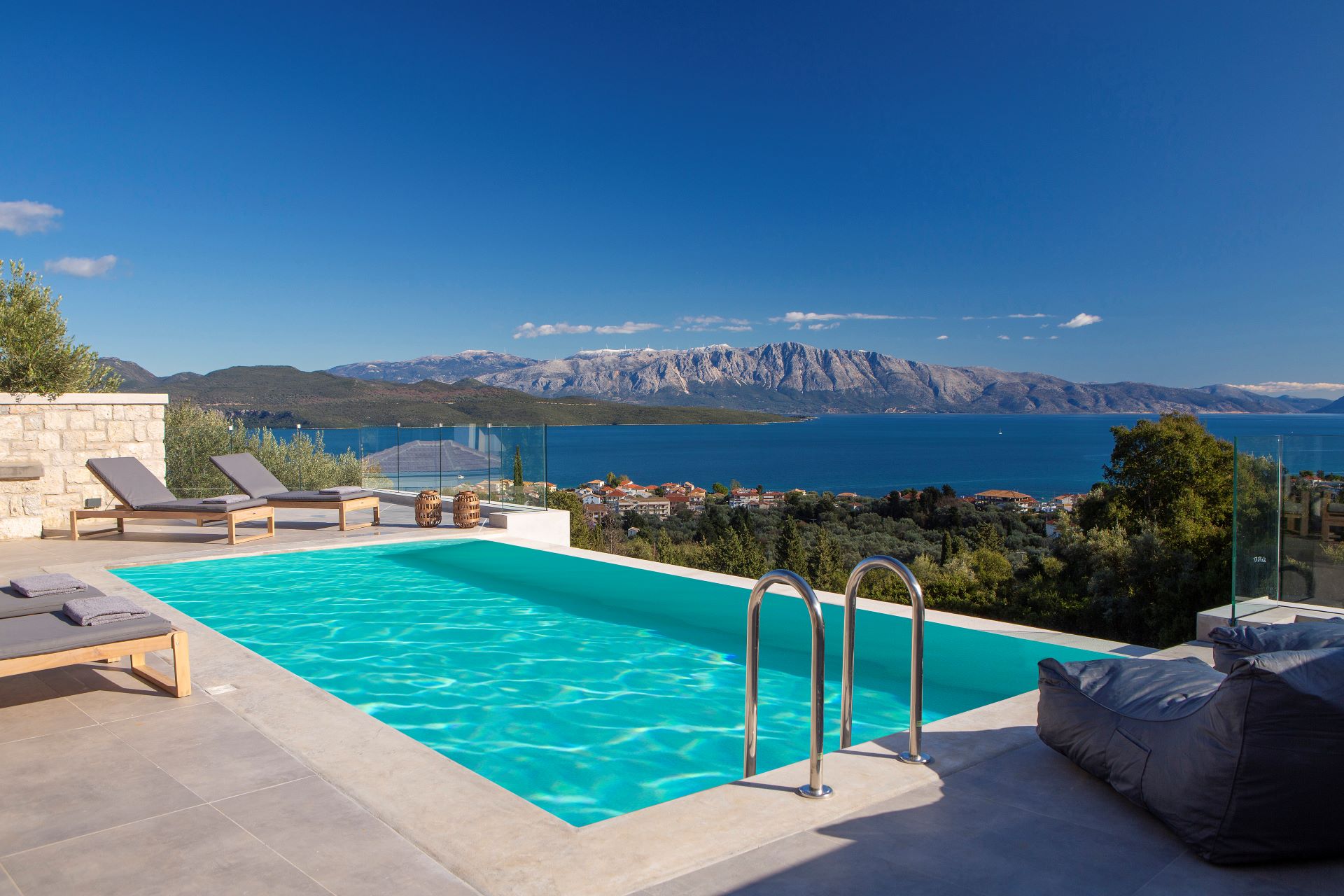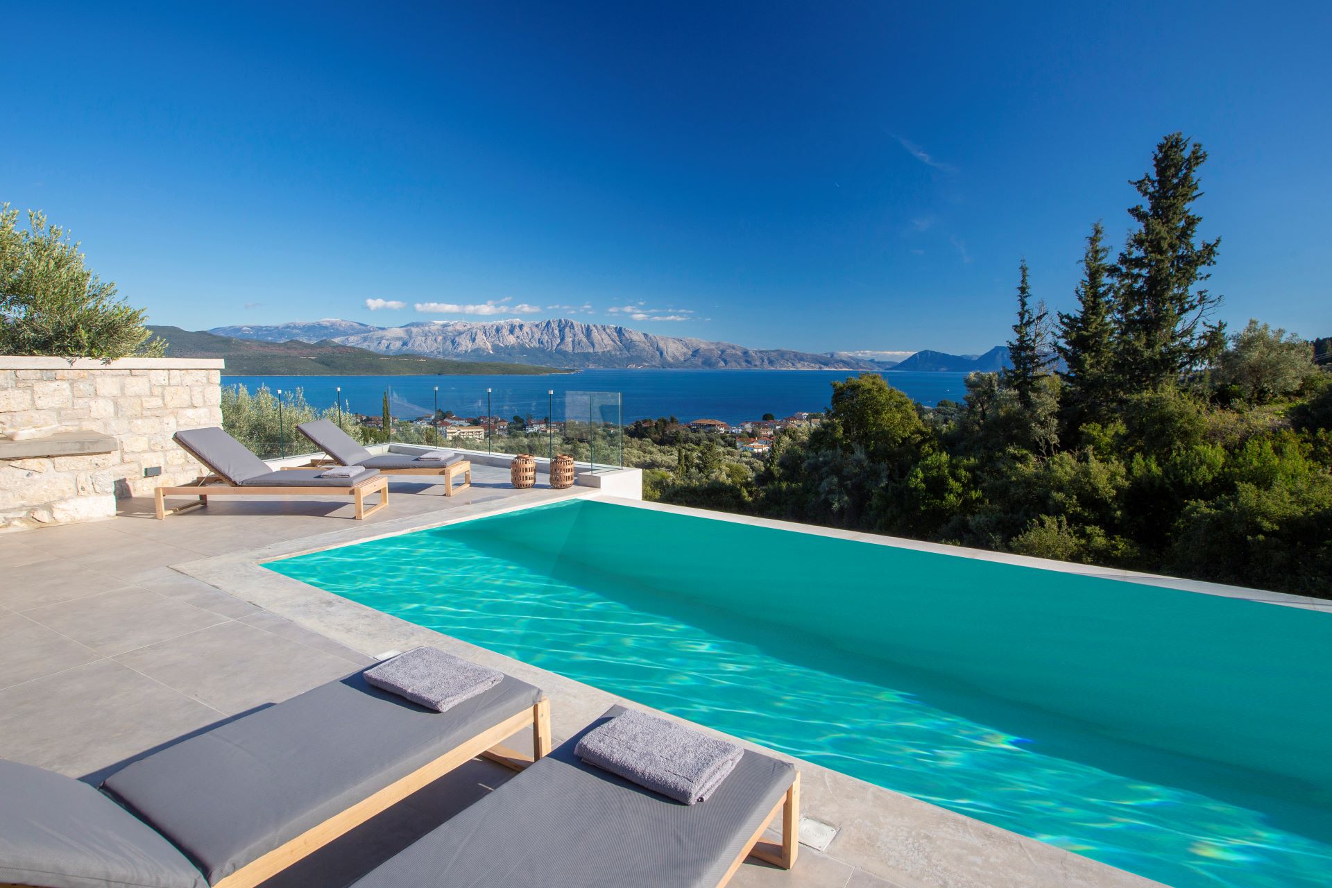 וילה דו קומתית יפיפיה בסגנון ספרדי, שוכנת בלב מטעי זיתים בכפר Athani הממוקם באזור המערבי של האי,  הוילה עם בריכה המשקיפה לחוף Egremni ובעלת נוף פנורמי מרהיב.