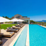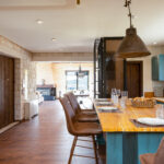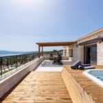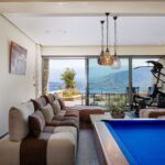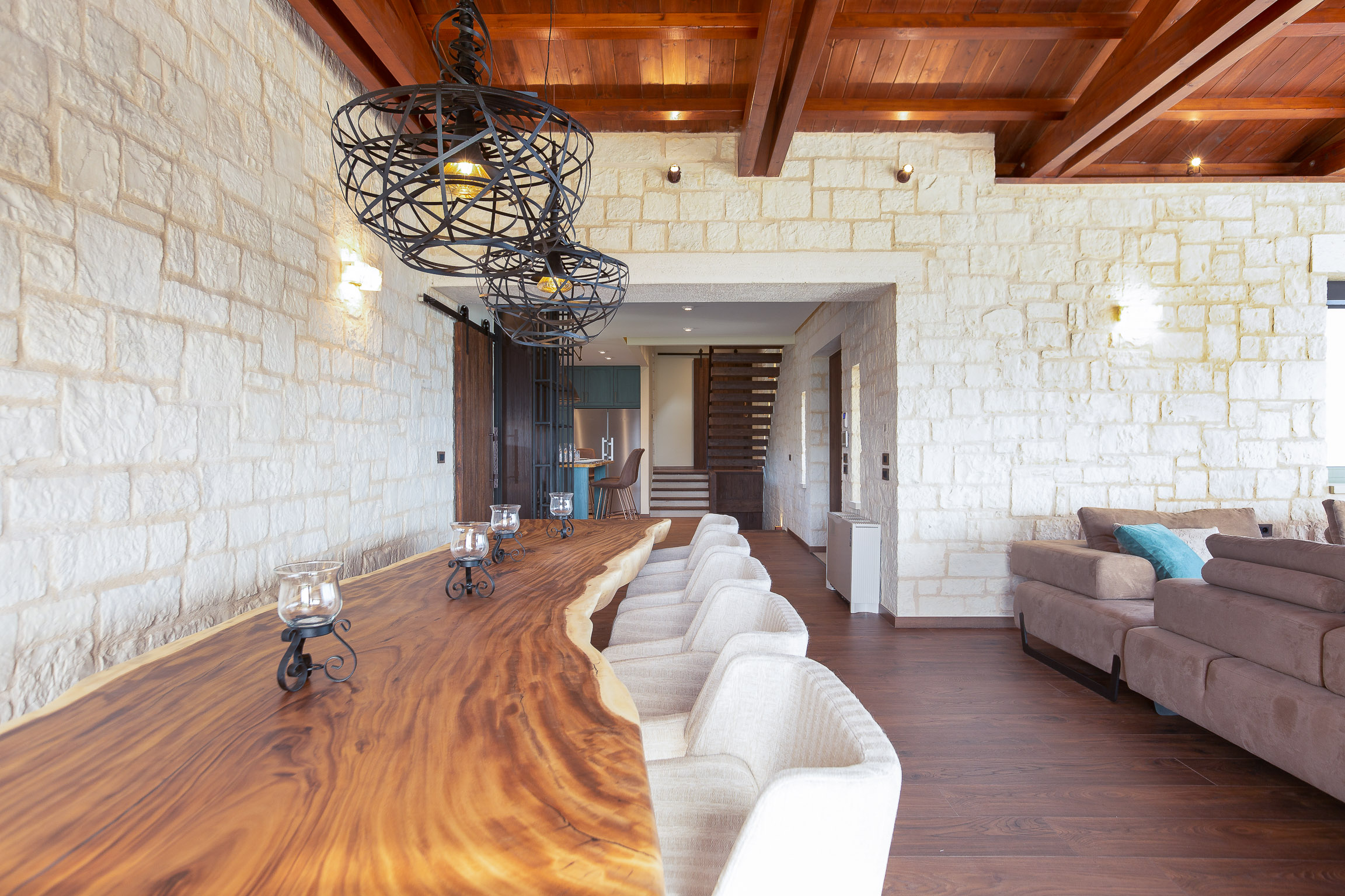 וילה יוקרתית חדשה בעיצוב עכשווי, עשוי מאבן, עם ריהוט מפואר, המציע את כל השירותים העכשוויים. רצפות העץ, התקרה והצבעים מוסיפים מגע ביתי ומרגיע,