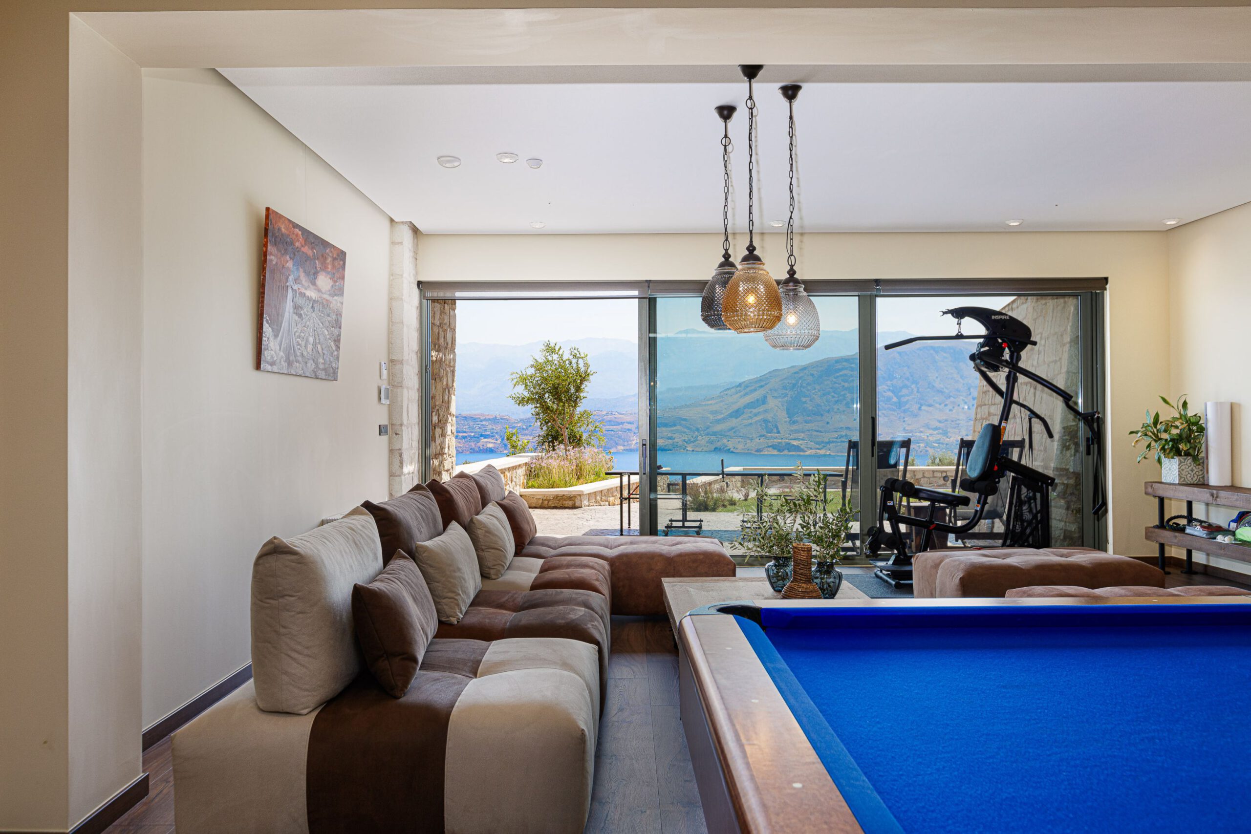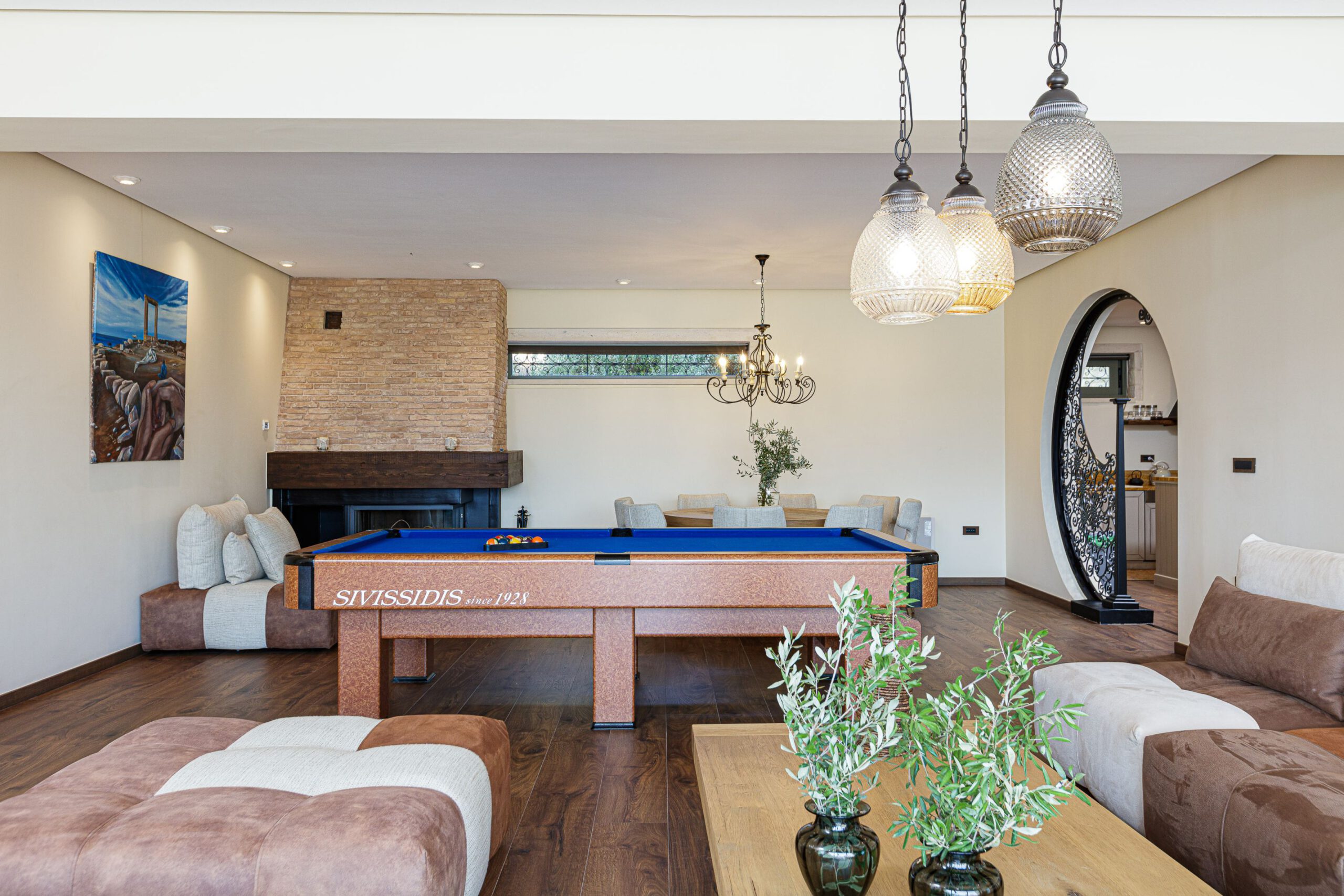 כוללת חדר משחקים עם טלוויזיית HD בגודל 65 אינץ' עם נטפליקס, משחקי לוח, שולחן ביליארד ומכשיר כושר רב תכליתי. החלל כולל גם ספה פינתית גדולה ומציע נוף מדהים לים וגישה חיצונית ישירה למרפסת עם שולחן פינג פונג. שולחן אוכל עגול ל-8 אורחים, ואח .