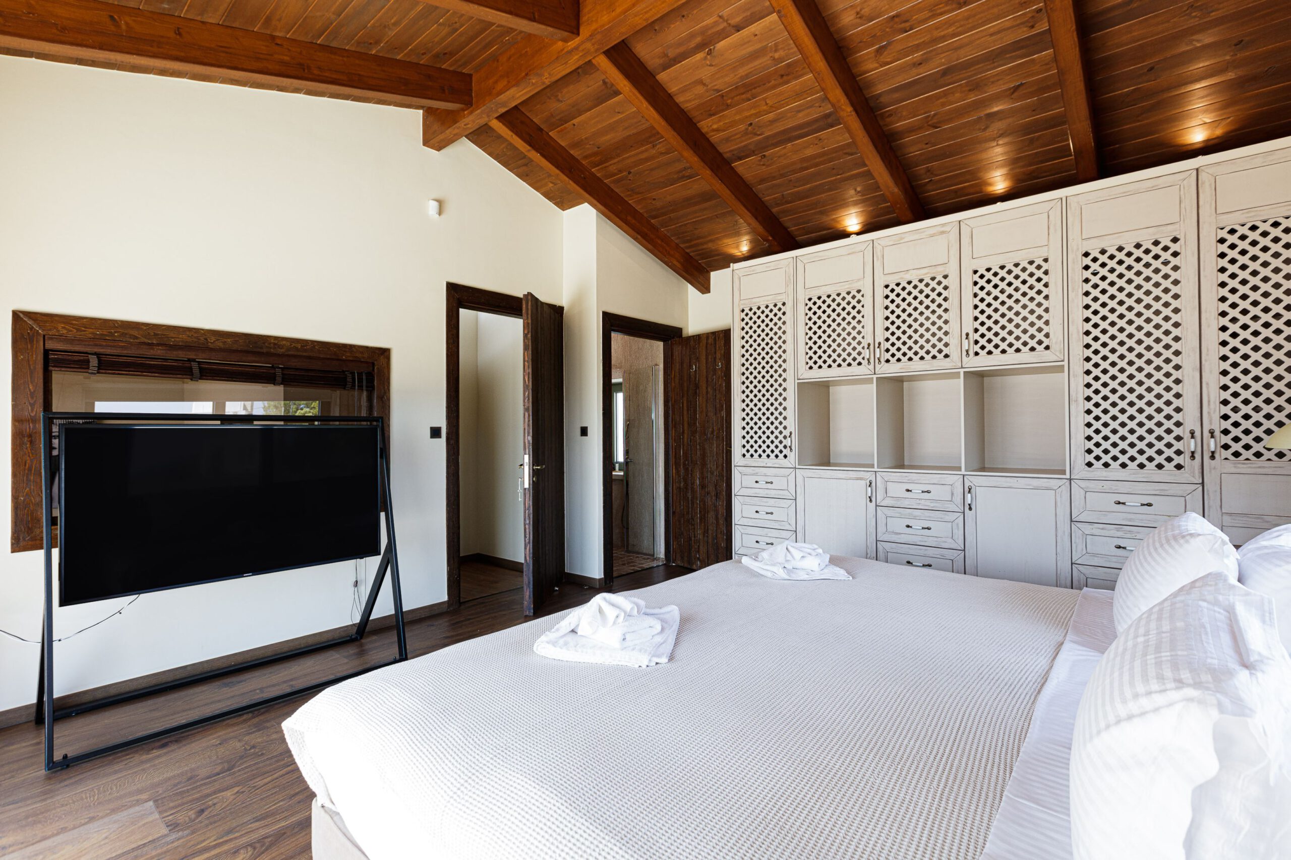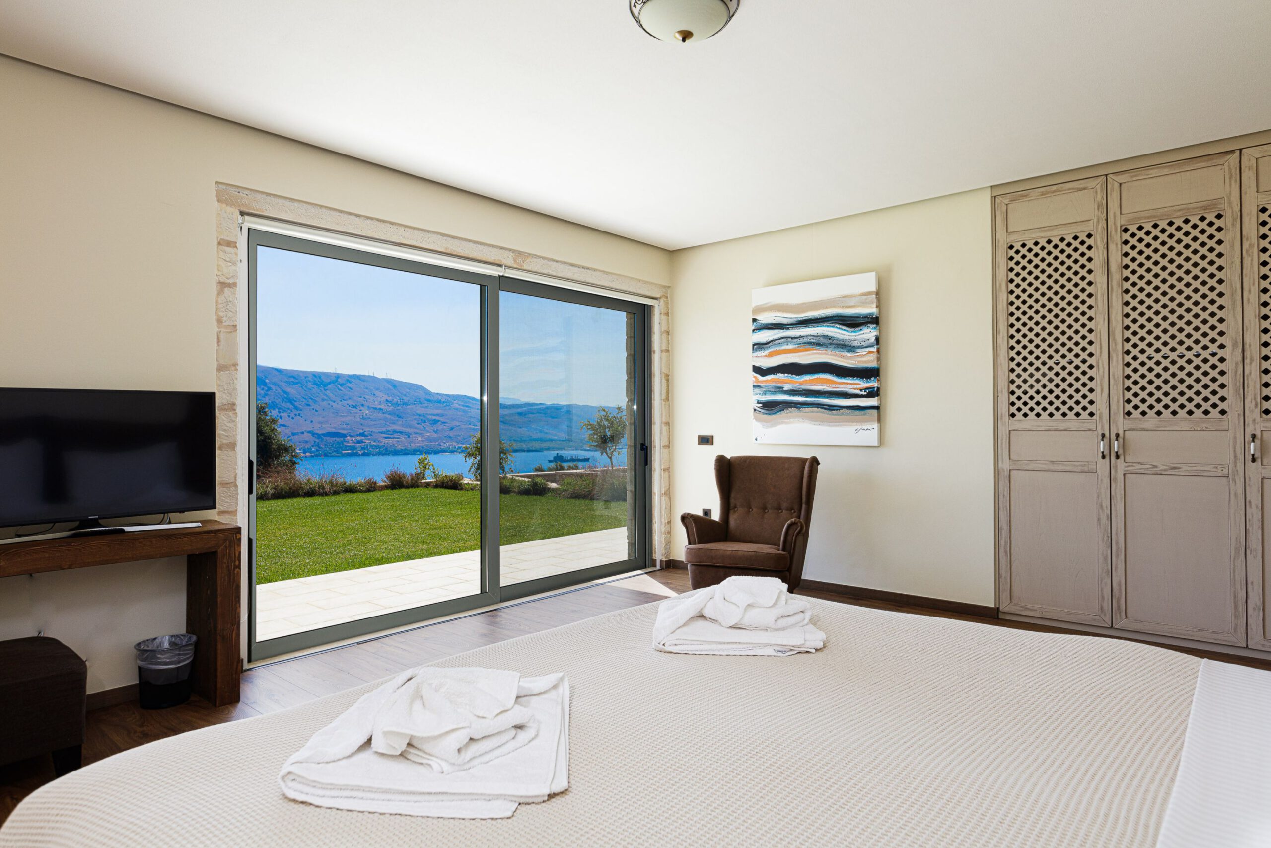 – חדר שינה ראשי מיטת קינג סייז (1,80 x 2,00), טלוויזיית HD בגודל 40 אינץ', חלון ומרפסת עם נוף לים, חדר רחצה צמוד עם אמבטיה עם עיסוי אווירי והידרומסאז' וטלוויזיה בגודל 24 אינץ'.