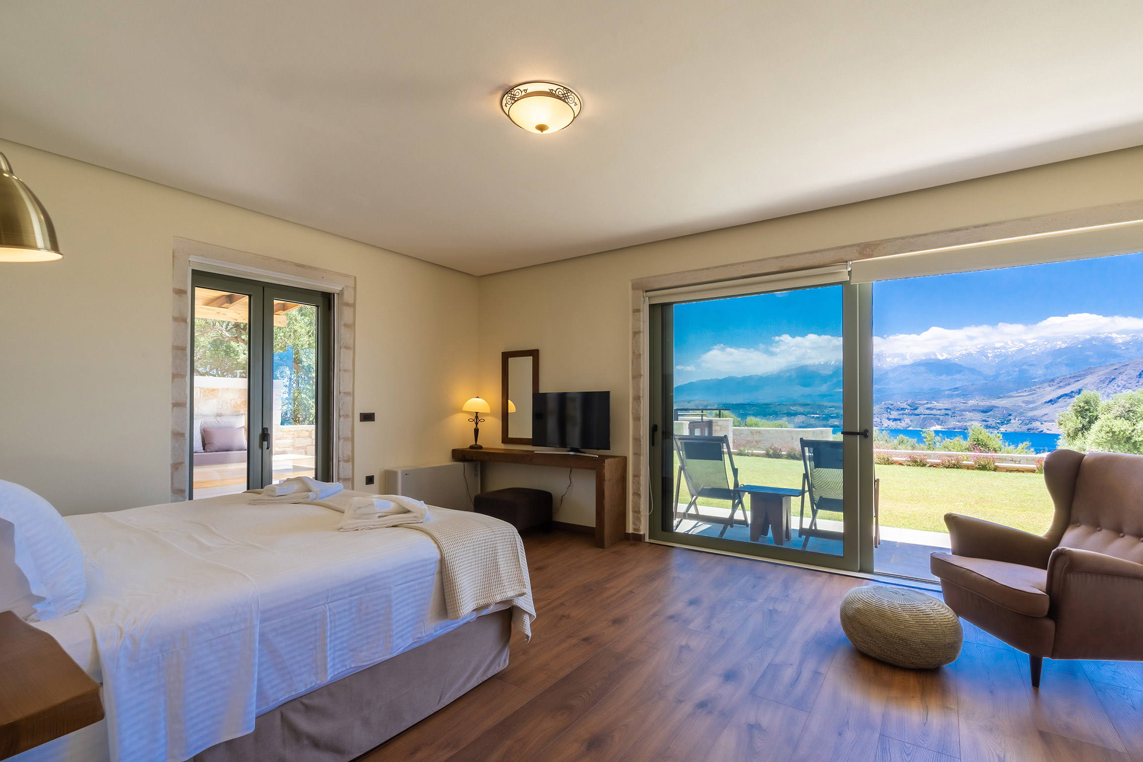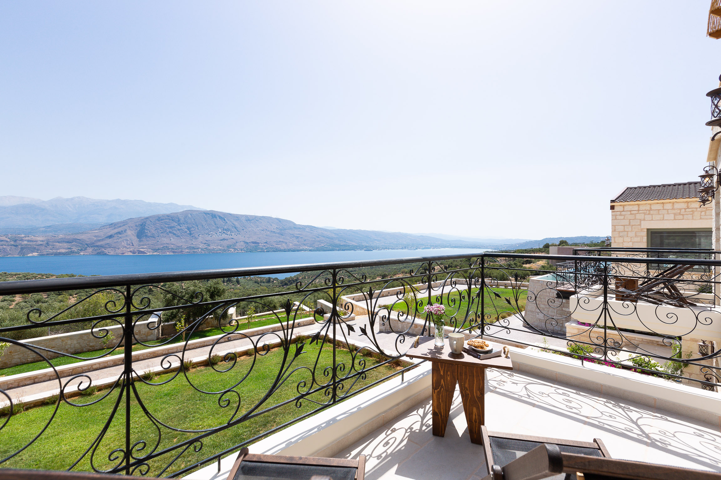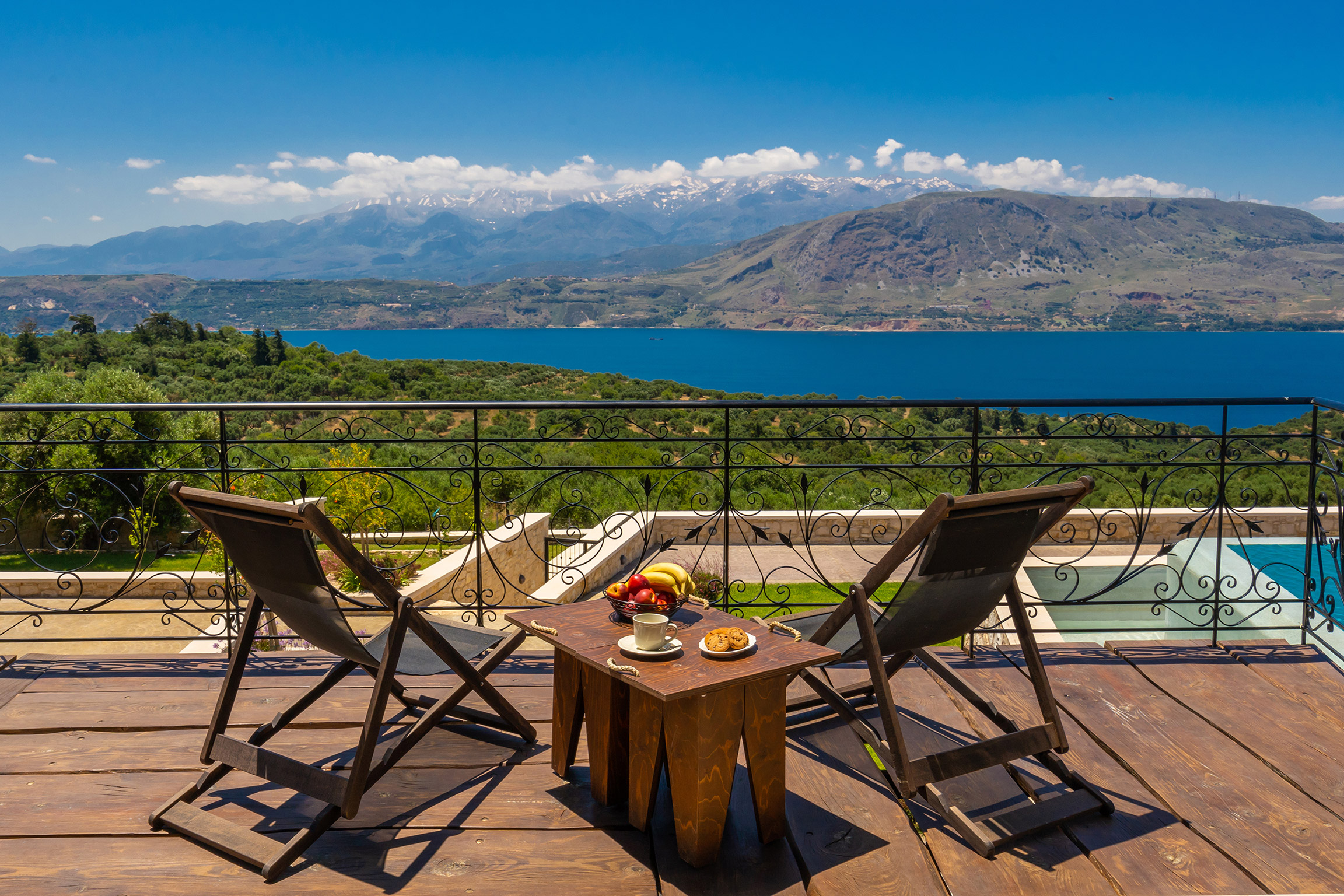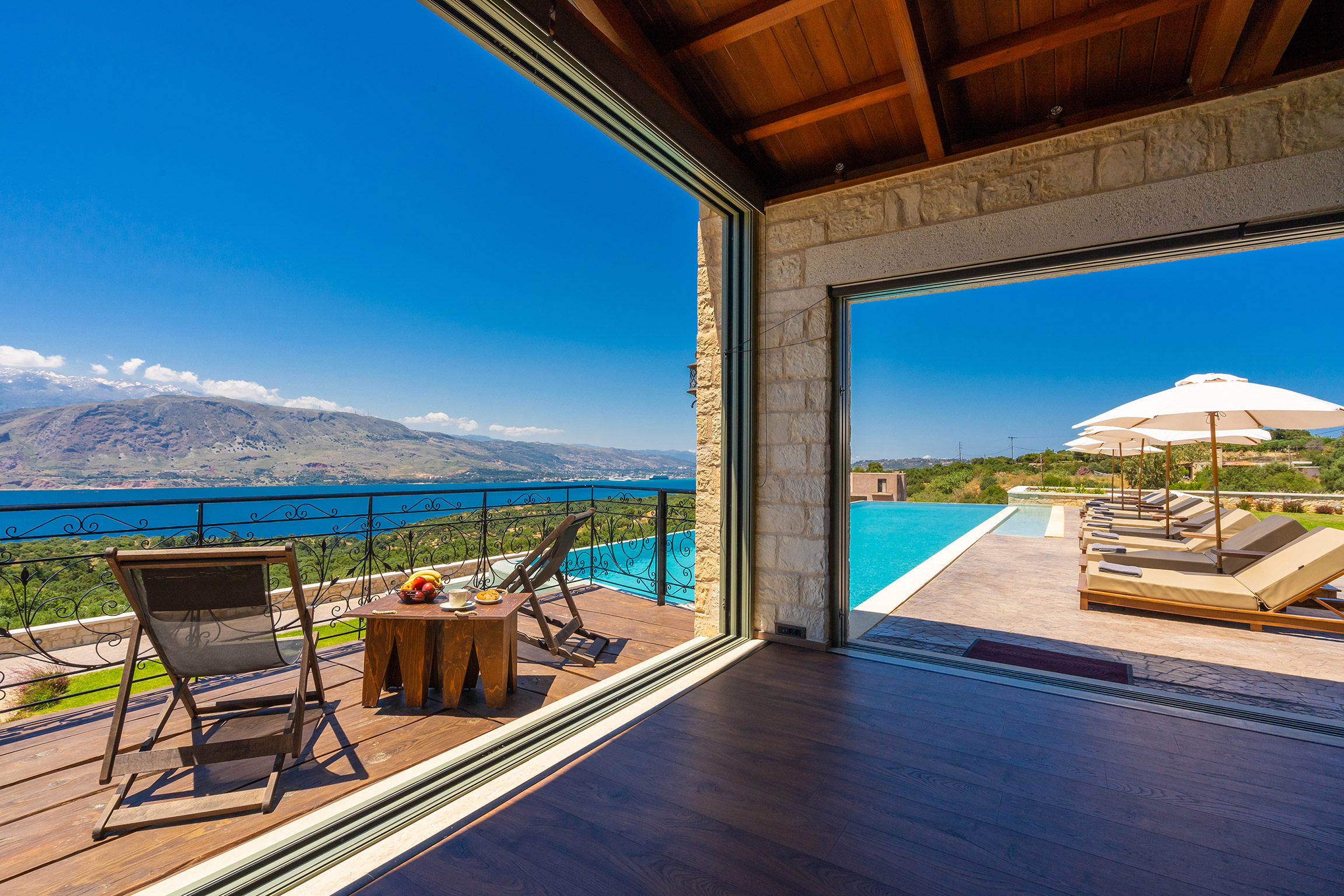 הווילה שוכנת על ראש גבעה, משקיפה על נוף פנורמי של הים, ההרים הלבנים, מפרץ סודה Souda Bay והסביבה. .