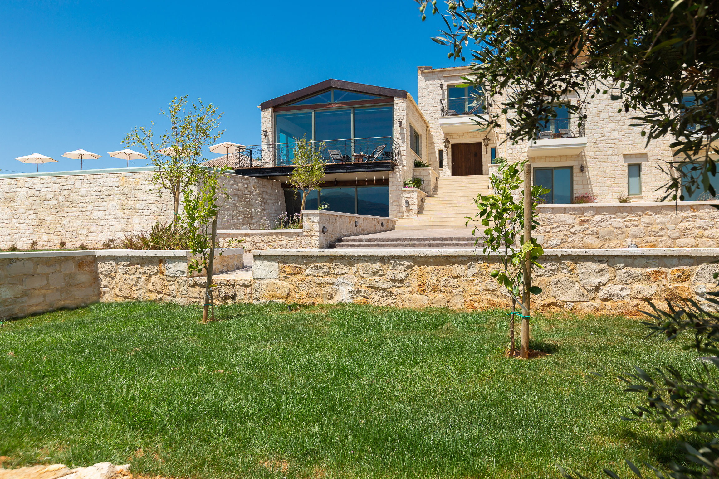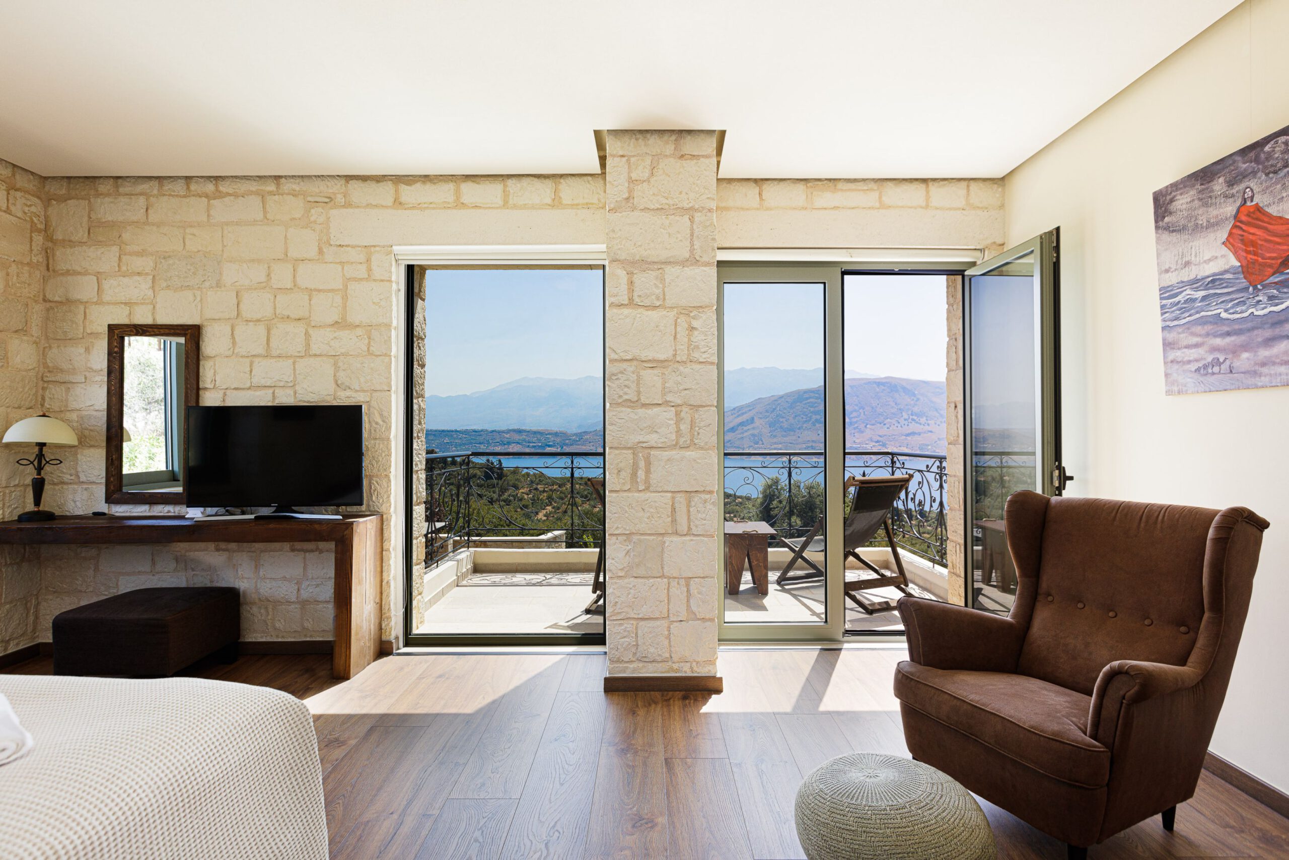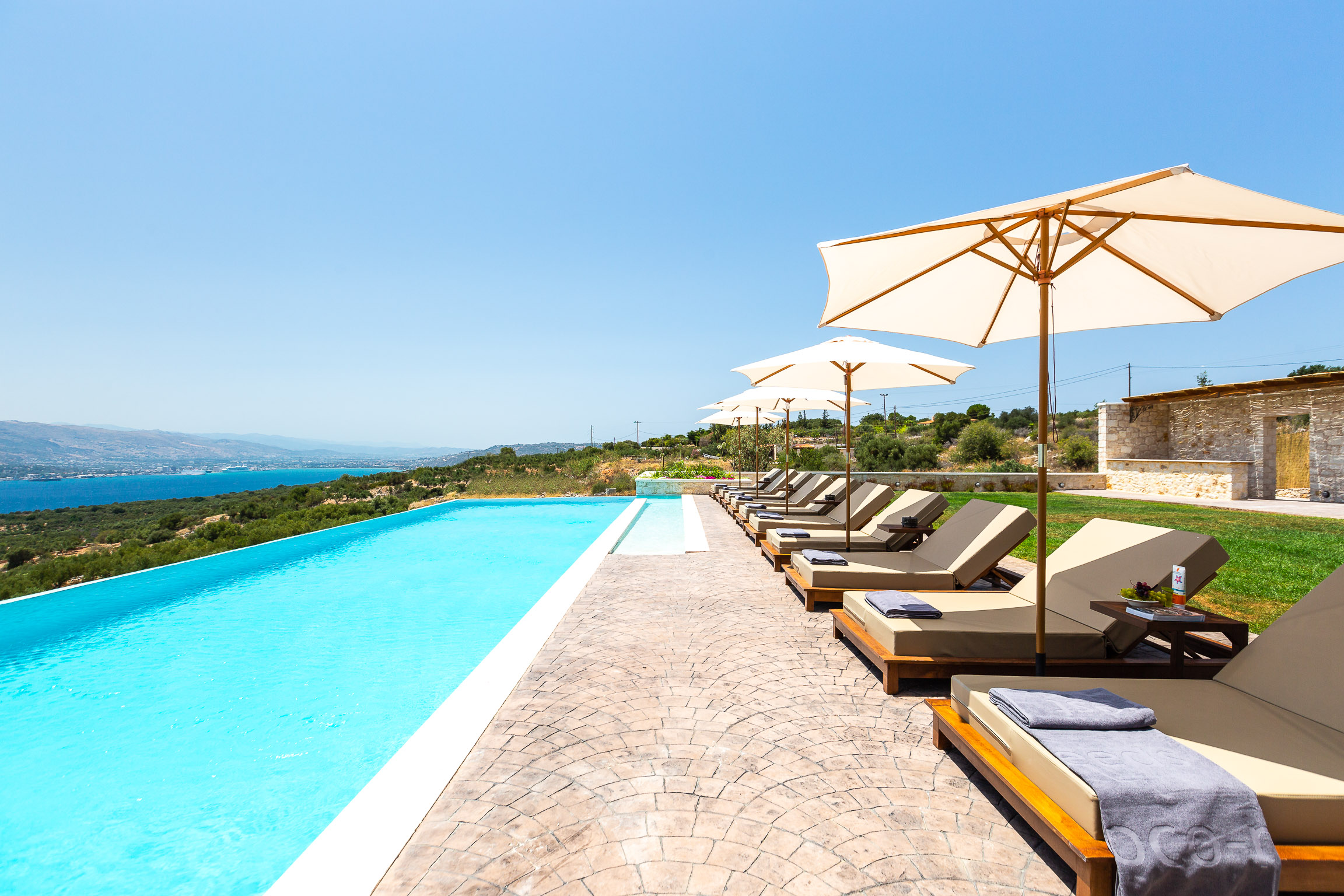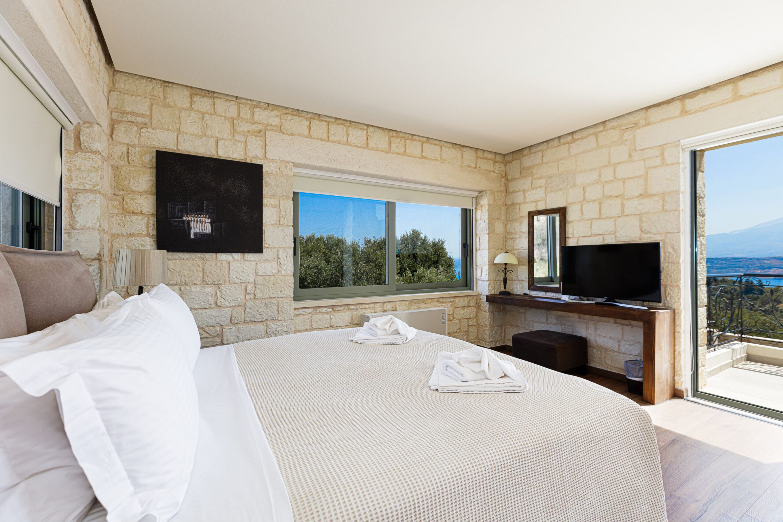 הווילה שוכנת על ראש גבעה, משקיפה על נוף פנורמי של הים, ההרים הלבנים, מפרץ סודה Souda Bay והסביבה. .
